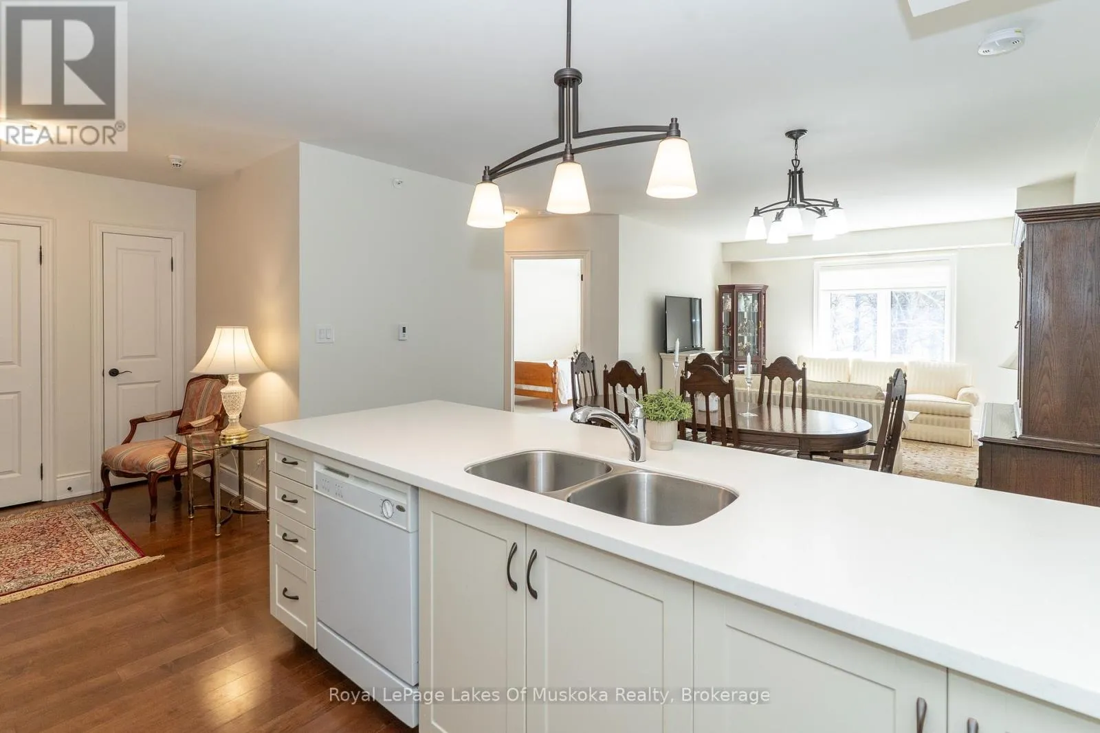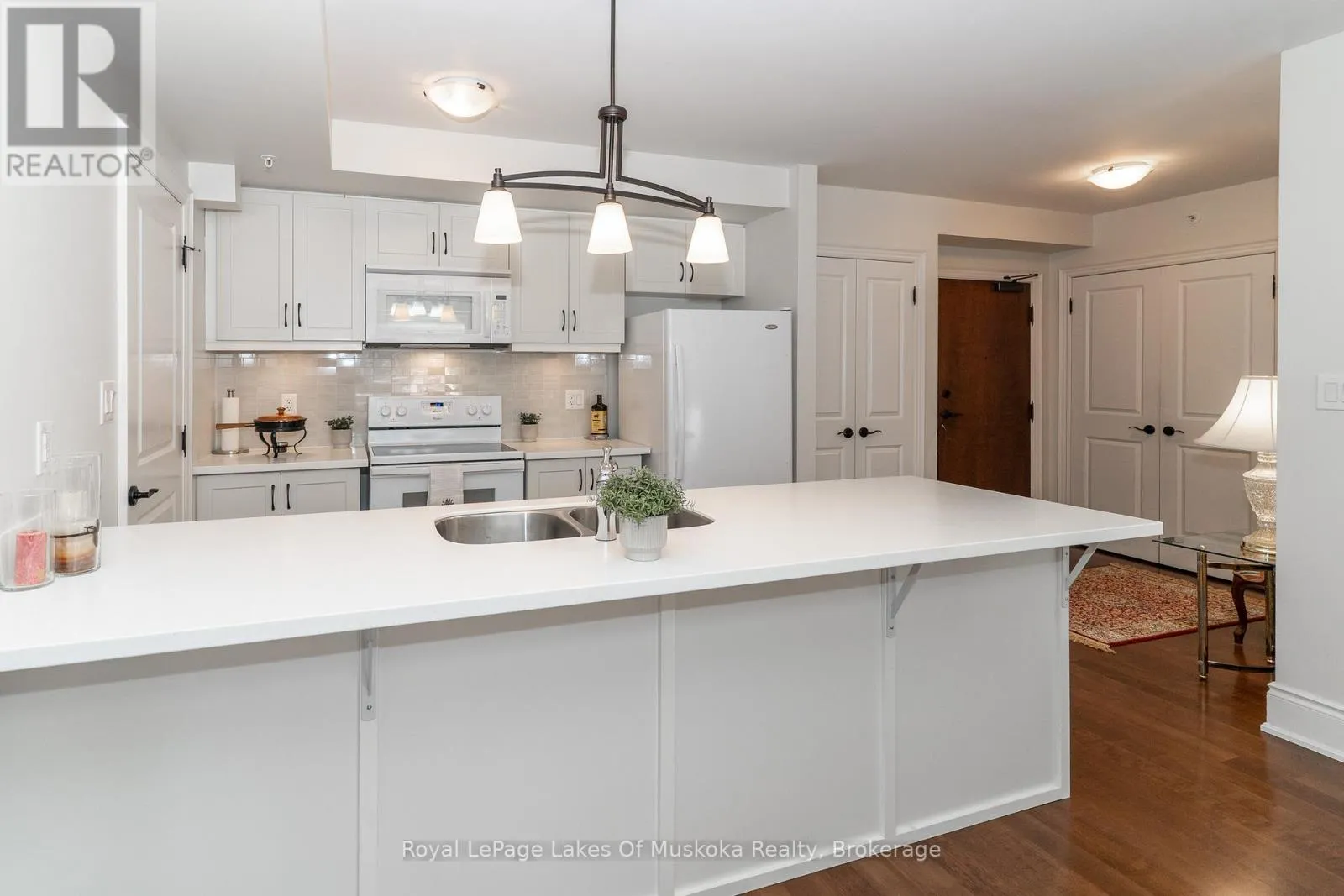 Cross Streets: Wellington St. N. ** Directions: Manitoba Street to #391. Located on the quiet 3rd floor of the sought-after Granite Springs complex, this efficient two bedroom, two bath condo at The Elements offers comfortable, low-maintenance living. A welcoming foyer opens to an open-plan kitchen/living/dining area with a large picture window framing a tranquil treed outlook and a generous balcony - ideal for morning coffee or evening relaxation. The well-planned kitchen provides ample counter space, a large pantry and an adjacent laundry/utility room with newer washer and dryer (2025). The primary suite is a private retreat with balcony access, a walk-in closet and a 4 piece ensuite with walk-in shower. The second bedroom is located opposite on the other side of the living area for added privacy, with the main bath conveniently across the hall. Built with ICF construction for economical heating, the building features forced-air gas heating and a new central air unit (2025). Enjoy underground parking with elevator access (no stairs to climb), an adjacent storage locker and year-round convenience. The clubhouse includes a large gathering room, quiet library and exercise room. Perfect for buyers seeking a carefree, move-in-ready home with nature views and excellent amenities. (id:27476)