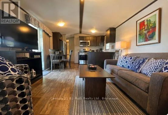Hwy 117 to Bonnie Lake Road Come home to your own little slice of Muskoka magic: a sweet 2-bedroom, 1-bath cottage that's all about easy, feel-good escapes in a super-friendly resort community. The second you walk in, you'll breathe easier. The living area's warm and welcoming, and that bright sunroom? It's basically begging for your morning coffee, a good book, or just kicking back with those gorgeous Bonnie Lake views. Inside or out, it's the perfect mix of cozy comfort and that classic rustic charm we all love up here. Step outside and the fun really begins. Hit the beach, paddle across our private lake, wander the peaceful trails, or jump into all the family-friendly activities the resort has going on. When the sun dips, grab some marshmallows and stories around the fire pit-those are the nights that turn into lifelong memories. The grounds are always beautifully kept, the vibe stays peaceful, and the sense of community here is honestly one of the best parts. Plus, you're just a quick drive from Bracebridge for groceries, shops, and anything else you might need. Whether you're dreaming of weekend getaways or claiming a full seasonal spot in Muskoka, this cottage is ready to welcome you with open arms. Seasonal fees cover lot fees, hydro, water, and full access to every amazing amenity and activity). Ready to make Muskoka your happy place? Let's chat! (id:27476)