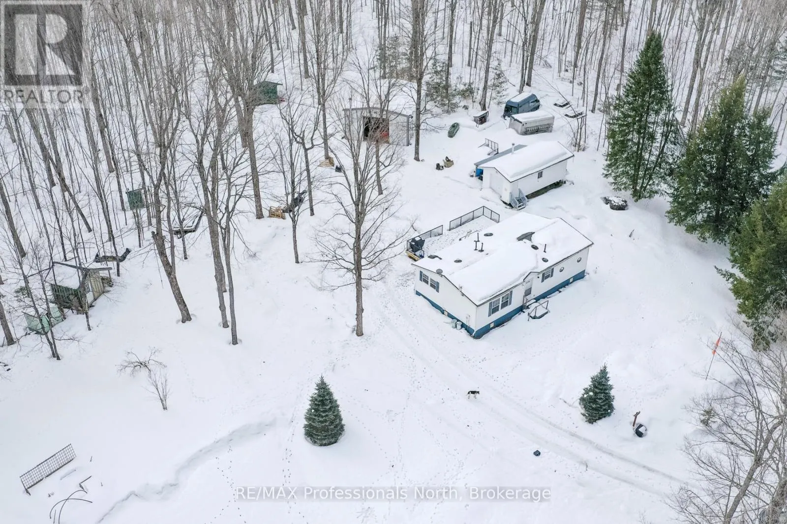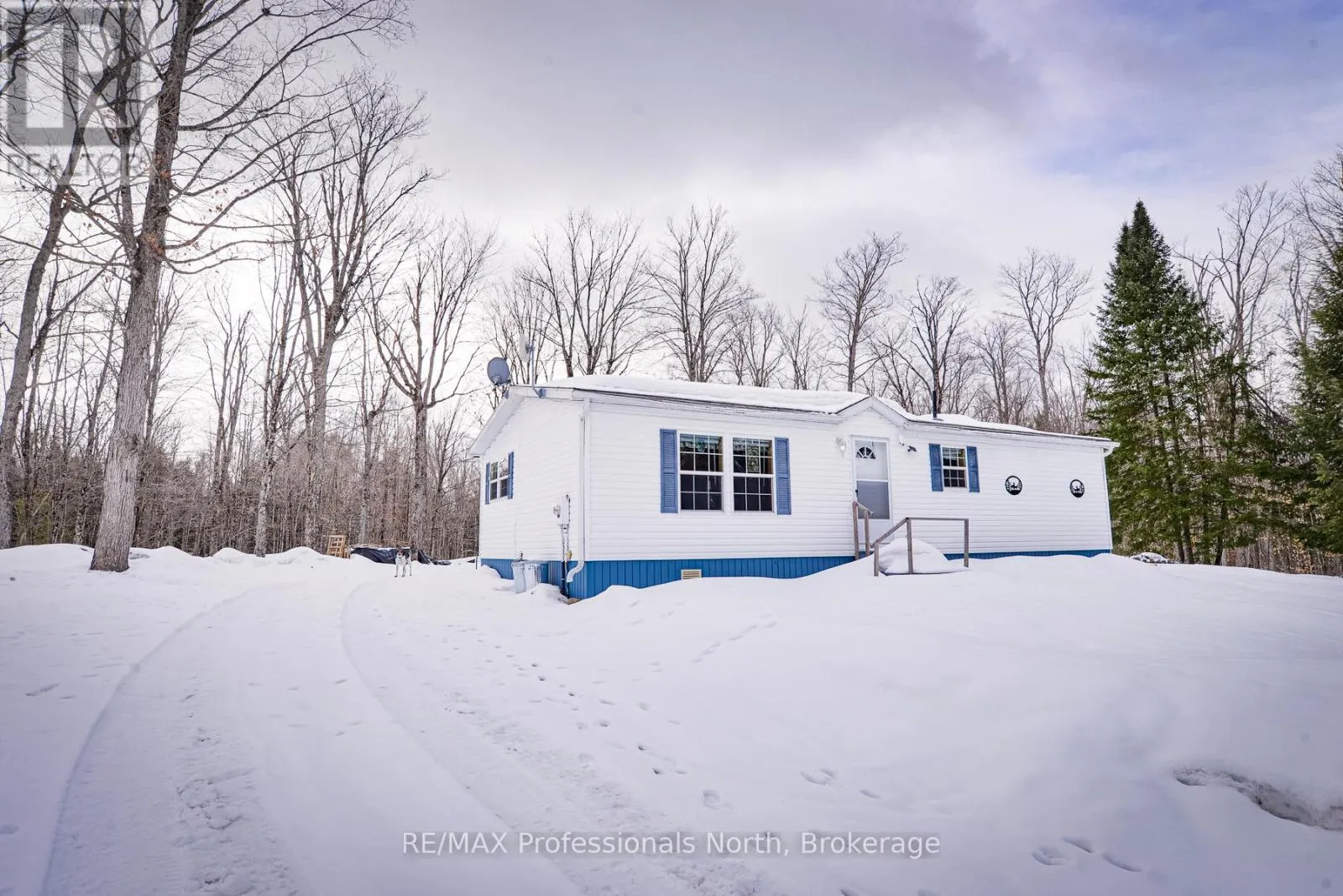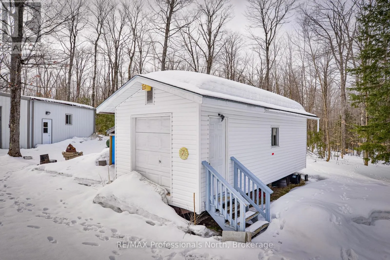 Cross Streets: Hwy 11 & Hwy 118E. ** Directions: Hwy 11 to exit 182 to Hwy 118E to #1874. SOP. Enjoy one floor living in this efficient 2 bedroom, 2 bathroom home. Situated within 15 minutes of town, this 4 acre lot offers wooded trails and space to roam. This is an ideal property for outdoor enthusiasts. For all your hobby and storage needs, the property is complimented by two outbuildings; one of which is 27.5' x 13.5' and features a garage door (6'x7') and hydro while the other is a newly built (2023) 28' x 22' fully insulated detached garage/shop complete with hydro, propane heat and a wood stove (WETT inspected). As a bonus, an expansive rear deck which includes a plumbed in fire table was just completed to enjoy the serenity of country living. This property offers a lot at this price point! Come take a look at this one today! (id:27476)