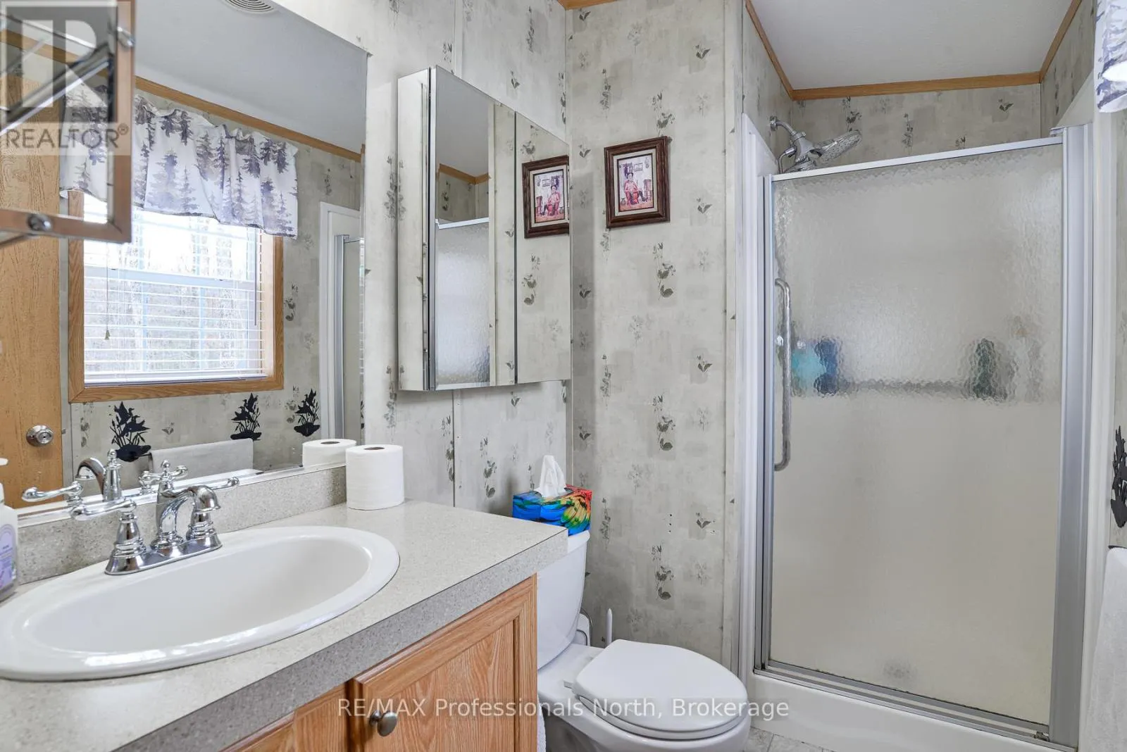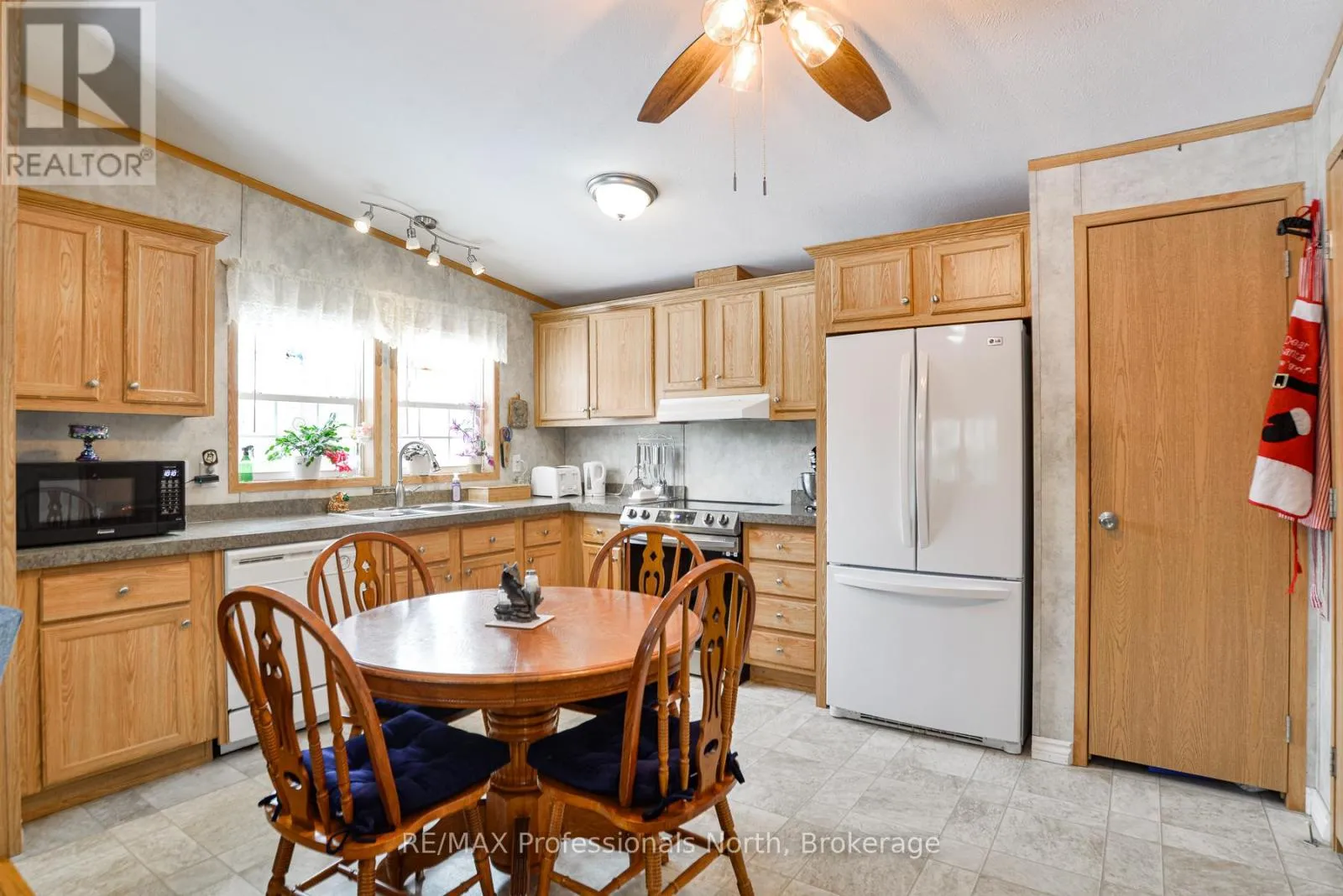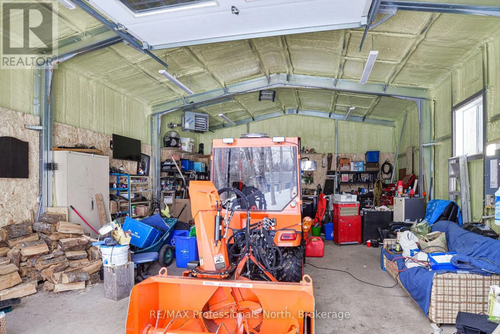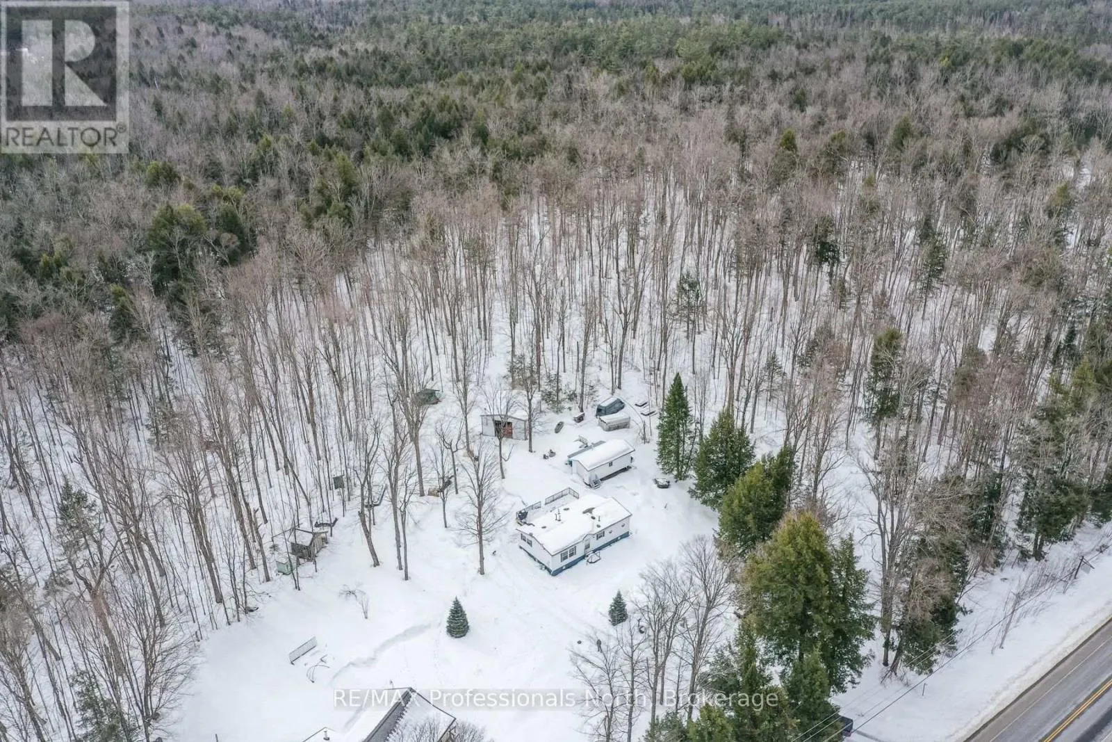 Cross Streets: Hwy 11 & Hwy 118E. ** Directions: Hwy 11 to exit 182 to Hwy 118E to #1874. SOP. Enjoy one floor living in this efficient 2 bedroom, 2 bathroom home. Situated within 15 minutes of town, this 4 acre lot offers wooded trails and space to roam. This is an ideal property for outdoor enthusiasts. For all your hobby and storage needs, the property is complimented by two outbuildings; one of which is 27.5' x 13.5' and features a garage door (6'x7') and hydro while the other is a newly built (2023) 28' x 22' fully insulated detached garage/shop complete with hydro, propane heat and a wood stove (WETT inspected). As a bonus, an expansive rear deck which includes a plumbed in fire table was just completed to enjoy the serenity of country living. This property offers a lot at this price point! Come take a look at this one today! (id:27476)