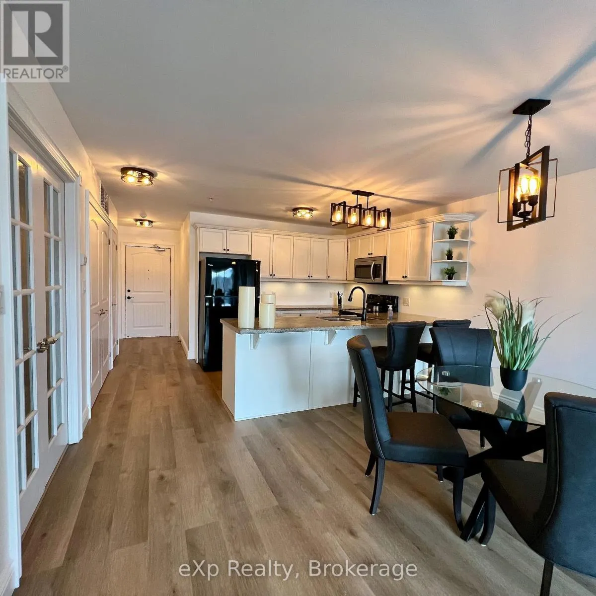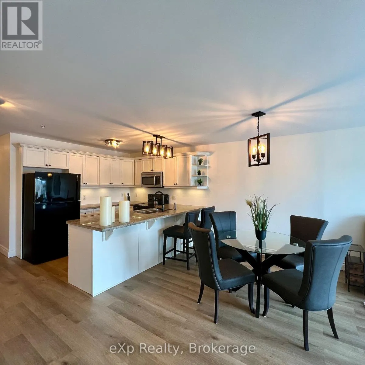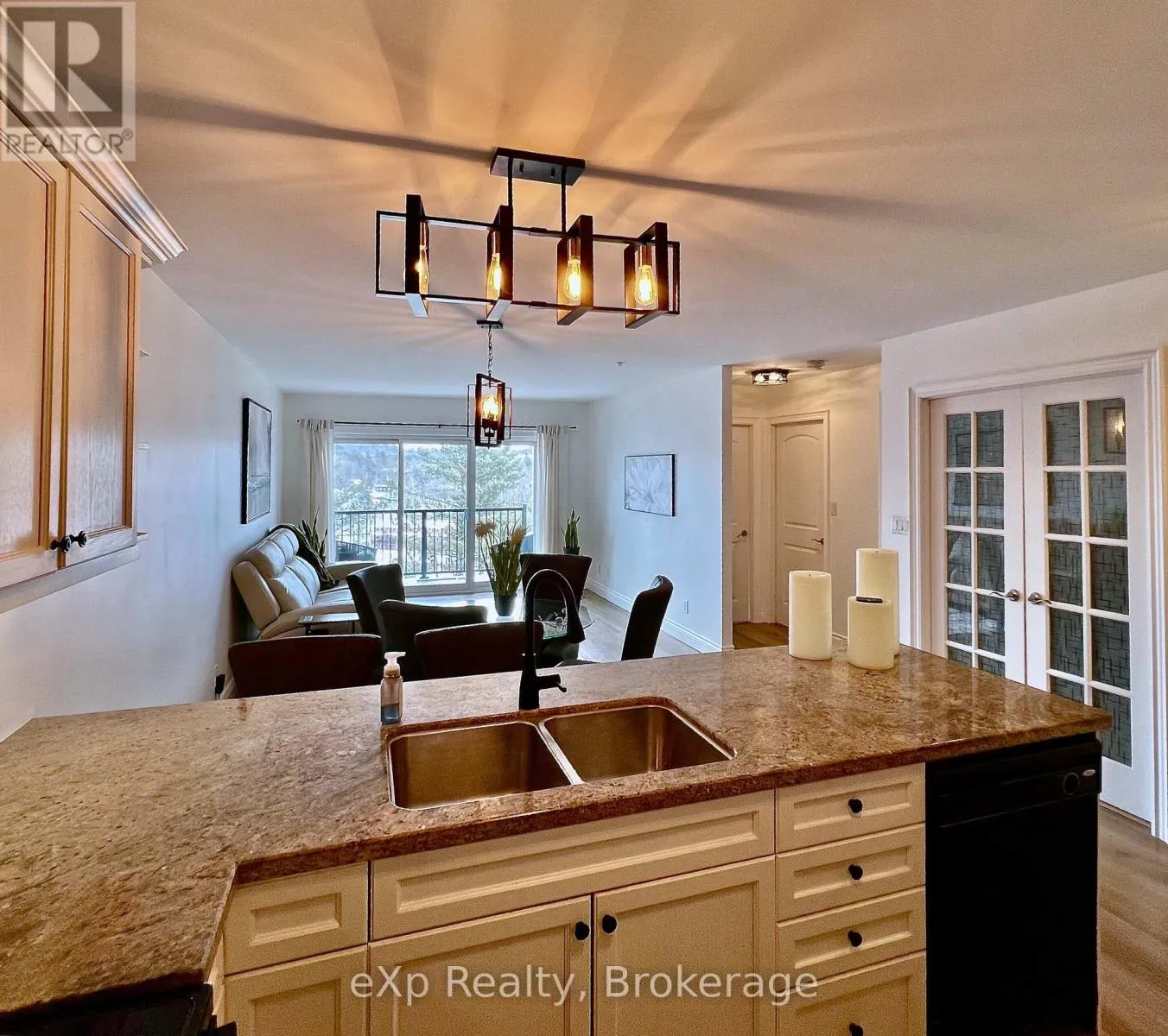 Cross Streets: Kimberley Av/Ontario St. ** Directions: From Hwy 11, take exit 184 Cedar Ln. Left onto Muskoka District Road 37 (Entrance Drive) Straight through the four-way stop merging onto Ontario St. Turn left at Kimberley Ave Slight right, 2nd building, parking on the right. Welcome to Legends at the Falls, where lifestyle, community, and waterfront living come together in the heart of Bracebridge. This thoughtfully designed 1 bedroom plus den condo offers a rare opportunity to enjoy low-maintenance living with views of the Muskoka River and Bracebridge Falls, including a front-row seat to seasonal fireworks and year-round natural beauty. The bright, open-concept layout is filled with natural light and designed for everyday comfort. The kitchen features granite countertops, and a generous breakfast bar-ideal for casual dining or entertaining. The living area flows seamlessly to a private balcony overlooking the river and treetops, creating a peaceful space to relax and unwind. The primary bedroom offers a calm retreat, while the versatile den easily serves as a home office, guest space, or hobby room-perfect for downsizers or those planning a flexible, lock-and-leave lifestyle. What truly sets this home apart is the community at Legends at the Falls. Residents enjoy a welcoming atmosphere with regularly scheduled activities such as coffee gatherings, Bingo, Euchre, social nights, and special events-making it easy to stay connected while still enjoying privacy when you want it. The building also offers excellent amenities including a fitness room, workshop, free car wash, BBQ areas, games room, and a large common space with kitchen and outdoor patios. Step outside to scenic walking trails, nearby parks and beaches, or stroll into downtown Bracebridge for dining, shopping, and local events. With in-suite laundry, accessible tub, underground parking, and a storage locker, everyday living is effortless. Whether you're downsizing, planning winters away, or simply looking for a lifestyle that blends nature, community, and simplicity, this is Muskoka condo living at its best. (id:27476)