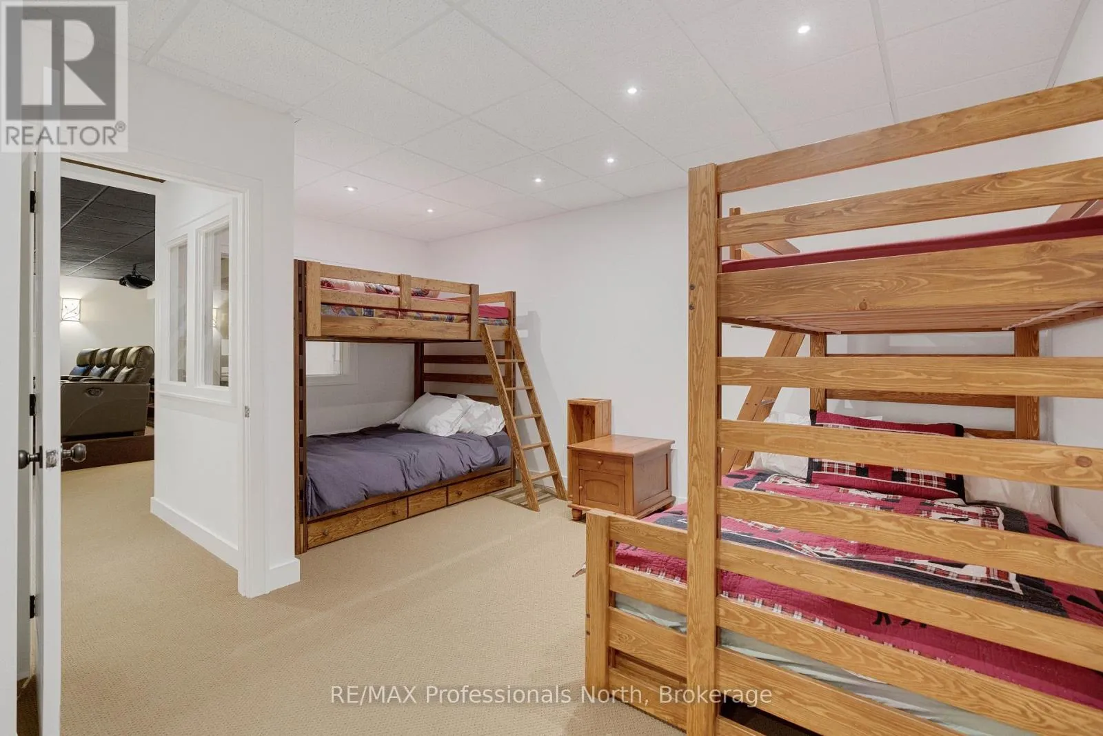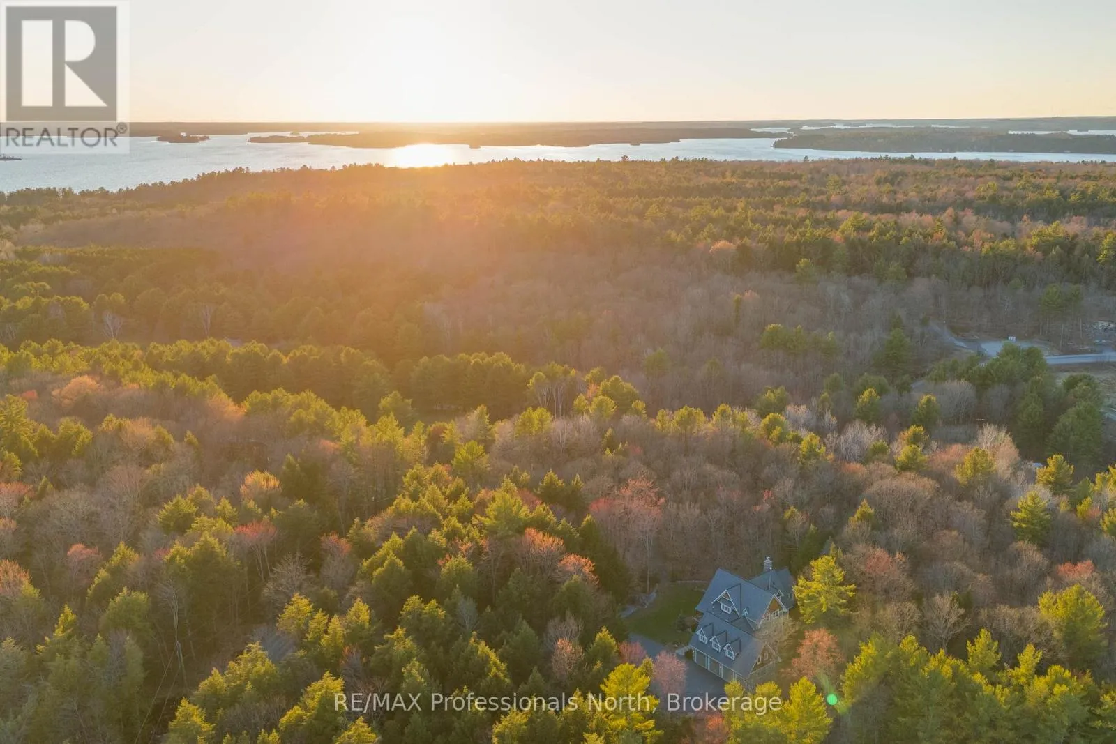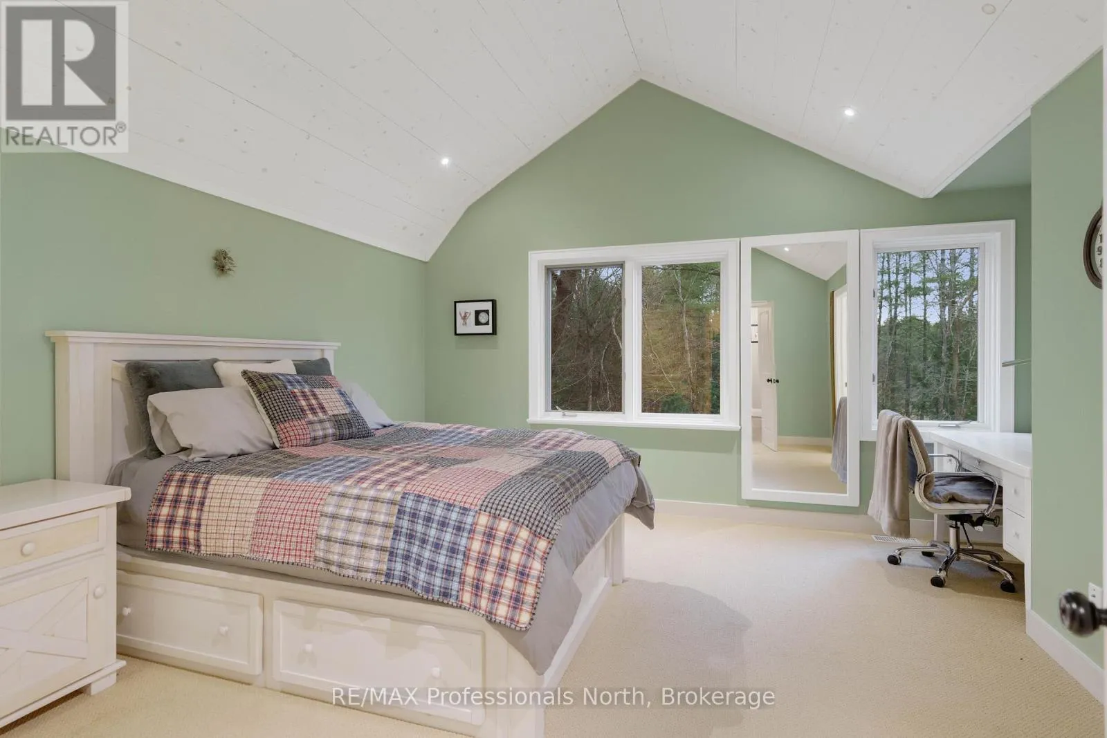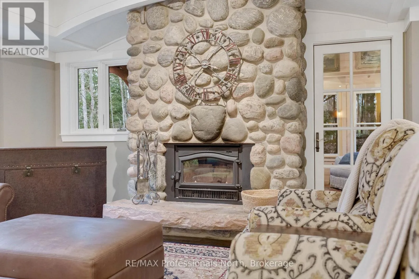 HWY 11 North, Take Gravenhurst exit, Take first right on bethune drive south, turn left on wine wood avenue east, take first right onto muskoka beach road follow Muskoka beach rd to property. SOP Welcome to an extraordinary private estate in the heart of Muskoka, where refined design meets the natural beauty of the surrounding landscape. Offering over 7000 square feet of thoughtfully crafted living space, this impressive property includes a 1000 square foot heated garage with floor drains and a finished loft above, along with three fully finished levels designed for elevated everyday living. At the centre of the home is a custom kitchen with premium appliances and exceptional attention to detail, seamlessly opening into the main living area where a stunning custom stone wood burning fireplace creates a striking focal point. Just beyond, the Muskoka room offers a peaceful escape surrounded by windows that draw the outdoors in, complete with a wood burning fireplace for year round comfort. A dedicated main floor office provides the perfect balance of productivity and connection. The second level hosts three spacious bedrooms, each with vaulted ceilings, walk in closets, and private ensuites with heated floors, while a fourth bedroom with its own bathroom is located on the lower level. The fully soundproofed lower level is designed for entertainment, featuring an eight seat tiered theatre, wet bar, and versatile bonus space ideal for a studio, gym, or playroom. Set on 16.74 acres of private land, the property features approximately half a kilometre of professionally built trails, three serene ponds for paddling or skating, and an invisible dog fence covering five acres. An automatic Kohler generator powers the entire home for added peace of mind. Located along Muskoka Beach Road, one of the region's most iconic drives known for its stunning fall colours, this property offers a rare blend of privacy and convenience just minutes to Bracebridge and Gravenhurst and close to several renowned golf courses. Floor plans and feature sheet available. (id:27476)