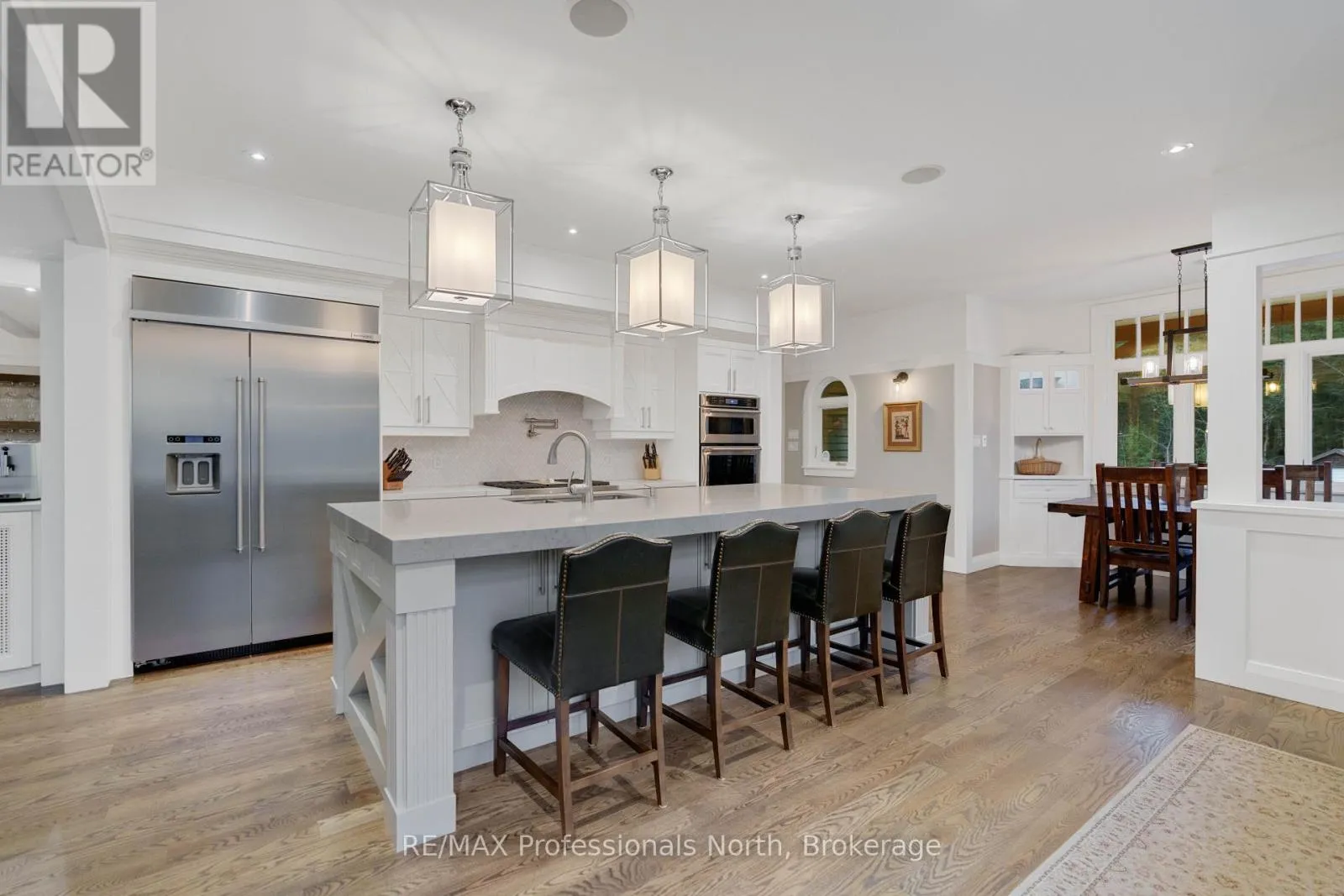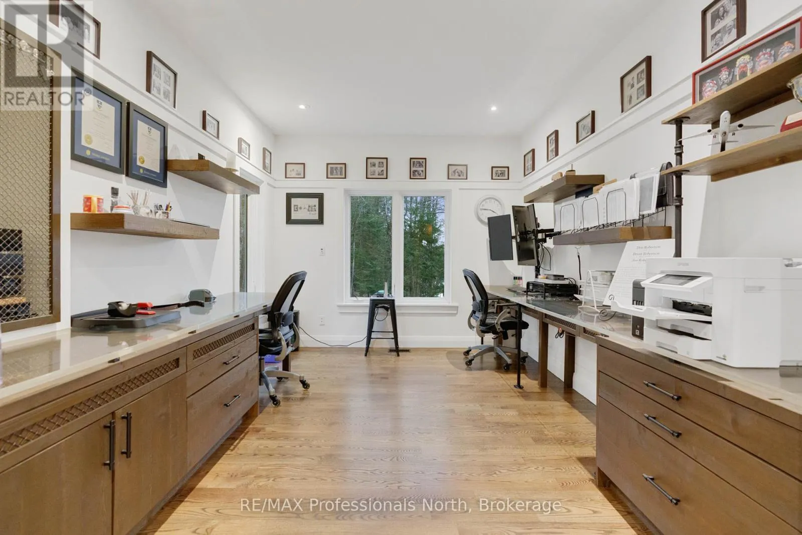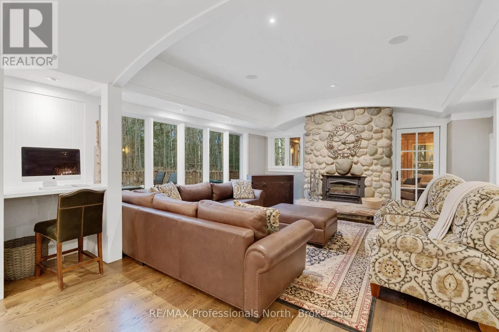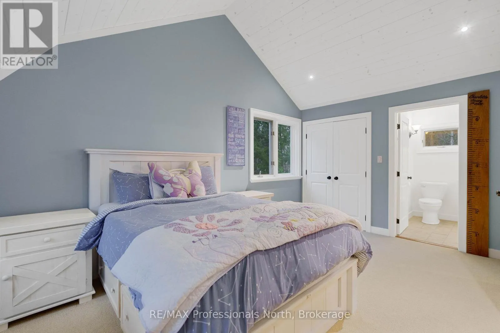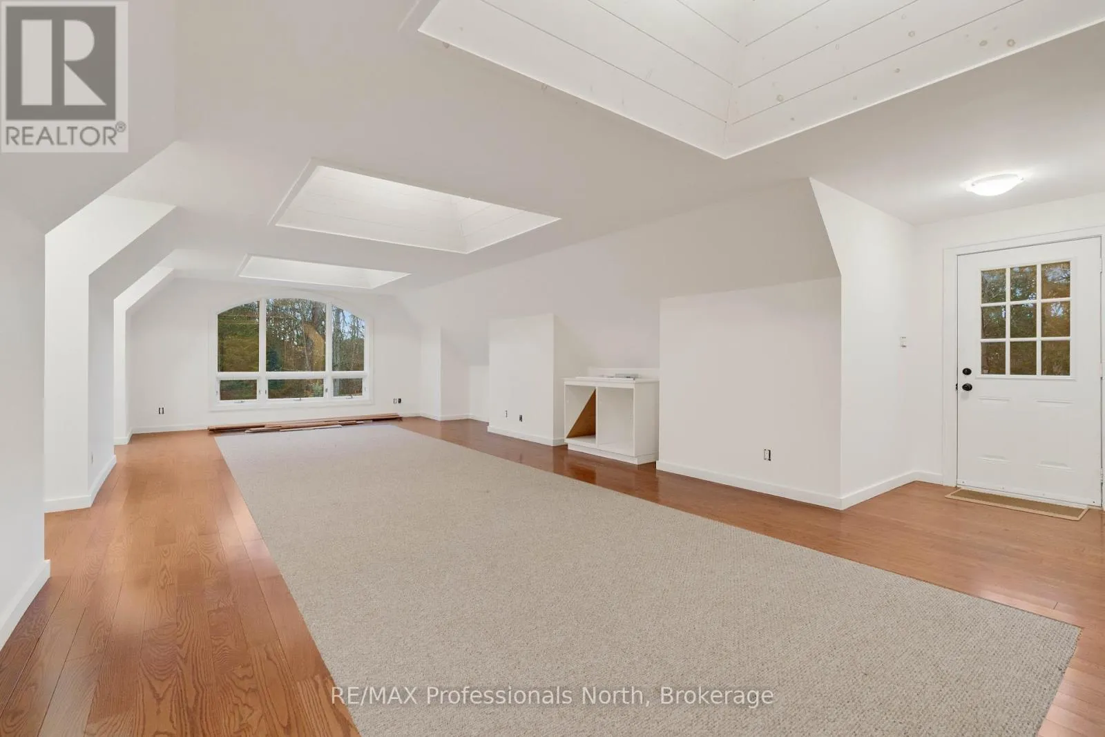 HWY 11 North, Take Gravenhurst exit, Take first right on bethune drive south, turn left on wine wood avenue east, take first right onto muskoka beach road follow Muskoka beach rd to property. SOP Welcome to an extraordinary private estate in the heart of Muskoka, where refined design meets the natural beauty of the surrounding landscape. Offering over 7000 square feet of thoughtfully crafted living space, this impressive property includes a 1000 square foot heated garage with floor drains and a finished loft above, along with three fully finished levels designed for elevated everyday living. At the centre of the home is a custom kitchen with premium appliances and exceptional attention to detail, seamlessly opening into the main living area where a stunning custom stone wood burning fireplace creates a striking focal point. Just beyond, the Muskoka room offers a peaceful escape surrounded by windows that draw the outdoors in, complete with a wood burning fireplace for year round comfort. A dedicated main floor office provides the perfect balance of productivity and connection. The second level hosts three spacious bedrooms, each with vaulted ceilings, walk in closets, and private ensuites with heated floors, while a fourth bedroom with its own bathroom is located on the lower level. The fully soundproofed lower level is designed for entertainment, featuring an eight seat tiered theatre, wet bar, and versatile bonus space ideal for a studio, gym, or playroom. Set on 16.74 acres of private land, the property features approximately half a kilometre of professionally built trails, three serene ponds for paddling or skating, and an invisible dog fence covering five acres. An automatic Kohler generator powers the entire home for added peace of mind. Located along Muskoka Beach Road, one of the region's most iconic drives known for its stunning fall colours, this property offers a rare blend of privacy and convenience just minutes to Bracebridge and Gravenhurst and close to several renowned golf courses. Floor plans and feature sheet available. (id:27476)