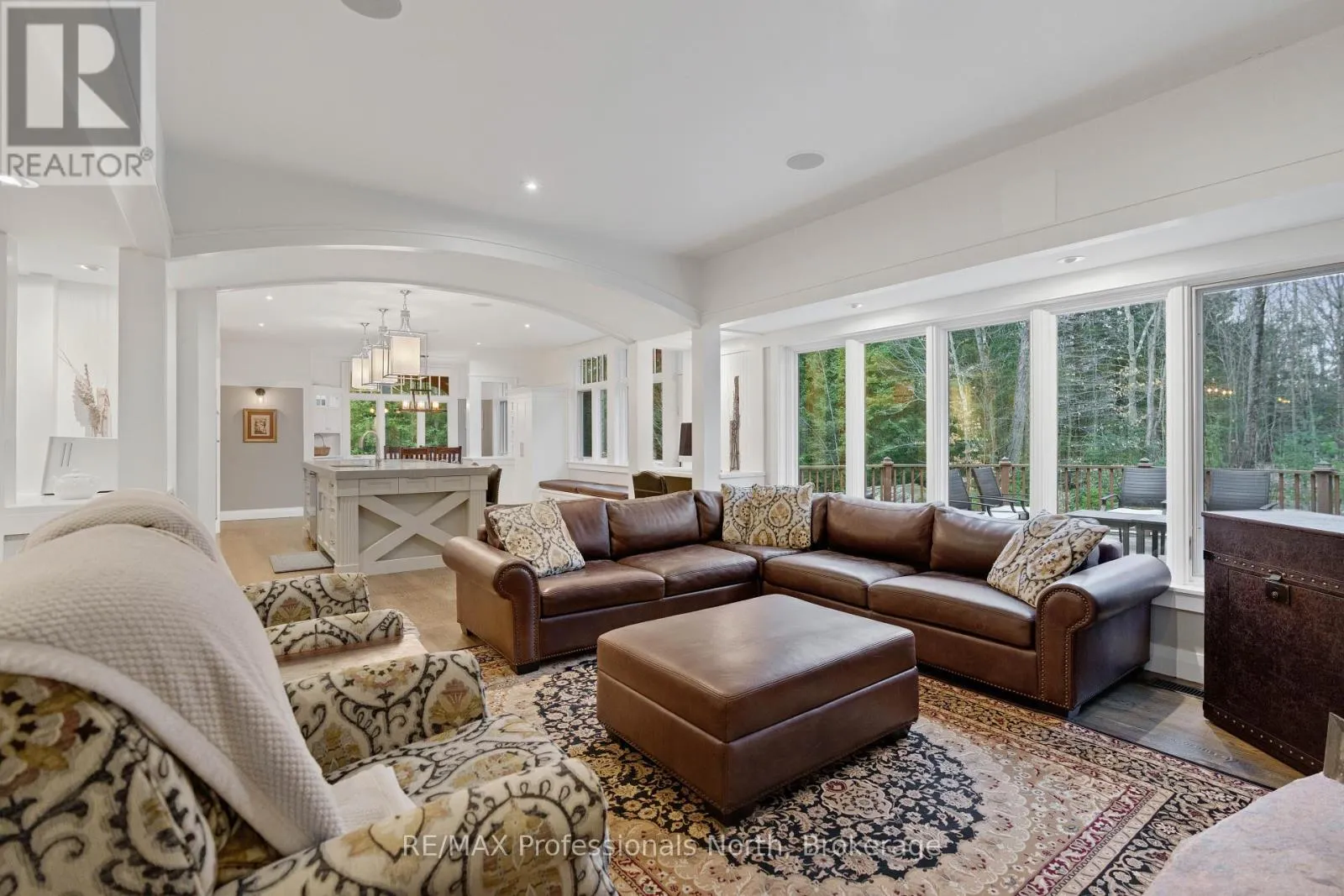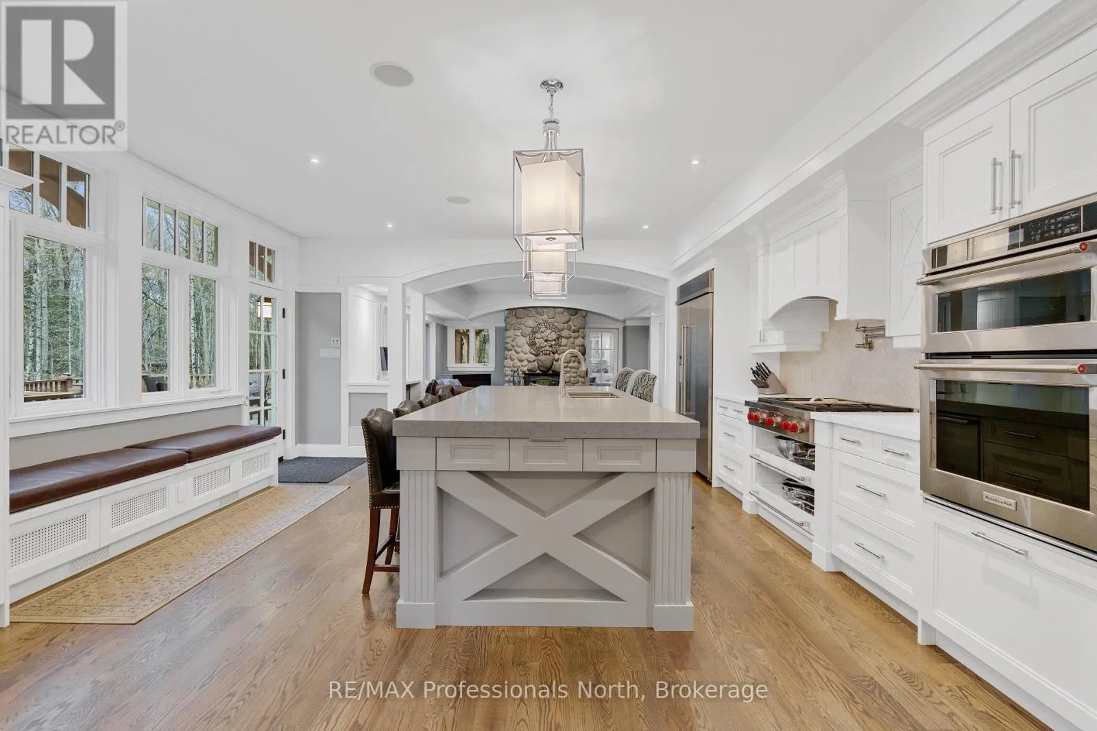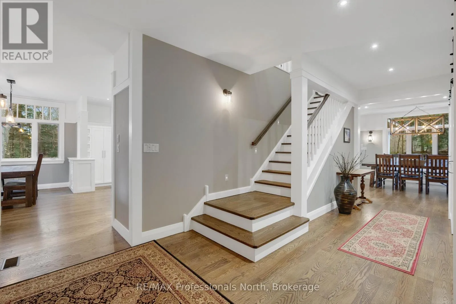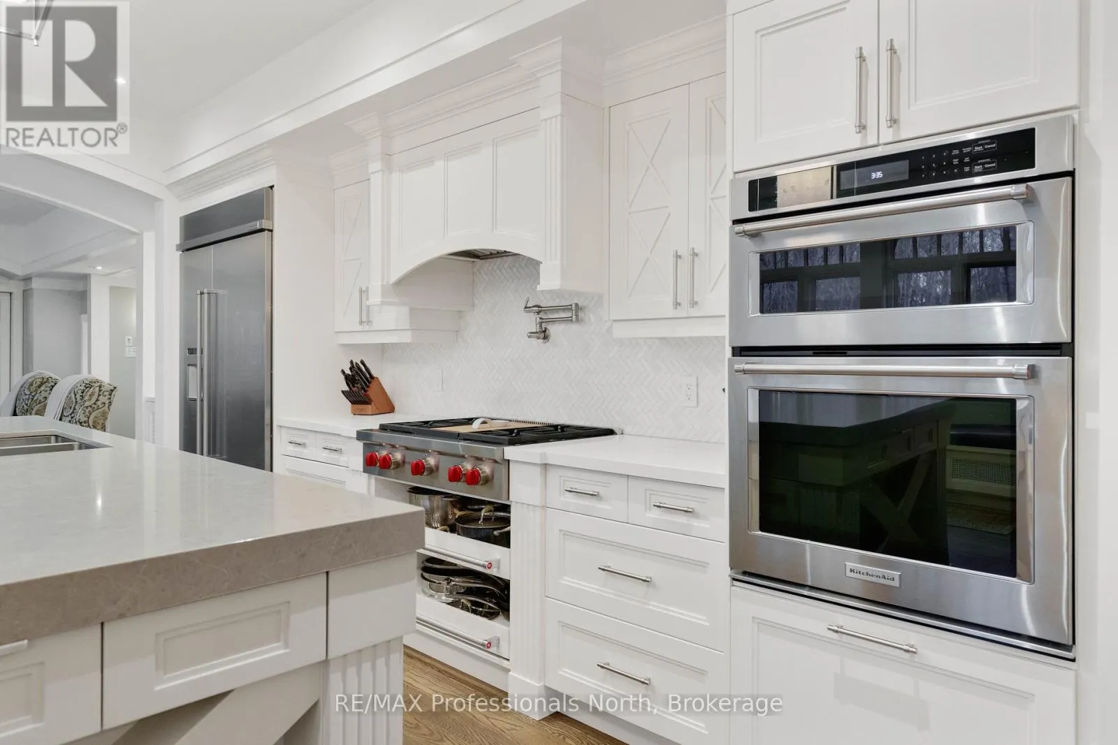 HWY 11 North, Take Gravenhurst exit, Take first right on bethune drive south, turn left on wine wood avenue east, take first right onto muskoka beach road follow Muskoka beach rd to property. SOP Welcome to an extraordinary private estate in the heart of Muskoka, where refined design meets the natural beauty of the surrounding landscape. Offering over 7000 square feet of thoughtfully crafted living space, this impressive property includes a 1000 square foot heated garage with floor drains and a finished loft above, along with three fully finished levels designed for elevated everyday living. At the centre of the home is a custom kitchen with premium appliances and exceptional attention to detail, seamlessly opening into the main living area where a stunning custom stone wood burning fireplace creates a striking focal point. Just beyond, the Muskoka room offers a peaceful escape surrounded by windows that draw the outdoors in, complete with a wood burning fireplace for year round comfort. A dedicated main floor office provides the perfect balance of productivity and connection. The second level hosts three spacious bedrooms, each with vaulted ceilings, walk in closets, and private ensuites with heated floors, while a fourth bedroom with its own bathroom is located on the lower level. The fully soundproofed lower level is designed for entertainment, featuring an eight seat tiered theatre, wet bar, and versatile bonus space ideal for a studio, gym, or playroom. Set on 16.74 acres of private land, the property features approximately half a kilometre of professionally built trails, three serene ponds for paddling or skating, and an invisible dog fence covering five acres. An automatic Kohler generator powers the entire home for added peace of mind. Located along Muskoka Beach Road, one of the region's most iconic drives known for its stunning fall colours, this property offers a rare blend of privacy and convenience just minutes to Bracebridge and Gravenhurst and close to several renowned golf courses. Floor plans and feature sheet available. (id:27476)