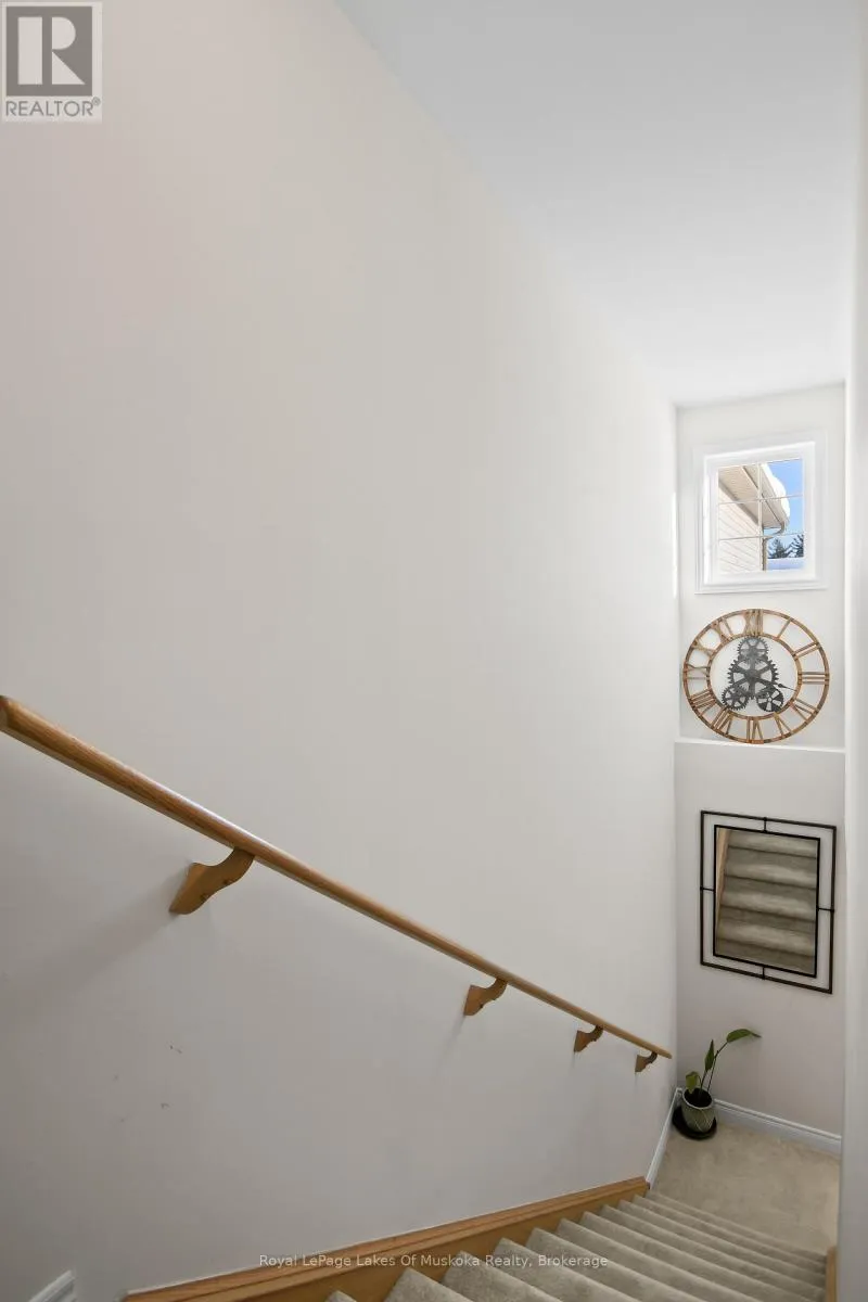 Cross Streets: Manitoba St. ** Directions: Manitoba St to Quinn Forest to Nicole Park. Well maintained, three year old, three bedroom townhouse in a popular new subdivision within the town of Bracebridge. Located in a quiet cul-de-sac with little traffic, this property is walking distance to downtown shopping and restaurants as well as the high school and Sportsplex. The main floor has a 2pc bath and open concept kitchen/living space with stone counters and a large island. The second floor has three well sized bedrooms and a 4pc bath. The basement is partially finished and provides additional living space plus laundry. The single car attached garage has inside entry to the front hall and the driveway for this unit is extra long for the neighbourhood and can hold up to three cars. The property backs onto a forested area which gives you an out-in-the-country feel on the custom back deck which extends your living space in the warmer months and makes a great spot to bbq year round. This is a beautiful home in a growing town with so much to offer. (id:27476)