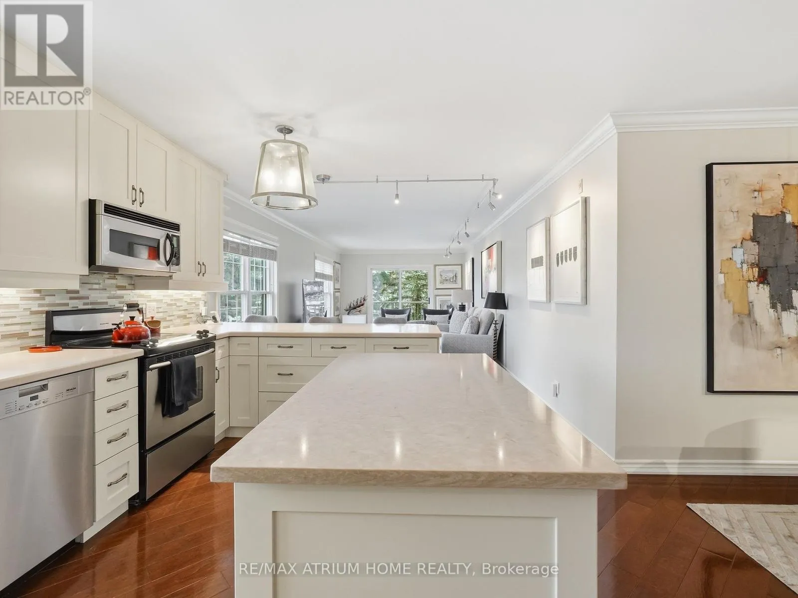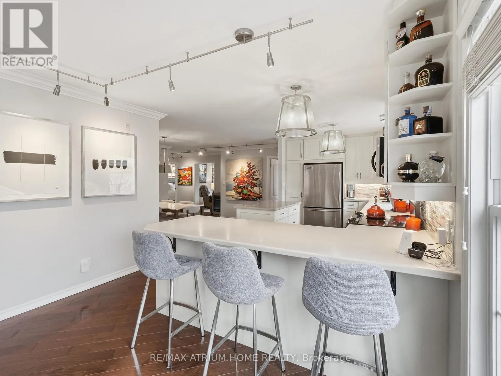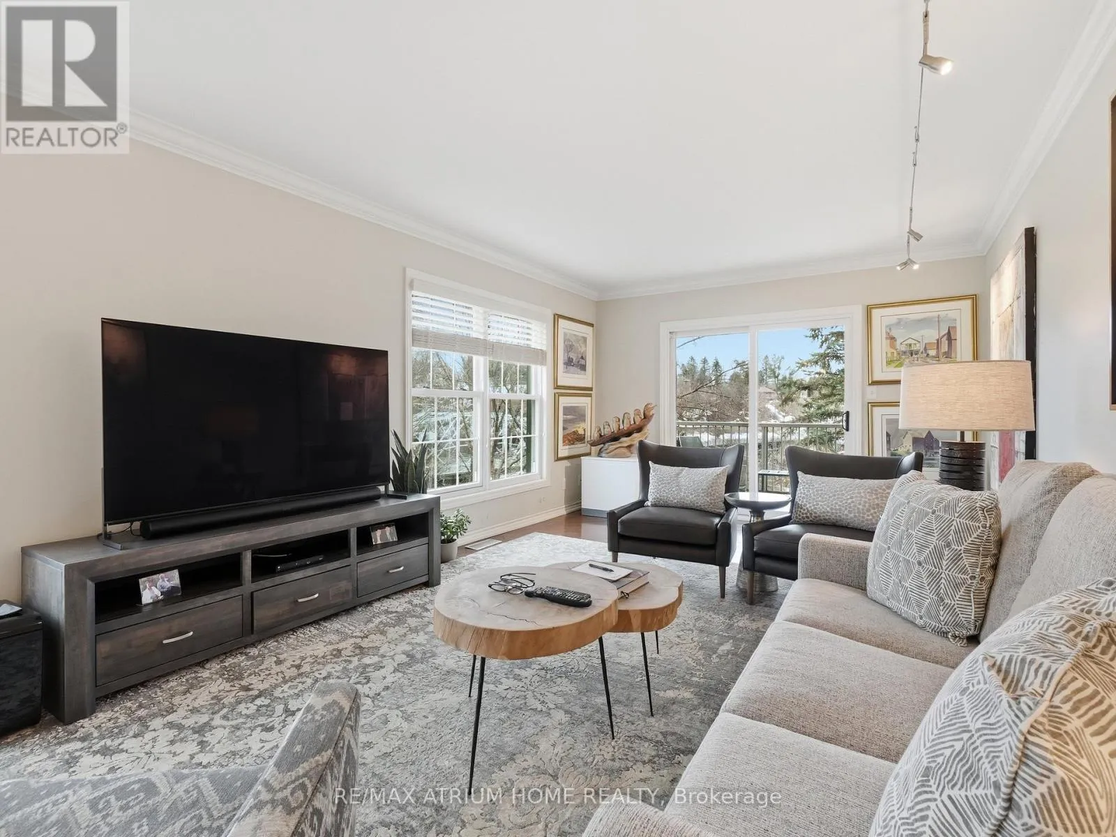 Cross Streets: Manitoba & Ontario. ** Directions: Near Ontario st and Mahaffy crt. Set within the natural beauty of Muskoka, this residence at Drumkerry by the Falls offers a rare balance of quiet retreat and everyday convenience in the heart of Bracebridge. Thoughtfully designed, the two-bedroom plus den suite features a bright, open layout where natural light moves effortlessly through the living and dining spaces, anchored by a well-appointed kitchen with generous workspace, ample cabinetry, and a welcoming breakfast bar for casual dining or gathering. The living area extends seamlessly onto a private covered balcony - an ideal place to unwind with the subtle presence of the falls nearby. The primary bedroom serves as a calm, private retreat with a walk-in closet and ensuite bath, while the second bedroom and den provide flexibility for guests, a home office, or additional living space. Meticulously maintained and beautifully presented, the suite also includes in-suite laundry, one parking space, and a private locker, all within a well-managed, secure building. Whether enjoyed as a refined weekend escape or a full-time residence, this home offers a sense of ease, connection, and understated comfort that defines Muskoka living. (id:27476)