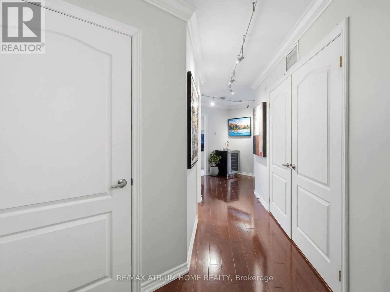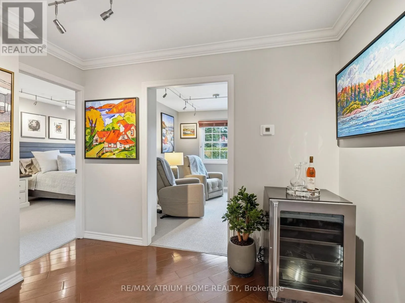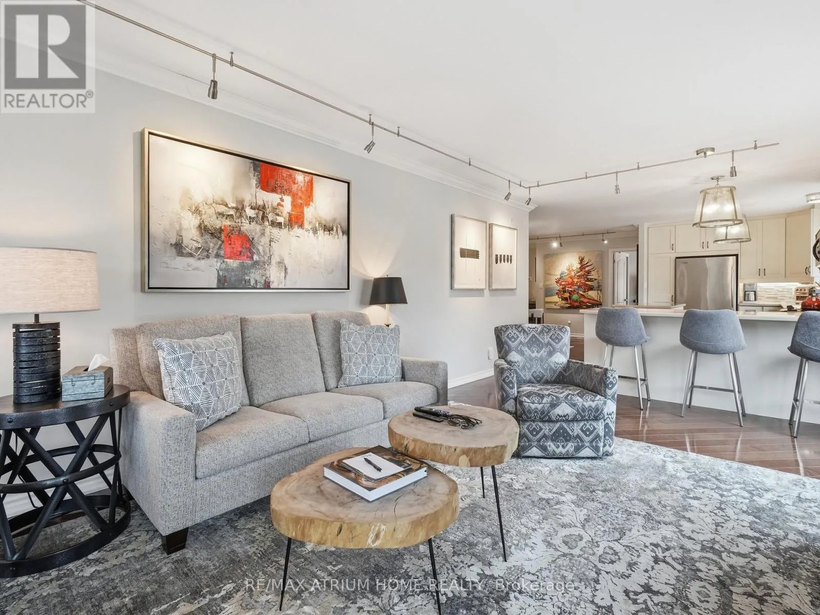 Cross Streets: Manitoba & Ontario. ** Directions: Near Ontario st and Mahaffy crt. Set within the natural beauty of Muskoka, this residence at Drumkerry by the Falls offers a rare balance of quiet retreat and everyday convenience in the heart of Bracebridge. Thoughtfully designed, the two-bedroom plus den suite features a bright, open layout where natural light moves effortlessly through the living and dining spaces, anchored by a well-appointed kitchen with generous workspace, ample cabinetry, and a welcoming breakfast bar for casual dining or gathering. The living area extends seamlessly onto a private covered balcony - an ideal place to unwind with the subtle presence of the falls nearby. The primary bedroom serves as a calm, private retreat with a walk-in closet and ensuite bath, while the second bedroom and den provide flexibility for guests, a home office, or additional living space. Meticulously maintained and beautifully presented, the suite also includes in-suite laundry, one parking space, and a private locker, all within a well-managed, secure building. Whether enjoyed as a refined weekend escape or a full-time residence, this home offers a sense of ease, connection, and understated comfort that defines Muskoka living. (id:27476)
