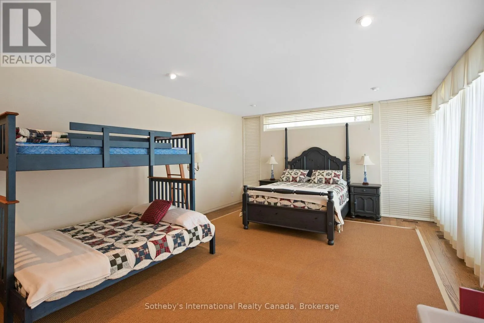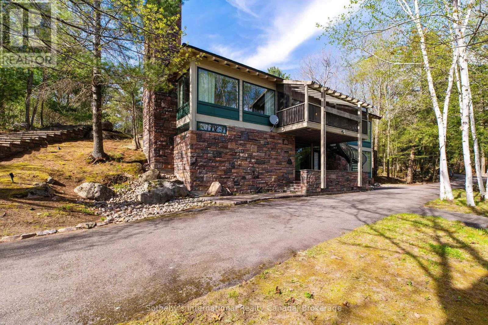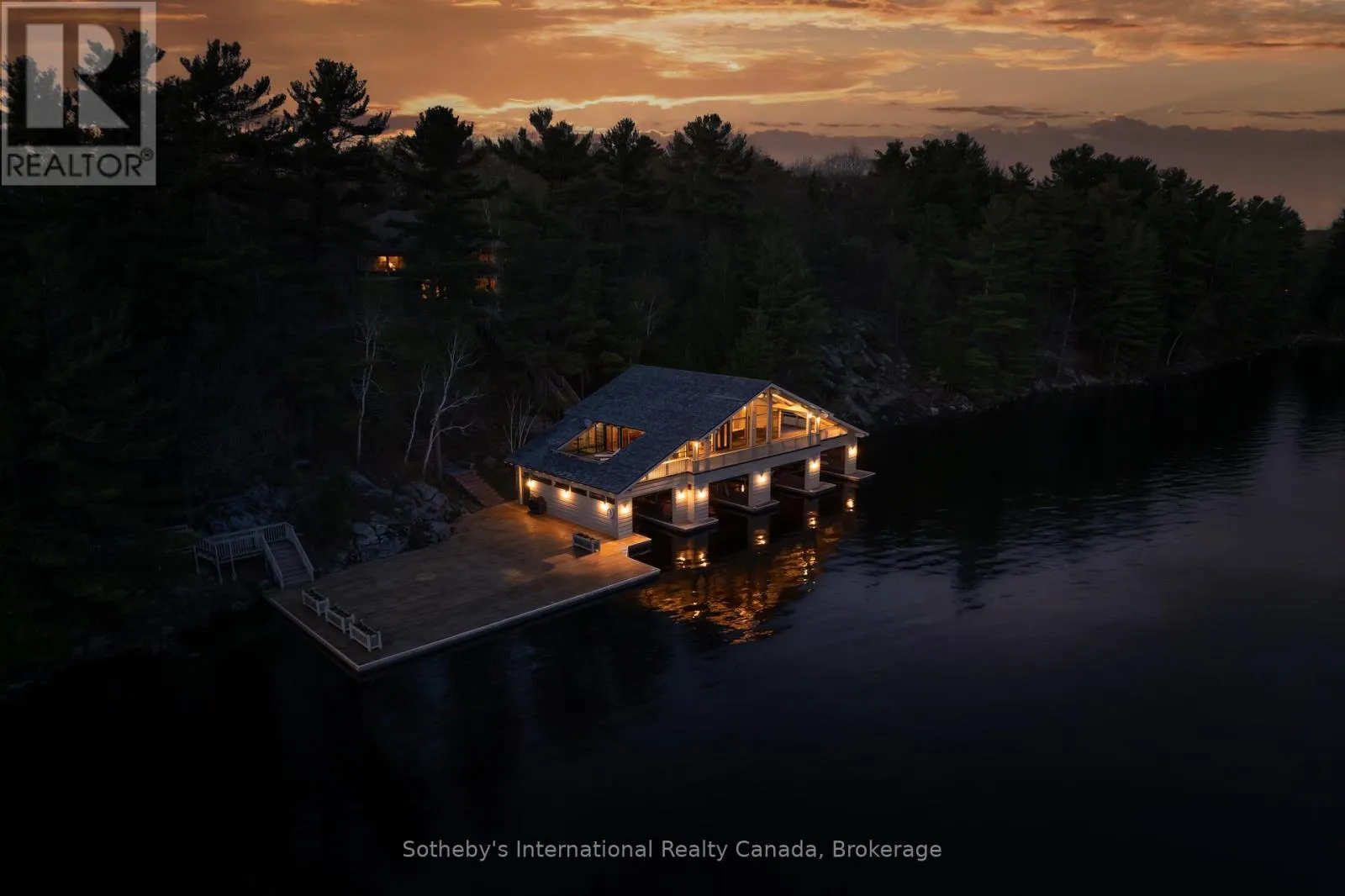 Cross Streets: HWY 118W Golden Beach Road Bangor Lodge Road Waldmere Road #1249 & 1250 S.O.P. ** Directions: hwy 118 to Golden Beach Road to Bangor to Waldmere. This extraordinary property on Lake Muskoka presents a unique and valuable opportunity to acquire a prime location featuring an oversized boathouse. Set on a generous 3.5-acre lot with an impressive 625 feet of lake frontage, the property enjoys expansive south-facing exposure. Prominently placed along the shoreline is an immense four-slip, two-story boathouse. Upstairs, you will find two bedrooms and a full bathroom, while the lower level includes two additional bathrooms and a sauna. The primary boathouse bedroom boasts panoramic lake views an unforgettable sight to wake up to each morning. A vast, oversized dock completes the structure, making it the perfect venue for entertaining guests and enjoying the waterfront lifestyle. Additionally, the property includes a charming three-bedroom, three-bathroom cottage. This delightful retreat complements the waterfront setting with an open-concept living room, a grand stone fireplace, and a kitchen that opens to a patio with stunning elevated lake views. The exterior showcases exquisite custom stone landscaping and craftsmanship throughout. A two-bay attached garage provides ample storage. Conveniently located just 10 minutes from Bracebridge and 20 minutes from Port Carling, this prestigious property combines accessibility with a distinguished Lake Muskoka setting. A rare offering with incredible development potential, it presents the opportunity to establish a lasting legacy on this coveted stretch of Sunset Point. (id:27476)