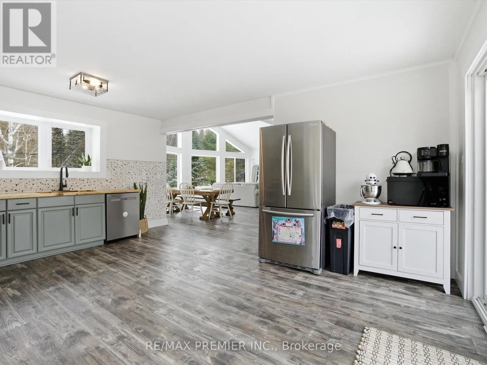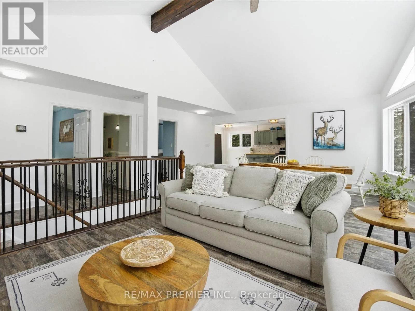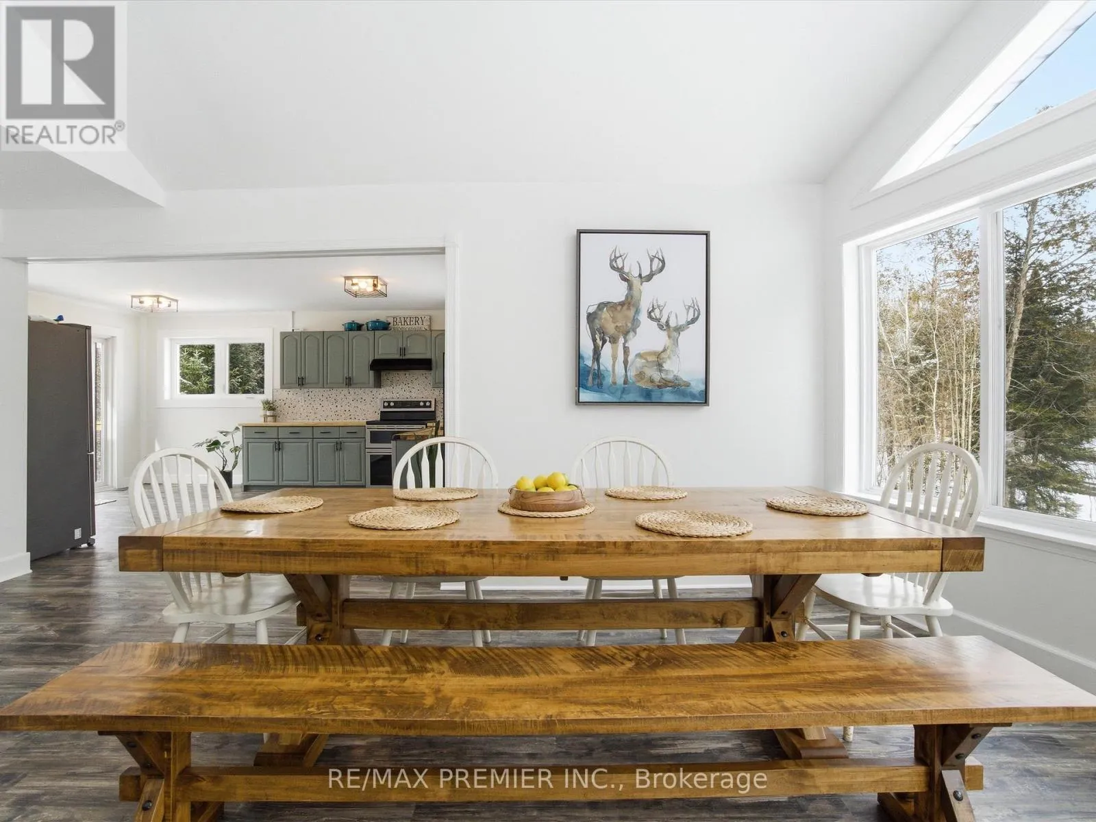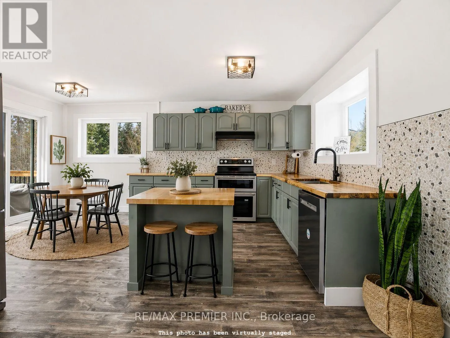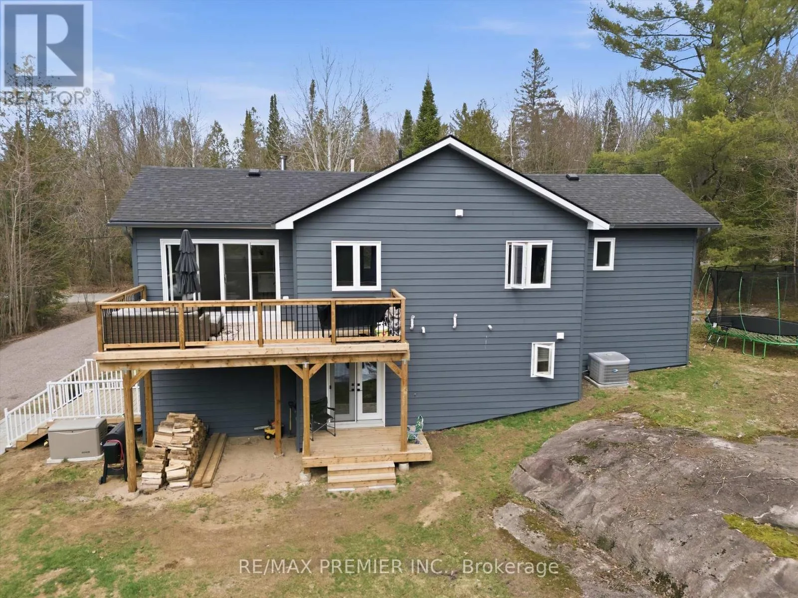 Hwy 117 & Springdale Park Rd Welcome to this beautifully updated 4-bedroom, 3-bathroom home offering 2340 sf of finished living space plus 300 sf of unfinished storage space. Tucked away on a quiet, tree-lined lot just steps (approximately 200 ft) from the Muskoka River, this property delivers the perfect mix of privacy, efficiency and location. This is the lifestyle buyers are looking for - nature, space, and convenience. Located in the highly sought-after Macaulay school district and only minutes to High Falls and with quick access to the highway, it's ideal for families, outdoor enthusiasts, or anyone wanting a peaceful Muskoka setting without sacrificing accessibility. Major updates have already been completed, including insulated siding, roof, soffit, fascia, eavestroughs, windows and doors (2023), a front deck (2024), brand new 11 x 20 ft back deck (2025), whole-home generator (2024), furnace (2024), and main floor vinyl flooring (2025) - maple flooring beneath vinyl flooring in living room, dining room and kitchen, making this a true move-in-ready home. Built on a solid ICF foundation for superior efficiency and durability, it's designed for year-round comfort, while the wood stove inside adds warmth and charm - perfect for cozy nights. Outside, enjoy your new decks surrounded by mature trees that provide privacy and a true Muskoka feel. With its family-friendly location, close proximity to the water without waterfront taxes, easy highway access, reliable systems already in place and strong appeal as a potential short-term rental or income property, this is a rare opportunity you won't want to miss. (id:27476)