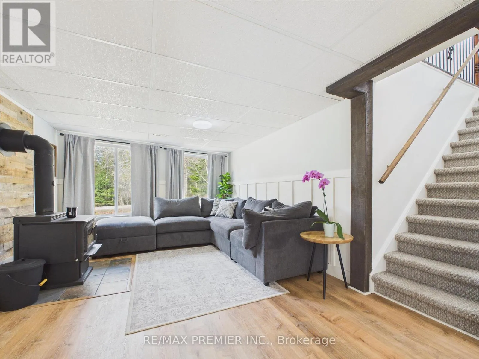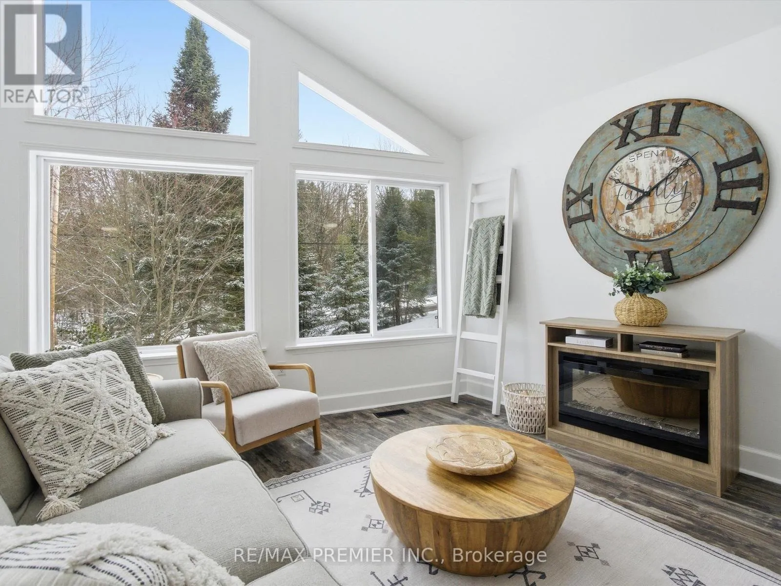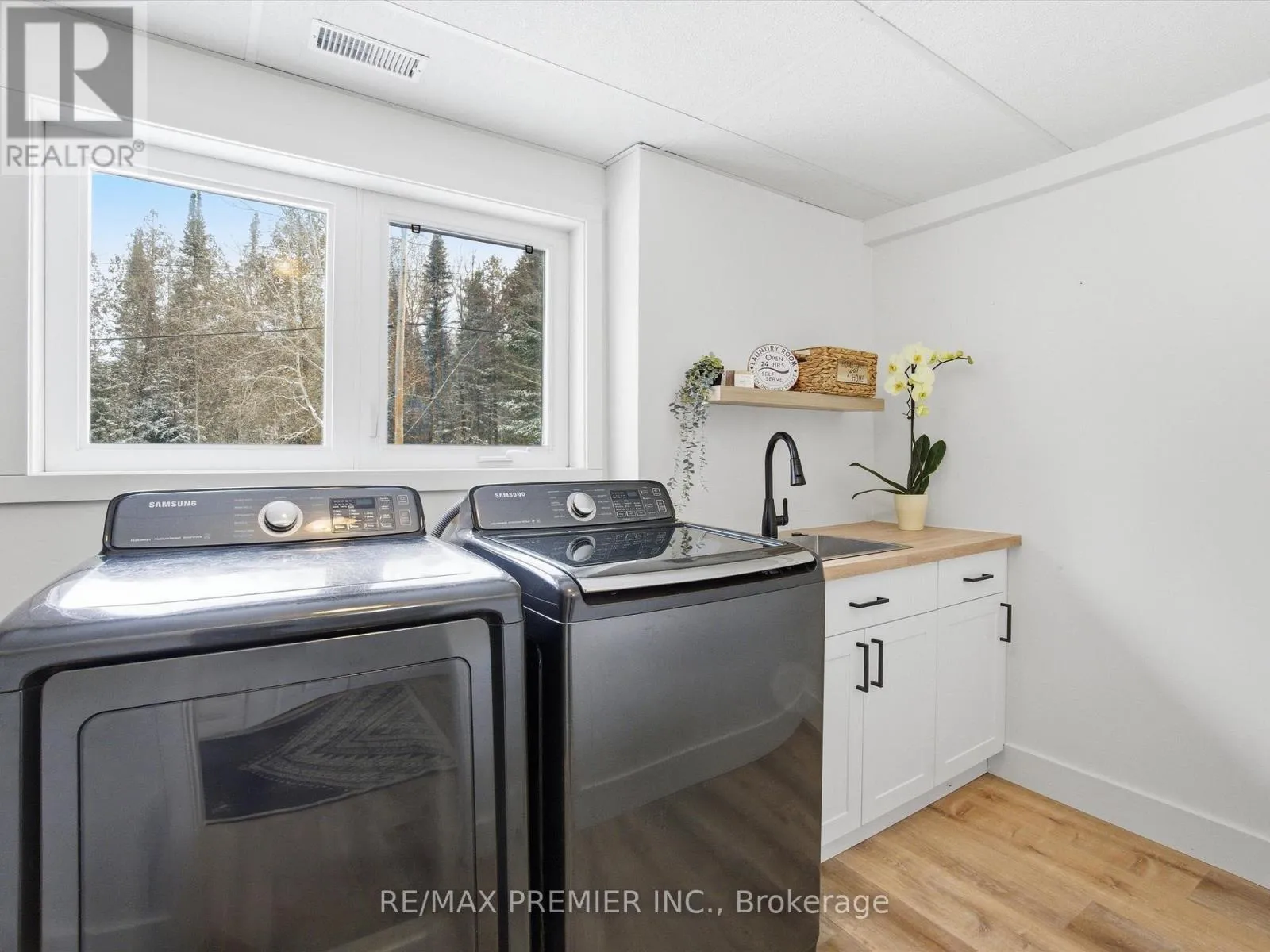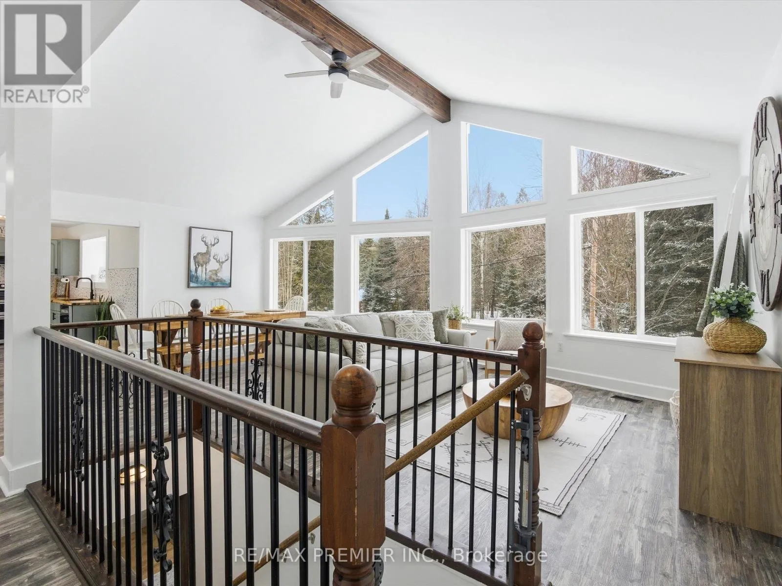Hwy 117 & Springdale Park Rd Welcome to this beautifully updated 4-bedroom, 3-bathroom home offering 2340 sf of finished living space plus 300 sf of unfinished storage space. Tucked away on a quiet, tree-lined lot just steps (approximately 200 ft) from the Muskoka River, this property delivers the perfect mix of privacy, efficiency and location. This is the lifestyle buyers are looking for - nature, space, and convenience. Located in the highly sought-after Macaulay school district and only minutes to High Falls and with quick access to the highway, it's ideal for families, outdoor enthusiasts, or anyone wanting a peaceful Muskoka setting without sacrificing accessibility. Major updates have already been completed, including insulated siding, roof, soffit, fascia, eavestroughs, windows and doors (2023), a front deck (2024), brand new 11 x 20 ft back deck (2025), whole-home generator (2024), furnace (2024), and main floor vinyl flooring (2025) - maple flooring beneath vinyl flooring in living room, dining room and kitchen, making this a true move-in-ready home. Built on a solid ICF foundation for superior efficiency and durability, it's designed for year-round comfort, while the wood stove inside adds warmth and charm - perfect for cozy nights. Outside, enjoy your new decks surrounded by mature trees that provide privacy and a true Muskoka feel. With its family-friendly location, close proximity to the water without waterfront taxes, easy highway access, reliable systems already in place and strong appeal as a potential short-term rental or income property, this is a rare opportunity you won't want to miss. (id:27476)