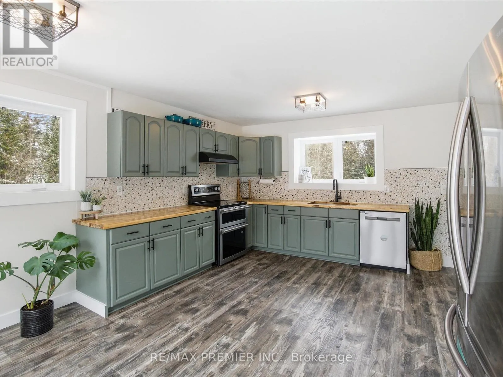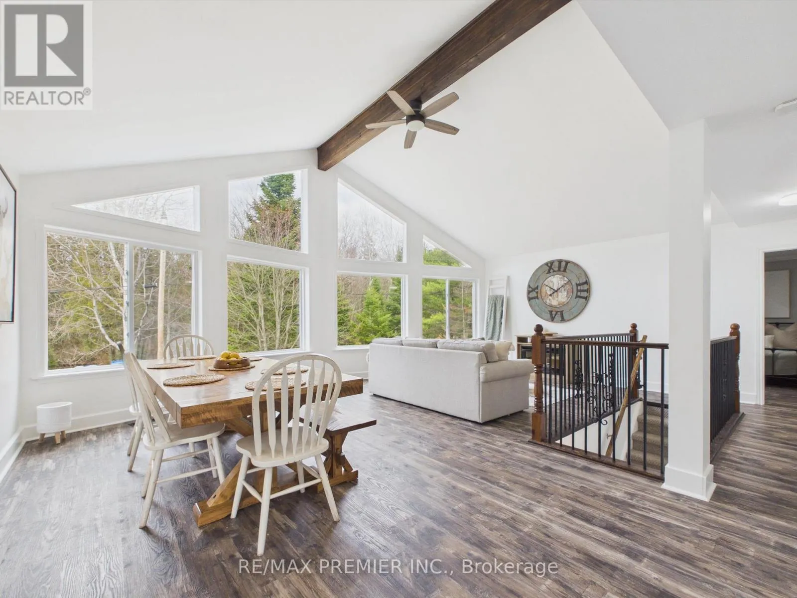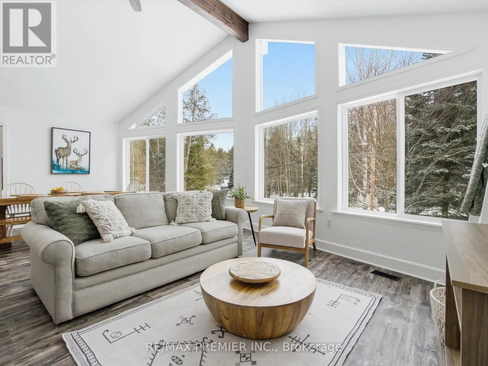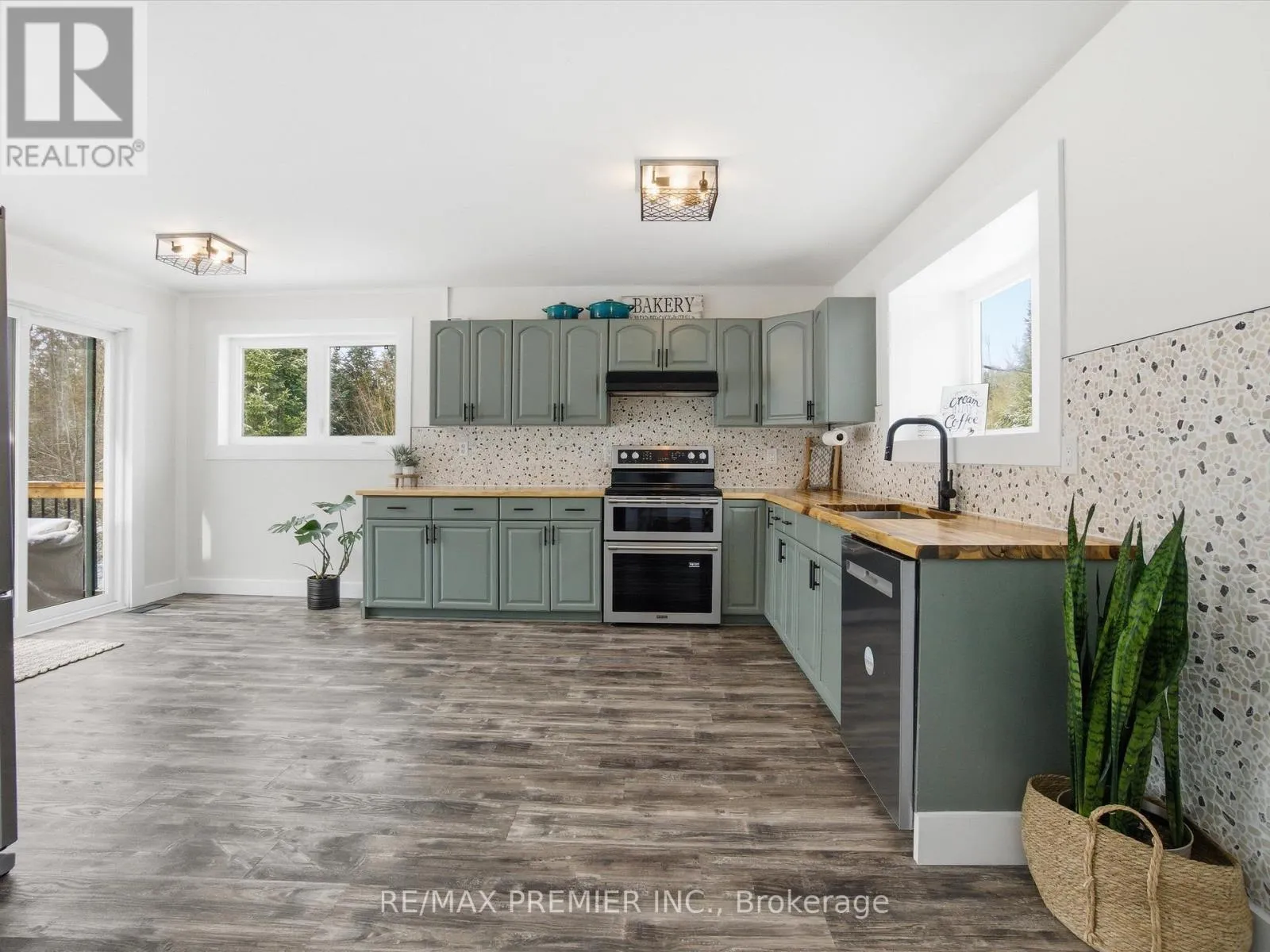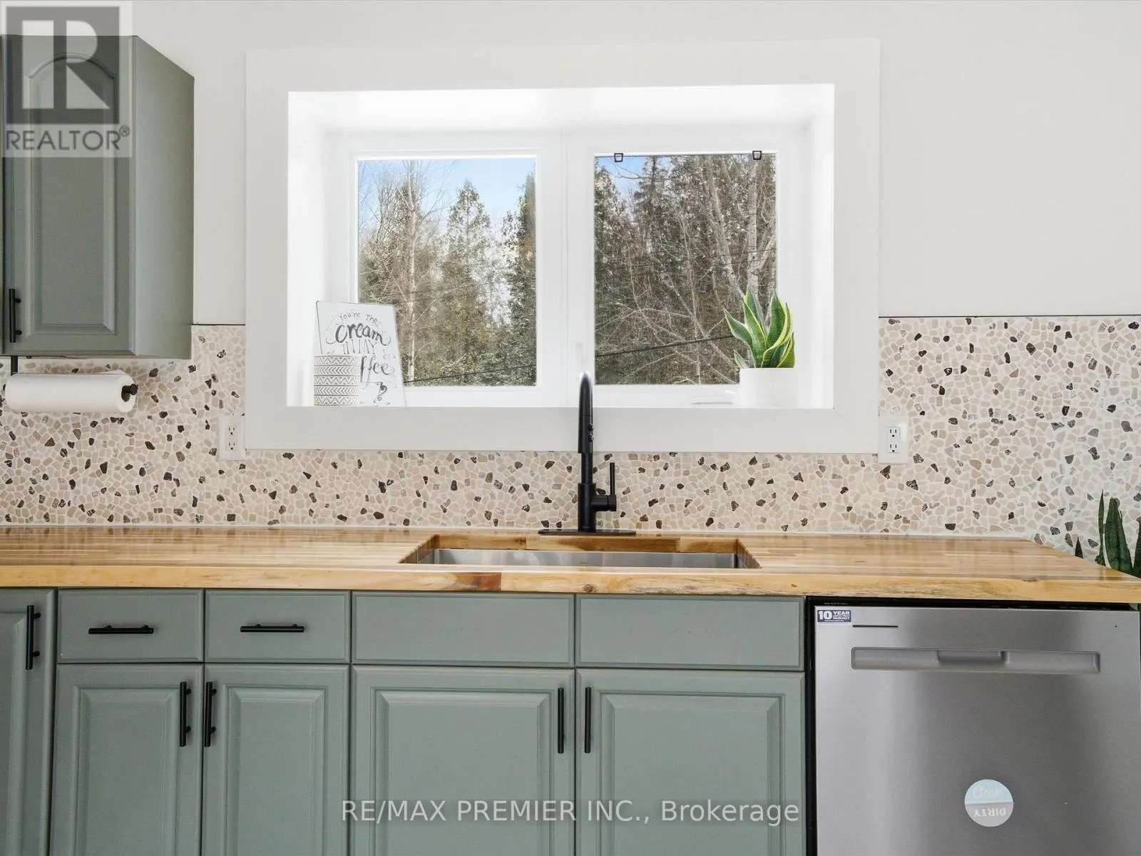 Hwy 117 & Springdale Park Rd Welcome to this beautifully updated 4-bedroom, 3-bathroom home offering 2340 sf of finished living space plus 300 sf of unfinished storage space. Tucked away on a quiet, tree-lined lot just steps (approximately 200 ft) from the Muskoka River, this property delivers the perfect mix of privacy, efficiency and location. This is the lifestyle buyers are looking for - nature, space, and convenience. Located in the highly sought-after Macaulay school district and only minutes to High Falls and with quick access to the highway, it's ideal for families, outdoor enthusiasts, or anyone wanting a peaceful Muskoka setting without sacrificing accessibility. Major updates have already been completed, including insulated siding, roof, soffit, fascia, eavestroughs, windows and doors (2023), a front deck (2024), brand new 11 x 20 ft back deck (2025), whole-home generator (2024), furnace (2024), and main floor vinyl flooring (2025) - maple flooring beneath vinyl flooring in living room, dining room and kitchen, making this a true move-in-ready home. Built on a solid ICF foundation for superior efficiency and durability, it's designed for year-round comfort, while the wood stove inside adds warmth and charm - perfect for cozy nights. Outside, enjoy your new decks surrounded by mature trees that provide privacy and a true Muskoka feel. With its family-friendly location, close proximity to the water without waterfront taxes, easy highway access, reliable systems already in place and strong appeal as a potential short-term rental or income property, this is a rare opportunity you won't want to miss. (id:27476)