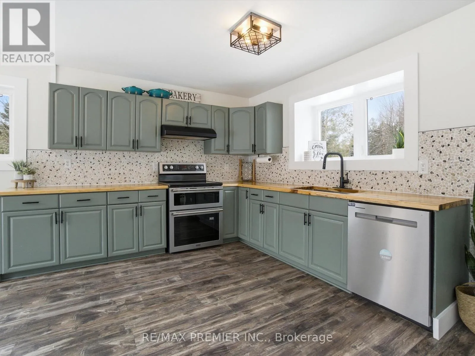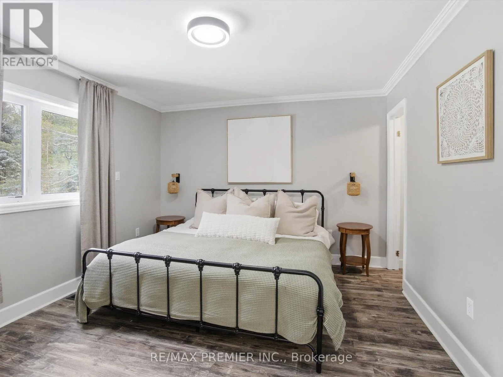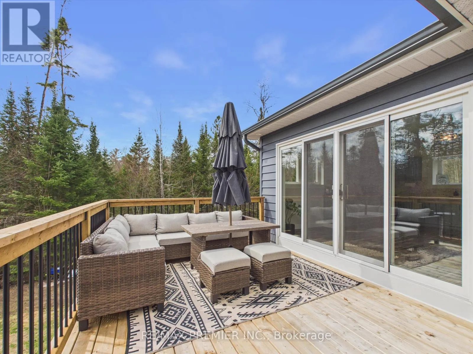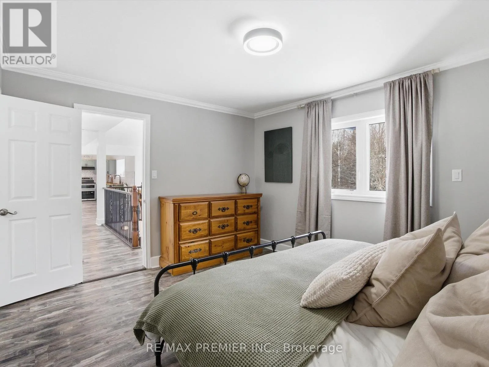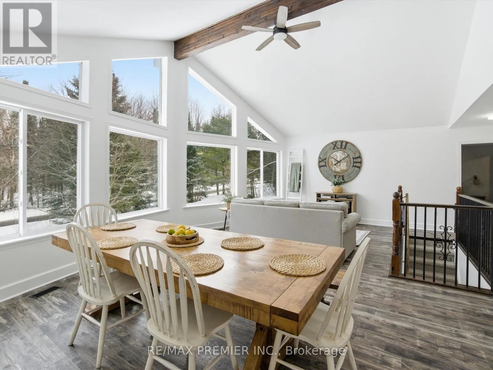 Hwy 117 & Springdale Park Rd Welcome to this beautifully updated 4-bedroom, 3-bathroom home offering 2340 sf of finished living space plus 300 sf of unfinished storage space. Tucked away on a quiet, tree-lined lot just steps (approximately 200 ft) from the Muskoka River, this property delivers the perfect mix of privacy, efficiency and location. This is the lifestyle buyers are looking for - nature, space, and convenience. Located in the highly sought-after Macaulay school district and only minutes to High Falls and with quick access to the highway, it's ideal for families, outdoor enthusiasts, or anyone wanting a peaceful Muskoka setting without sacrificing accessibility. Major updates have already been completed, including insulated siding, roof, soffit, fascia, eavestroughs, windows and doors (2023), a front deck (2024), brand new 11 x 20 ft back deck (2025), whole-home generator (2024), furnace (2024), and main floor vinyl flooring (2025) - maple flooring beneath vinyl flooring in living room, dining room and kitchen, making this a true move-in-ready home. Built on a solid ICF foundation for superior efficiency and durability, it's designed for year-round comfort, while the wood stove inside adds warmth and charm - perfect for cozy nights. Outside, enjoy your new decks surrounded by mature trees that provide privacy and a true Muskoka feel. With its family-friendly location, close proximity to the water without waterfront taxes, easy highway access, reliable systems already in place and strong appeal as a potential short-term rental or income property, this is a rare opportunity you won't want to miss. (id:27476)