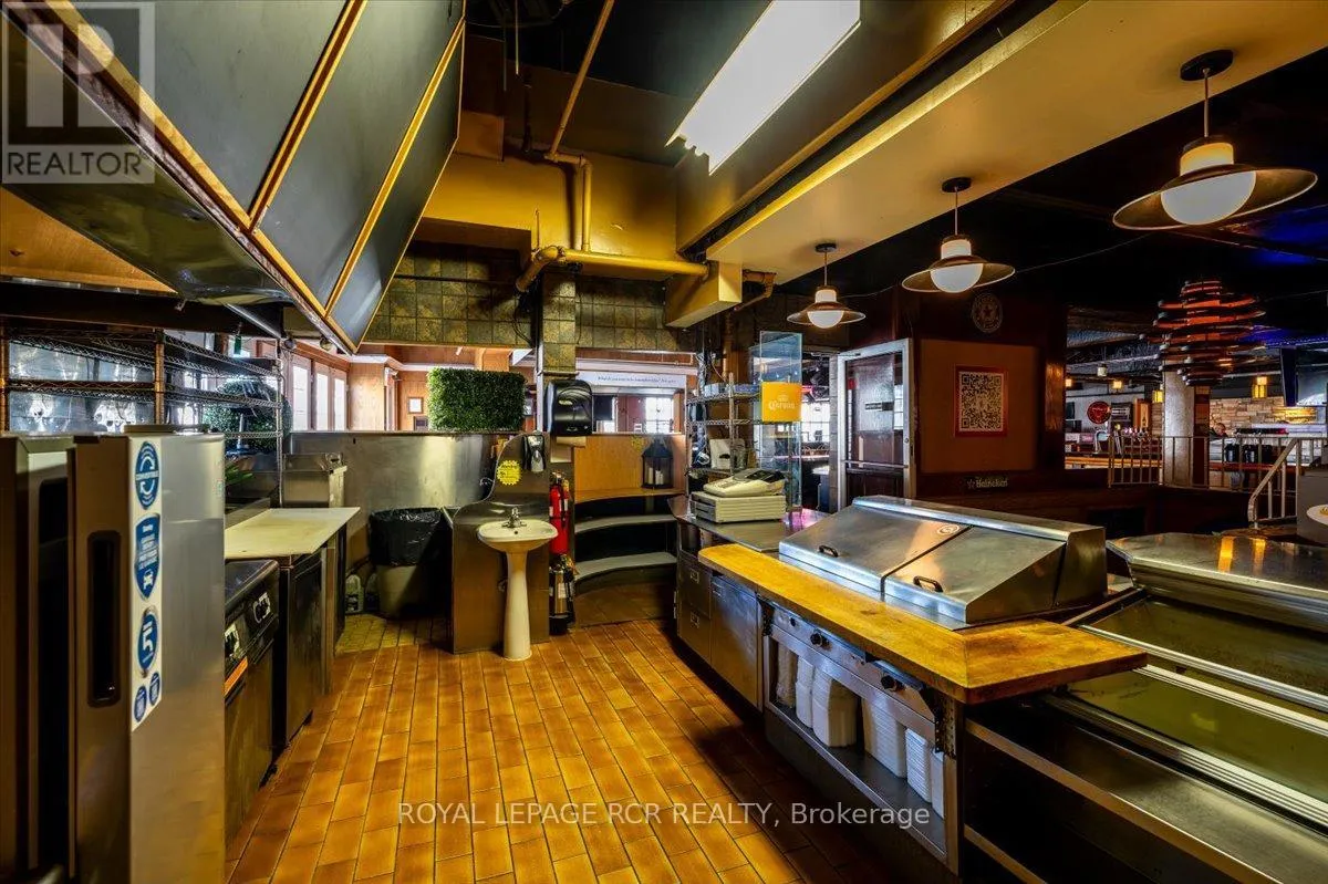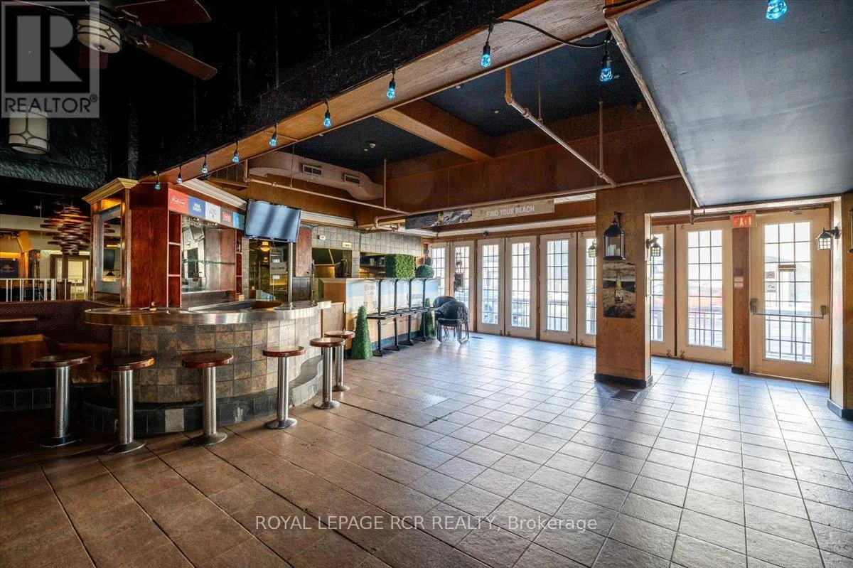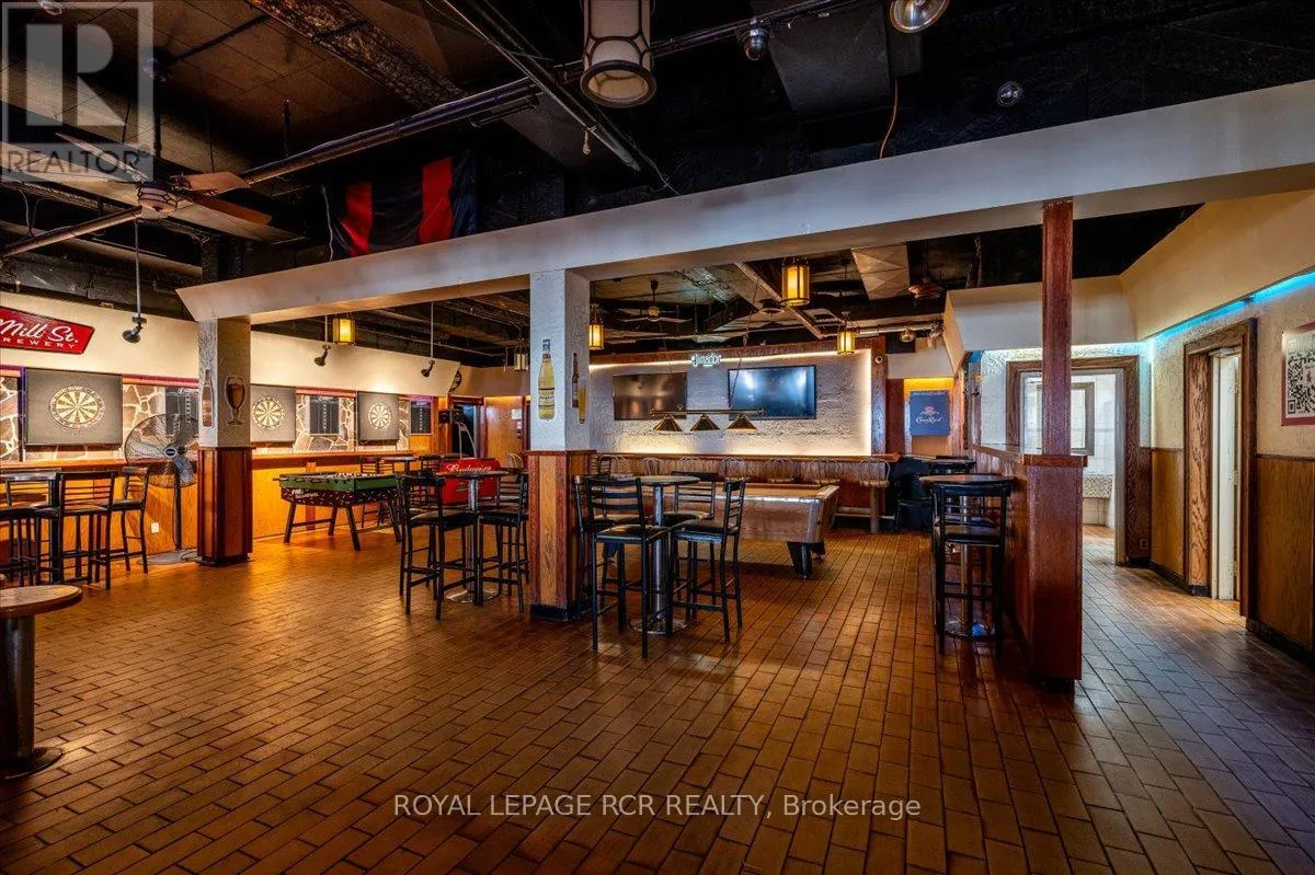 Cross Streets: Simcoe & Holland. ** Directions: SE corner at Simcoe St. The Landmark building of Bradford! Located at the "Four Corners" centre of downtown. Bring your business to this booming municipality! Tremendous signage opportunities. Close to the future redevelopment site for the new Town Hall complex. Free municipal parking across the road. BONUS large drive-in door to indoor heated loading / storage area (or covered future patio!). 8,517 sq.ft. main floor fitted out as restaurant / entertainment space with full kitchen + coolers + freezers + multiple washrooms. * 5,262 sq.ft. basement of finished space (bar, washrooms, kitchen, cooler, freezer, offices) is also available for a discounted rental rate. Flexible zoning. Permitted uses include: Fitness Centre; Medical Office; Place of Worship; Event Centre; Restaurant; Retail Store; Private School; Specialty Food Store; Offices; Supermarket +++. (id:27476)