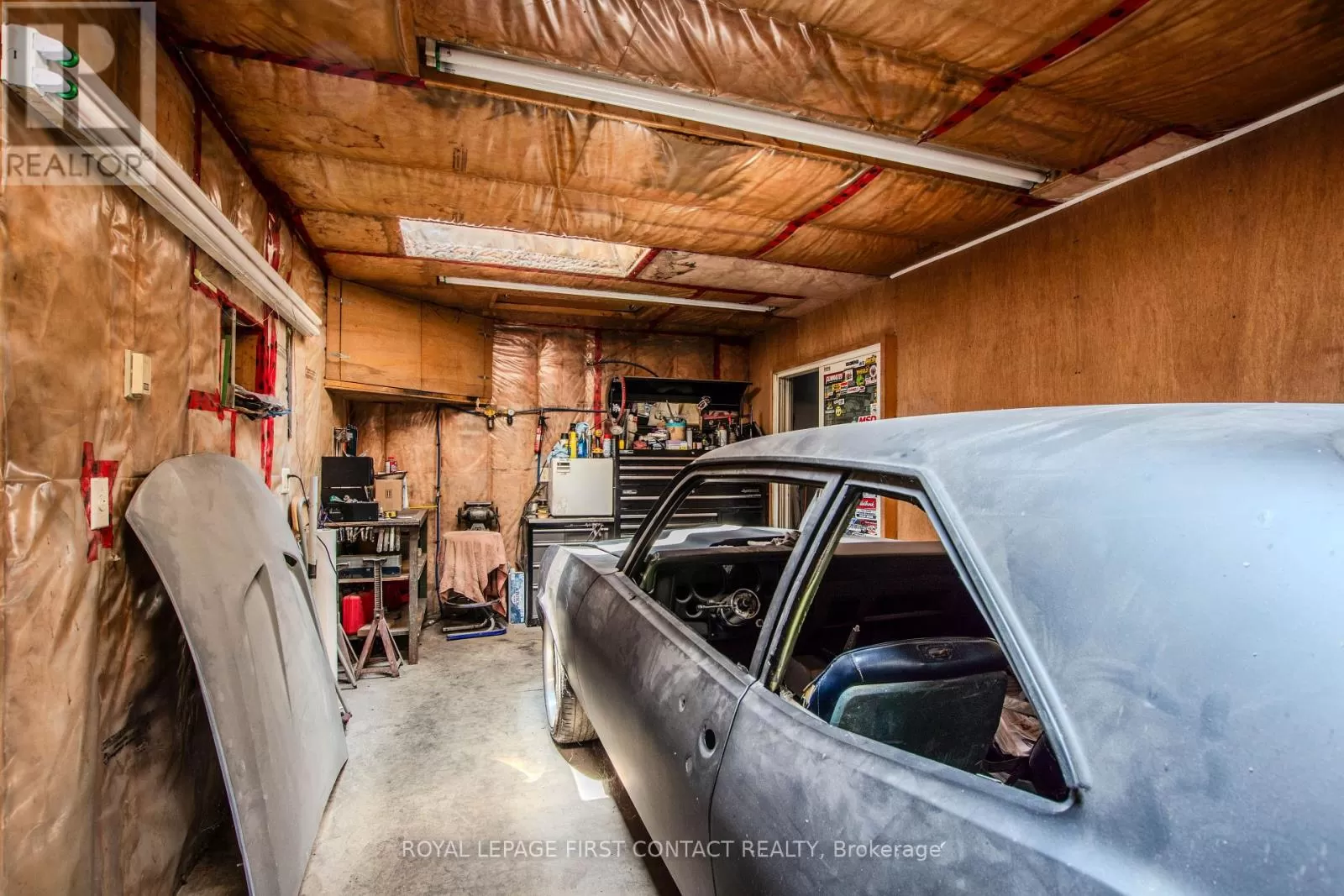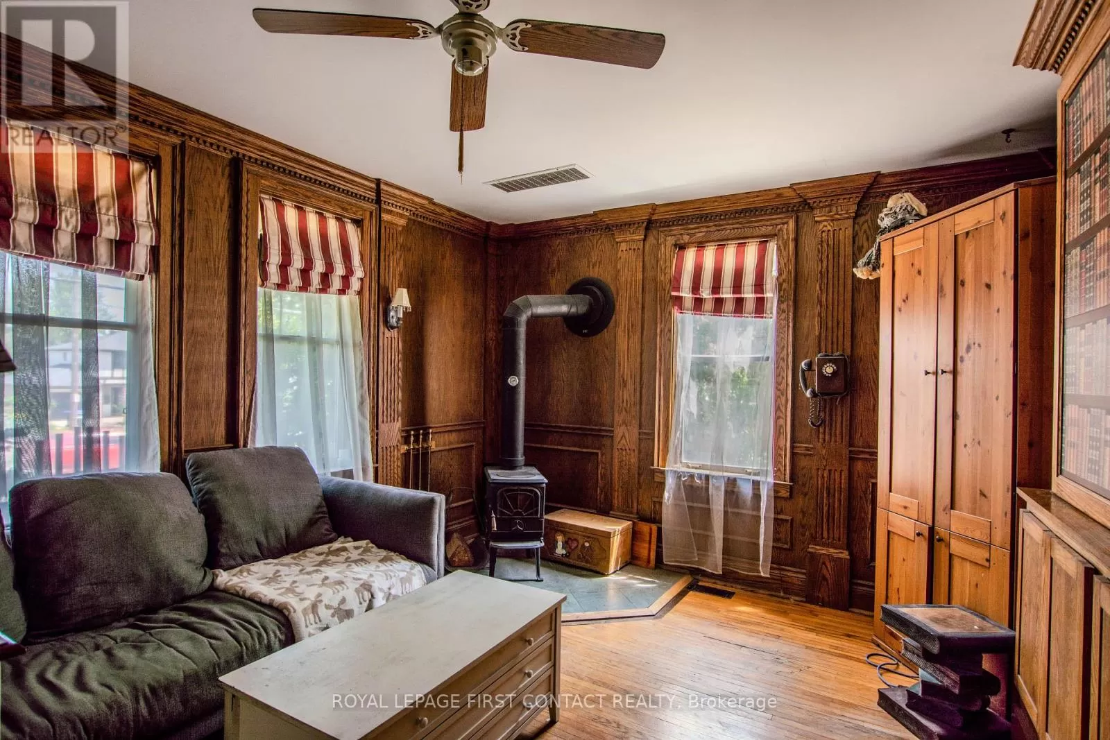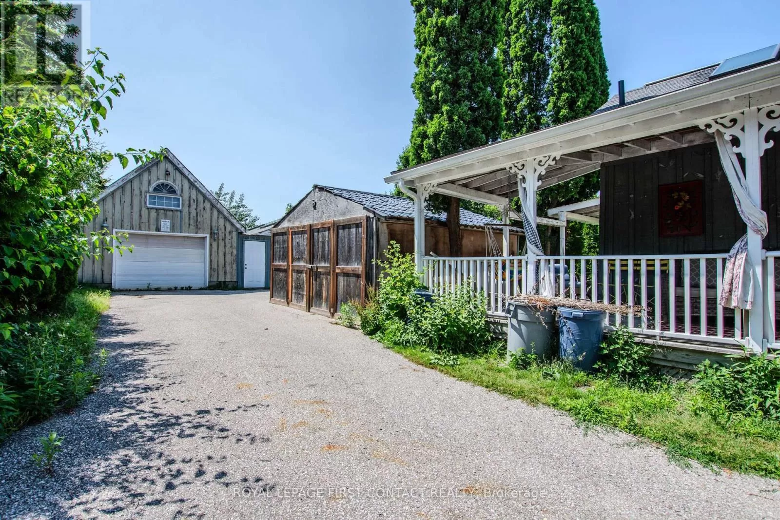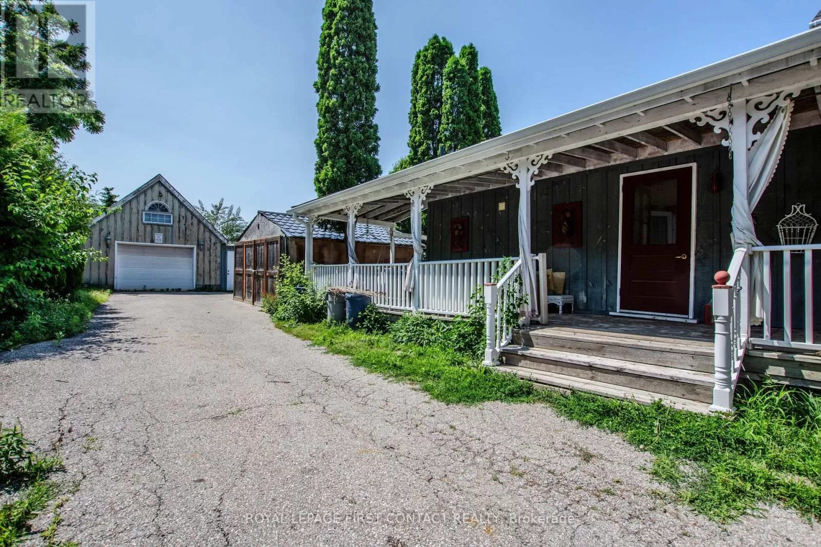 Cross Streets: Simcoe Rd.4 & Holland St. W. ** Directions: Simcoe Rd.4 - Holland St. W. Home and workshop! This two-story century home is ideally located close to schools, parks, and all the amenities Bradford has to offer. Set on a fenced lot with mature trees. A paved single driveway two garages, plus an additional outbuilding offering two extra parking spaces or storage. The south side garage is a single-car unit with an insulated loft, concrete floor, separate hydro panel perfect for a workshop or studio. The north side garage is a double-car, fully insulated and heated space featuring floor heating, a spray booth, hot water heater, (owner-built return air system). Ideal for hobbyists . Inside the home, you'll find hardwood floors and some distinctive trim. A large kitchen with skylights and walkouts to two porches - ideal for entertaining or enjoying your morning coffee. Main floor 3-piece bath with skylight and walk-in shower. The beautiful den boast ornate wood paneling, built-in shelving, and a cozy woodstove . Spacious upper level primary bedroom with hardwood flooring. Two additional bedrooms, both with hardwood-one with a walk-in and skylight. 3-piece upper bathroom with tub and skylight. Additional features include a garden shed and multiple porch spaces perfect for relaxing or gathering with family and friends. This one-of-a-kind property offers a rare combination of historic charm and man cave bliss. Ready and waiting for your ideas, TLC and upgrades. Imagine the possibilities here for your family. (id:27476)