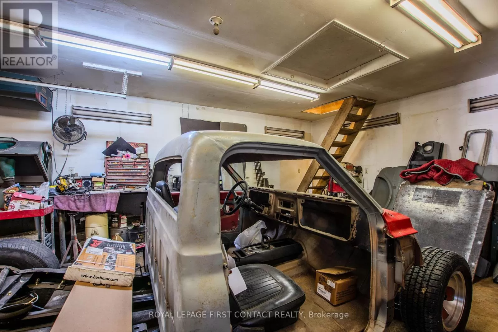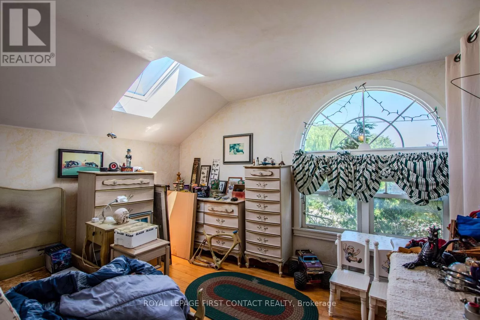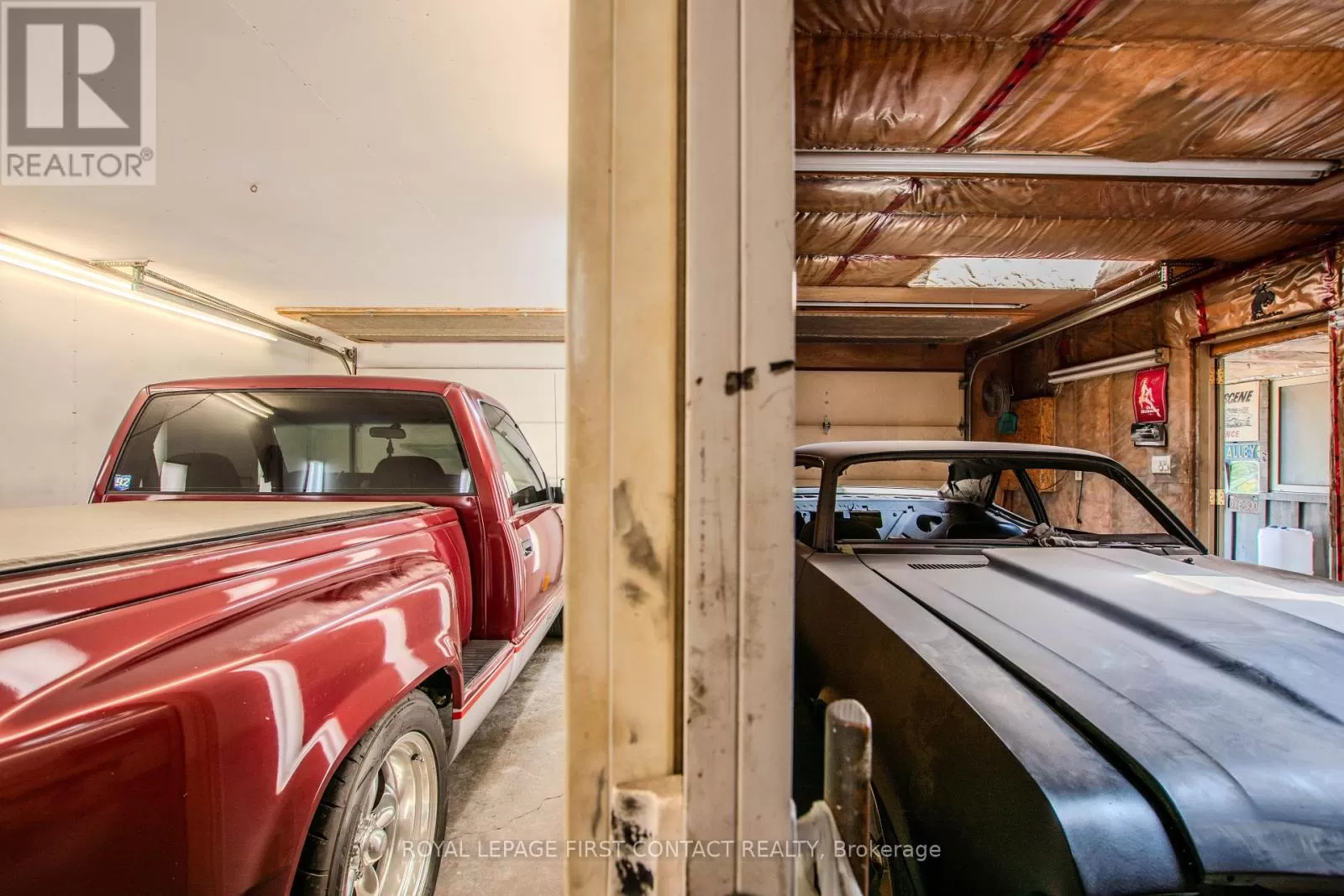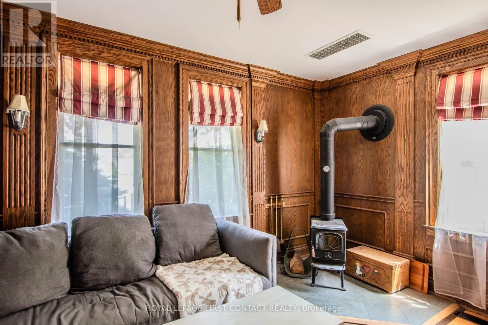 Cross Streets: Simcoe Rd.4 & Holland St. W. ** Directions: Simcoe Rd.4 - Holland St. W. Home and workshop! This two-story century home is ideally located close to schools, parks, and all the amenities Bradford has to offer. Set on a fenced lot with mature trees. A paved single driveway two garages, plus an additional outbuilding offering two extra parking spaces or storage. The south side garage is a single-car unit with an insulated loft, concrete floor, separate hydro panel perfect for a workshop or studio. The north side garage is a double-car, fully insulated and heated space featuring floor heating, a spray booth, hot water heater, (owner-built return air system). Ideal for hobbyists . Inside the home, you'll find hardwood floors and some distinctive trim. A large kitchen with skylights and walkouts to two porches - ideal for entertaining or enjoying your morning coffee. Main floor 3-piece bath with skylight and walk-in shower. The beautiful den boast ornate wood paneling, built-in shelving, and a cozy woodstove . Spacious upper level primary bedroom with hardwood flooring. Two additional bedrooms, both with hardwood-one with a walk-in and skylight. 3-piece upper bathroom with tub and skylight. Additional features include a garden shed and multiple porch spaces perfect for relaxing or gathering with family and friends. This one-of-a-kind property offers a rare combination of historic charm and man cave bliss. Ready and waiting for your ideas, TLC and upgrades. Imagine the possibilities here for your family. (id:27476)