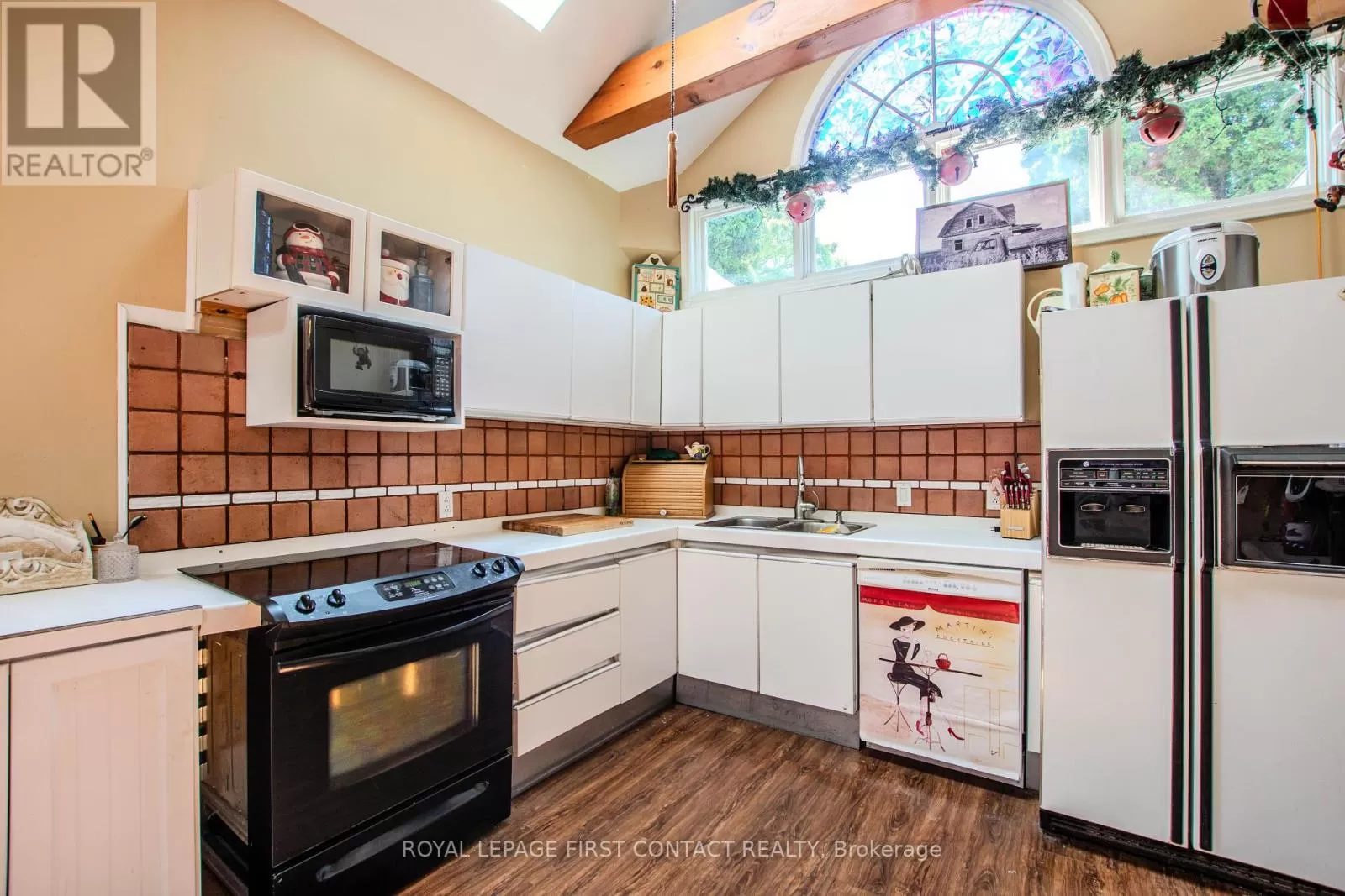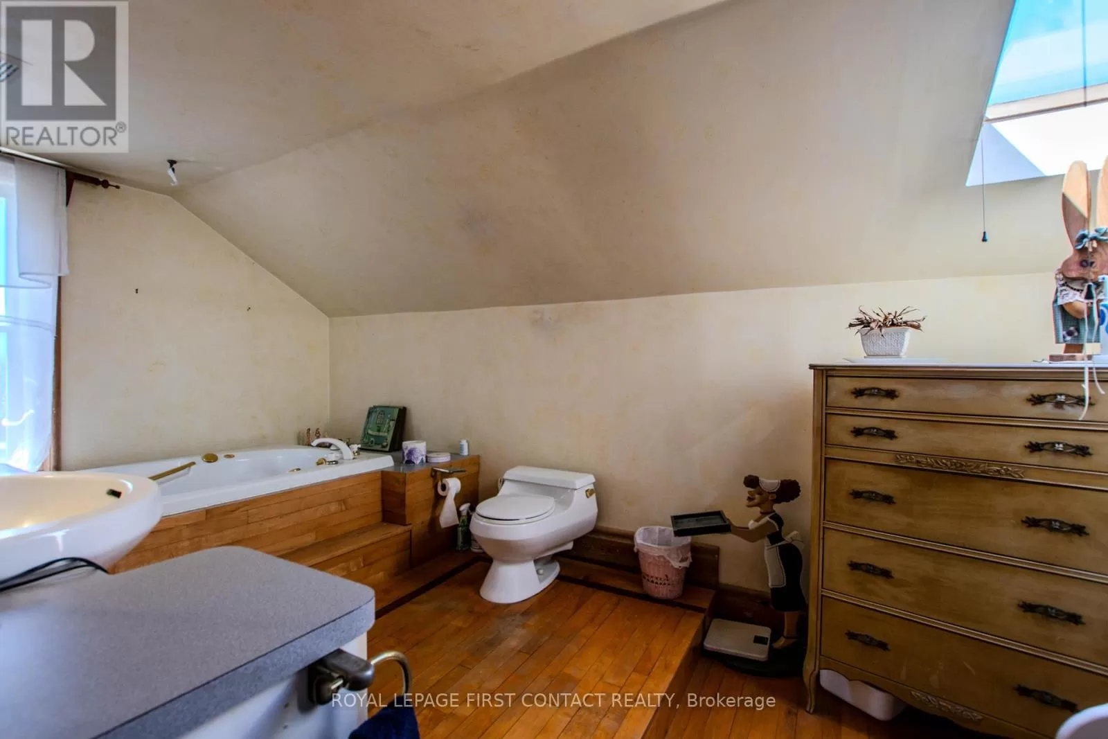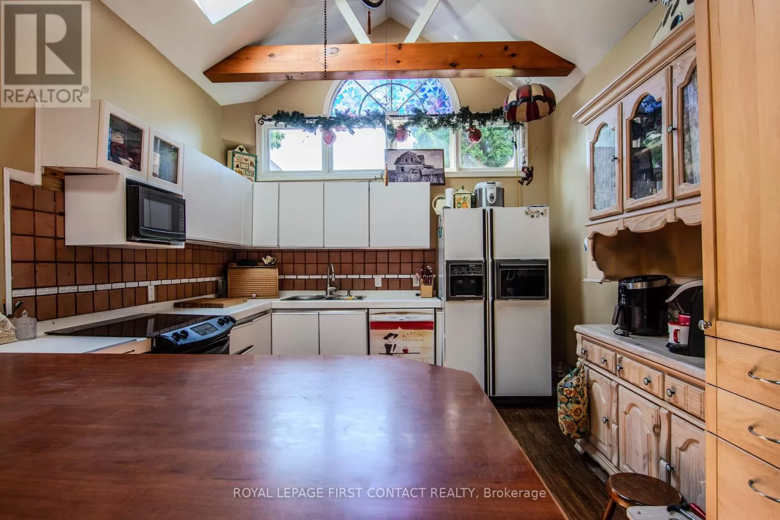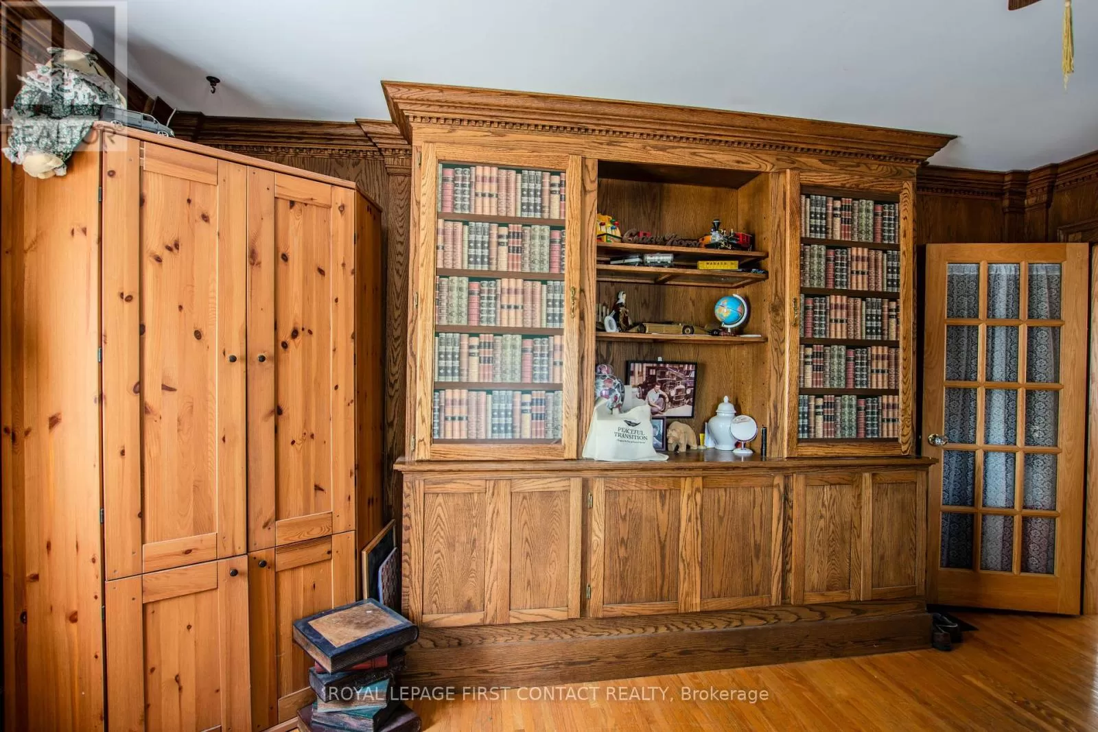 Cross Streets: Simcoe Rd.4 & Holland St. W. ** Directions: Simcoe Rd.4 - Holland St. W. Home and workshop! This two-story century home is ideally located close to schools, parks, and all the amenities Bradford has to offer. Set on a fenced lot with mature trees. A paved single driveway two garages, plus an additional outbuilding offering two extra parking spaces or storage. The south side garage is a single-car unit with an insulated loft, concrete floor, separate hydro panel perfect for a workshop or studio. The north side garage is a double-car, fully insulated and heated space featuring floor heating, a spray booth, hot water heater, (owner-built return air system). Ideal for hobbyists . Inside the home, you'll find hardwood floors and some distinctive trim. A large kitchen with skylights and walkouts to two porches - ideal for entertaining or enjoying your morning coffee. Main floor 3-piece bath with skylight and walk-in shower. The beautiful den boast ornate wood paneling, built-in shelving, and a cozy woodstove . Spacious upper level primary bedroom with hardwood flooring. Two additional bedrooms, both with hardwood-one with a walk-in and skylight. 3-piece upper bathroom with tub and skylight. Additional features include a garden shed and multiple porch spaces perfect for relaxing or gathering with family and friends. This one-of-a-kind property offers a rare combination of historic charm and man cave bliss. Ready and waiting for your ideas, TLC and upgrades. Imagine the possibilities here for your family. (id:27476)