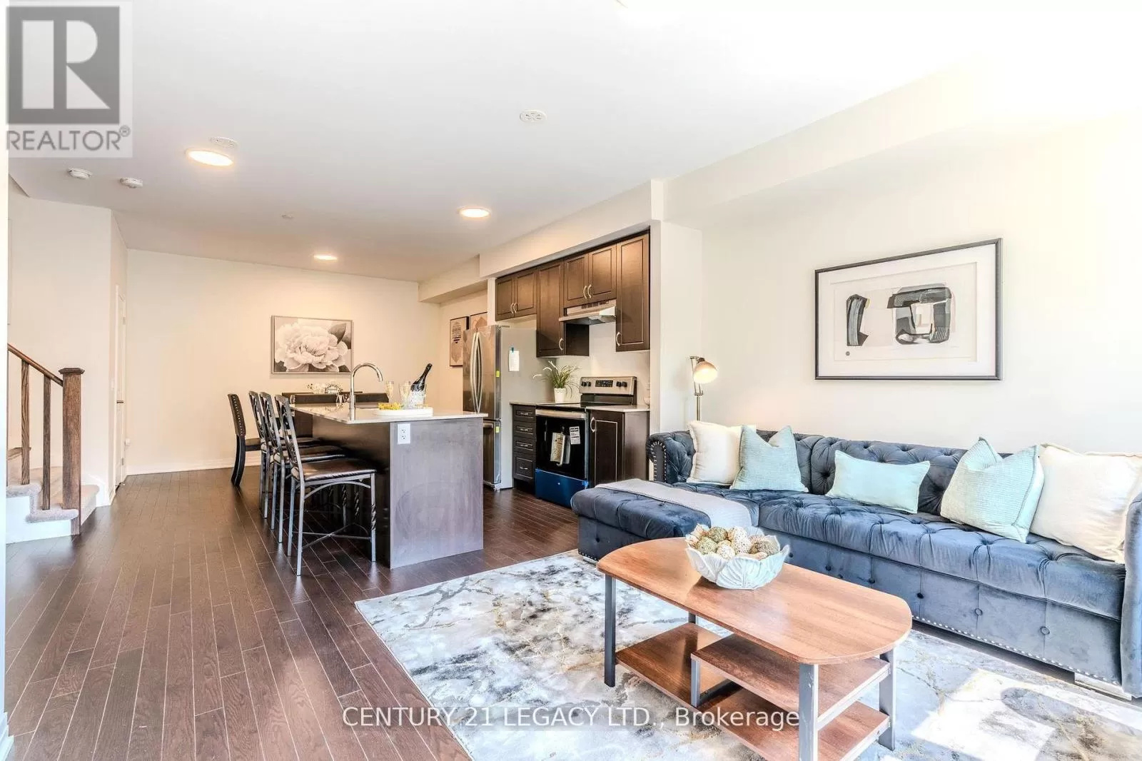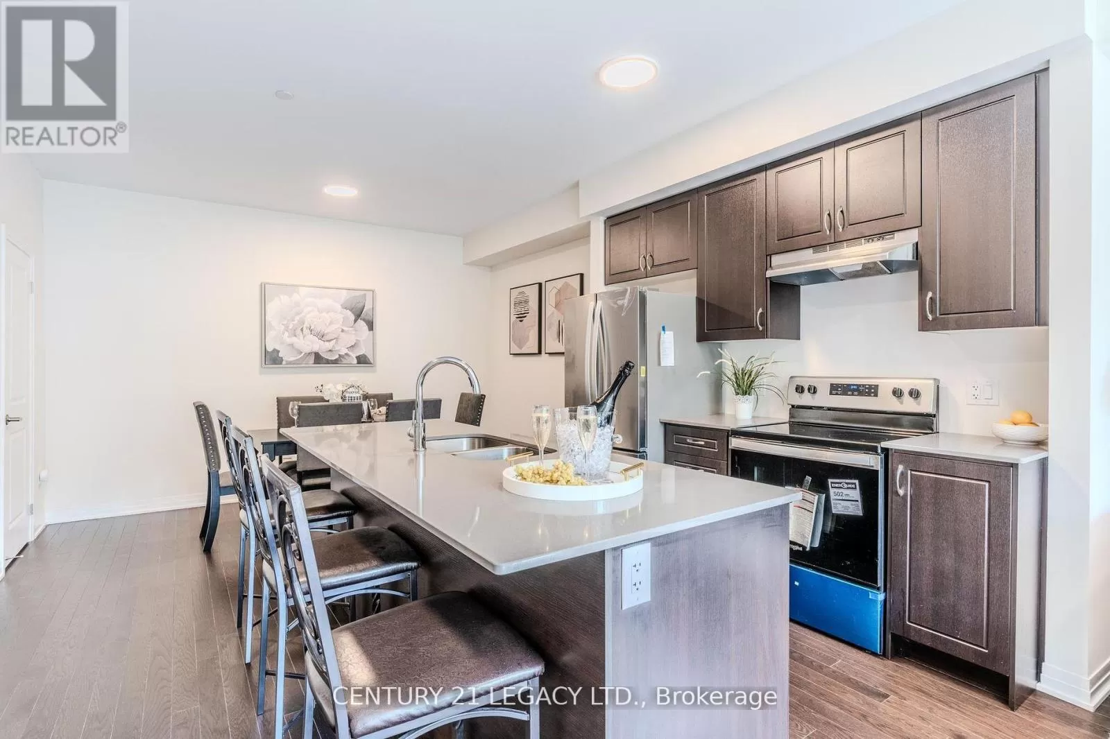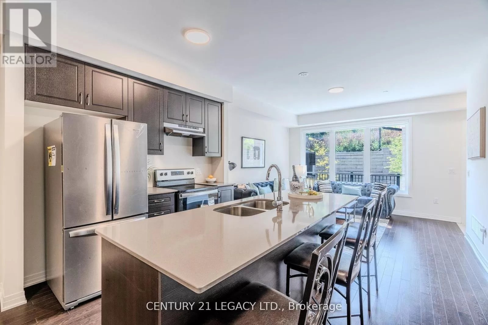 Cross Streets: Holland St. E. & Dissette St. ** Directions: Refer to google maps. Experience modern urban living in this nearly new 3-storey back-to-back condo townhome built by Cachet Homes. Offering 1,975 sq ft of thoughtfully designed space, this home features 4 bedrooms and 3 bathrooms with premium finishes throughout. The main floor impresses with smooth 9-foot ceilings and beautiful 3 engineered hardwood flooring, complemented by a sleek kitchen equipped with extended-height cabinets and quartz countertops. Upstairs, the spacious primary suite includes a walk-in closet and a 4-piece ensuite, alongside a second bedroom and convenient laundry area. The top floor offers two additional bedrooms, one with a private balcony, plus a full bathroom. Enjoy added privacy with no neighbors in the front, and entertain family and friends on the expansive private rooftop terrace ideal for BBQs and outdoor gatherings. Benefit from two underground parking spots, a large storage locker. Located steps from GO Station, local shops, dining, schools, and with quick access to Highways 400 and 404, this townhome perfectly blends style, comfort, and convenience. (id:27476)