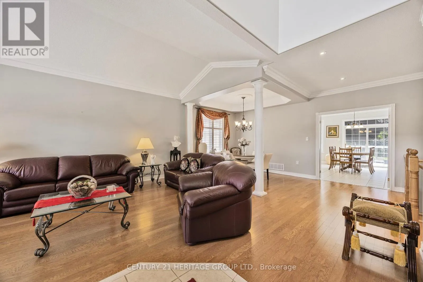 Metcalfe/Aishford Welcome to this Immaculate and Stunning 3+2 Bedroom, 3 full Bathroom Bungalow with a 2-Car Garage featuring Inside Entry with a Loft Storage Space to this gorgeous home. Upgraded W/ A Grand 17-foot Entryway, California Shutters, California Knockdown Ceilings, Rounded Corners, Pot Lights, Plaster Crown Moulding, 9'Ceilings, & Hardwood Floors On Main. The Kitchen Features Granite Counters W/Backsplash, Breakfast Bar, Stainless Steel Appliances & A Walkout To The Large Upper Deck. Primary Bedroom Features Hardwood Floors and Large enough for a King Sized Bed with a 4 Pc Ensuite complete with a Soaker Tub and Separate Shower & a Walk-in Closet. The Dining Room has a Coffered Ceiling and Pillars to separate the space from the Living Room with Vaulted Ceilings. Main Floor Laundry with access to the Garage. The Bright Walk-Out Basement is an Entertainers Dream with a Large Open 800+ Sqft Great Room W/ a Fireplace & Wet Bar. The Basement Features a Bedroom with a Semi-Ensuite Bath, a Den and a Cold Room. The Basement is very bright with windows and a Full Walk-Out to another Large Deck. (id:27476)