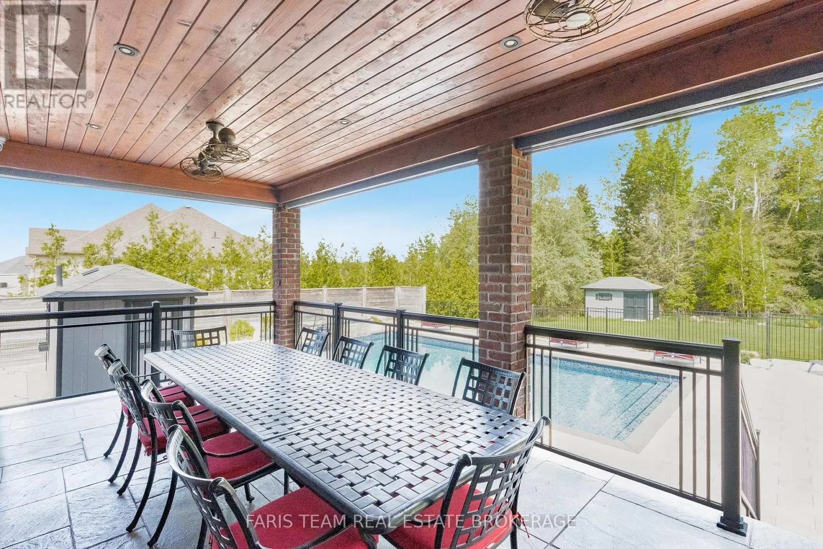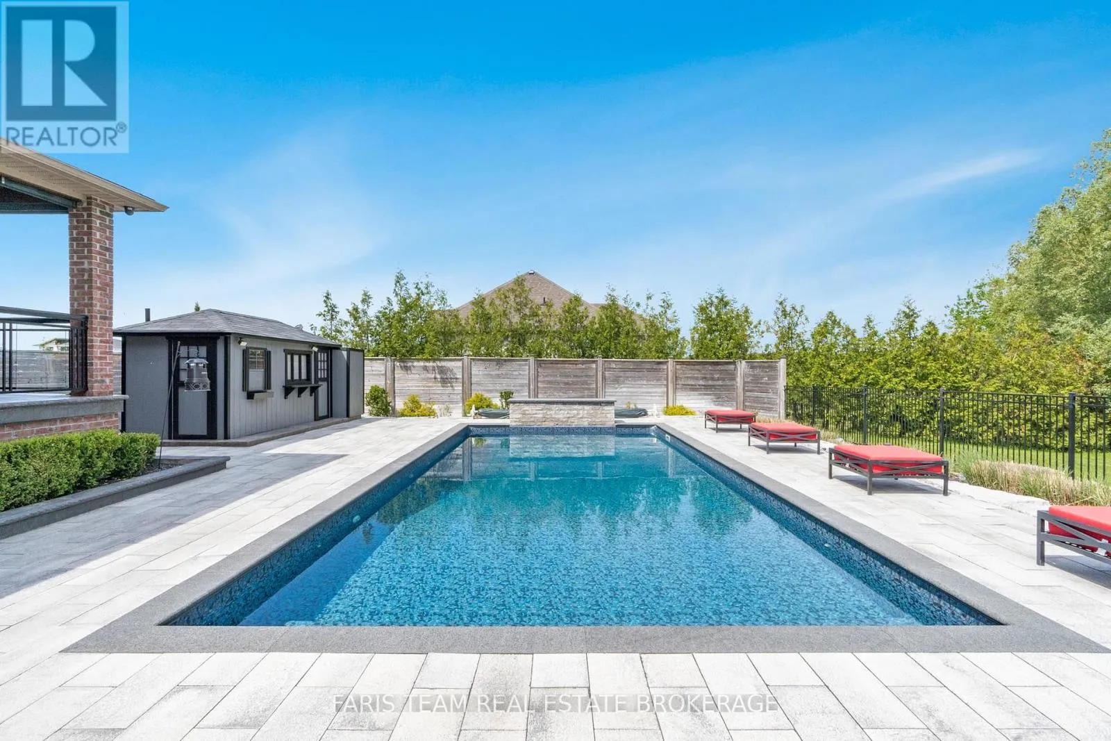 Line 13/Dale Cres Top 5 Reasons You Will Love This Home: 1) Executive, custom-built bungaloft in an exclusive estate neighbourhood, perfectly positioned and backing onto greenspace for ultimate privacy 2) Exquisite attention to detail and design with coffered ceilings, wainscoting throughout, and high-end finishes at every corner including a Sonos speaker system running throughout the home including the exterior as well 3) Extensive landscaping featuring a sparkling inground saltwater pool with a new liner, a convenient outdoor bathroom, a covered concrete porch, an inground sprinkler system, an e collar dog fence, and an abundance of tranquility for outdoor relaxation or entertaining 4) Opulent primary suite boasting two oversized closets and a spa-like ensuite, thoughtfully designed for indulgent relaxation 5) Loft showcases a media room, while the impressive seven-car garage features a lift, offering endless possibilities for storage, entertainment, or a dream workspace. 4,578 sq.ft. plus an unfinished basement. Age 11. (id:27476)