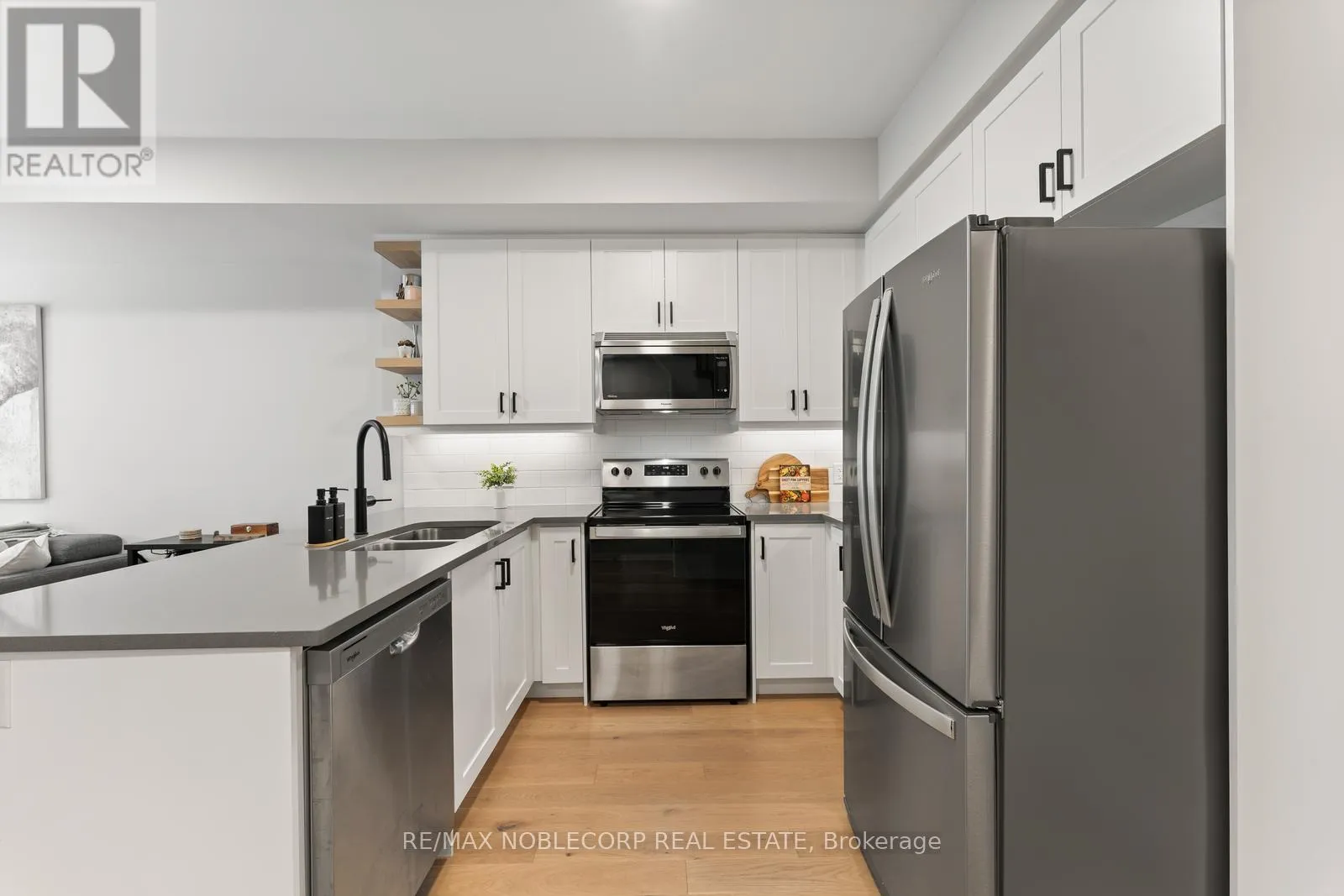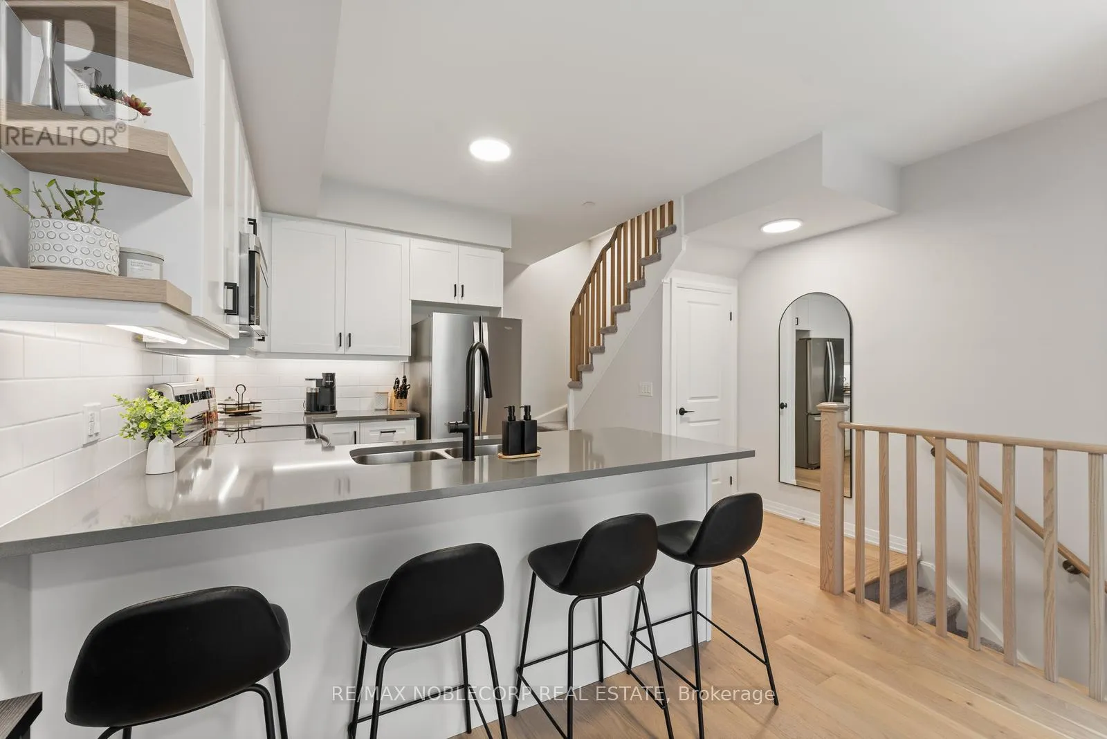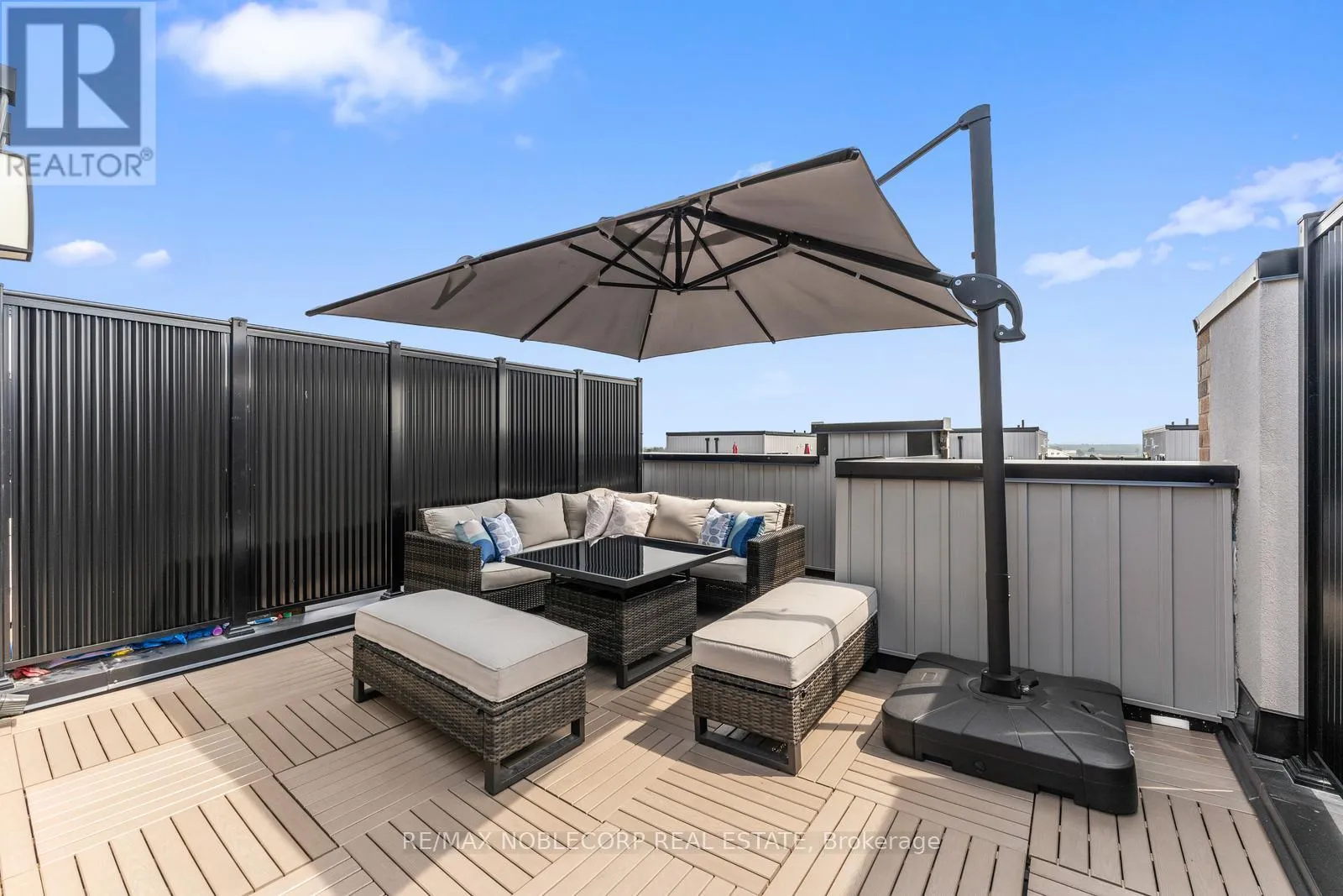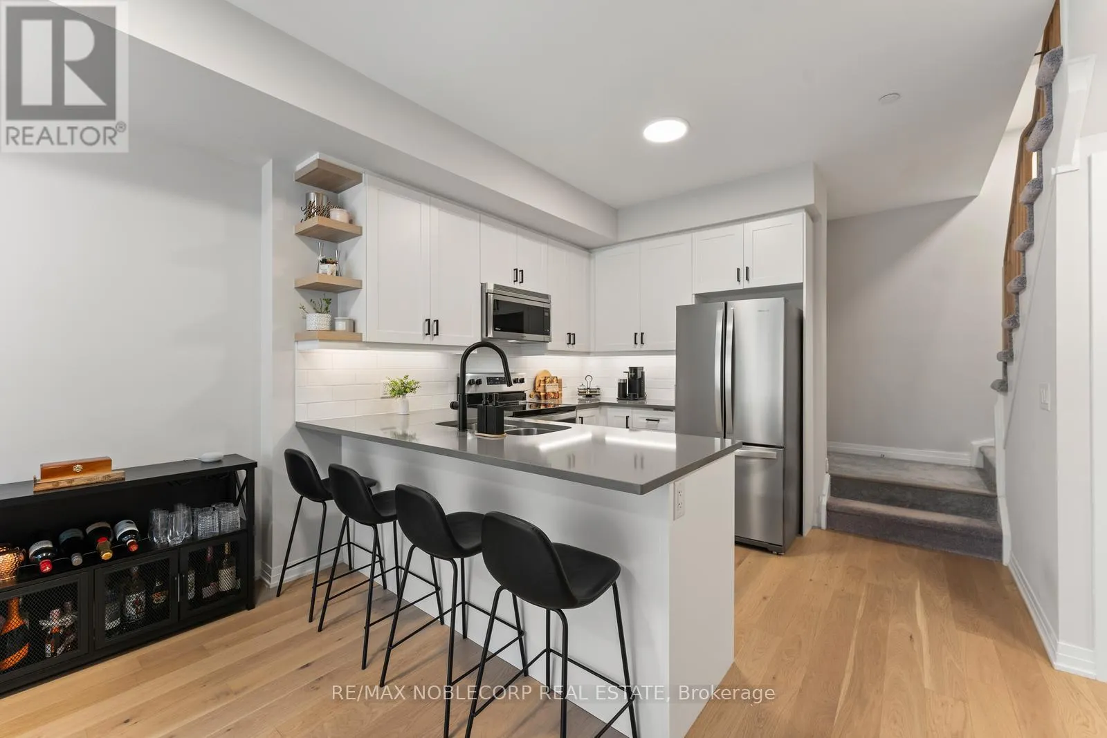 HOLLAND STREET E AND DISETTE STREET Located in the brand new sought after Cachet Bradford Towns Community, this upgraded 3 bedroom,3 level townhome is perfect for young families. Enjoy a bright open concept layout with 9'Ceilings, premium oak flooring and modern accents. The modern white kitchen features a custom quartz countertop and custom backsplash with contemporary wood corner shelves. The wood slat feature wall is a showstopper, giving it a modern and cozy feeling. The bedrooms are oversized with an impressive amount of space. The primary bedroom is one whole floor with a his and hers closet, 4 piece ensuite and an incredible balcony. The terrace boasts over 422 sq ft, making it ideal for patio furniture and a quiet getaway with a gas bbq hook up. This is an ideal area to entertain and enjoy the outdoors. This beautiful townhome is minutes from the GO Train, parks, schools, shopping, and dining, offering the perfect blend of city access and suburban living. (id:27476)