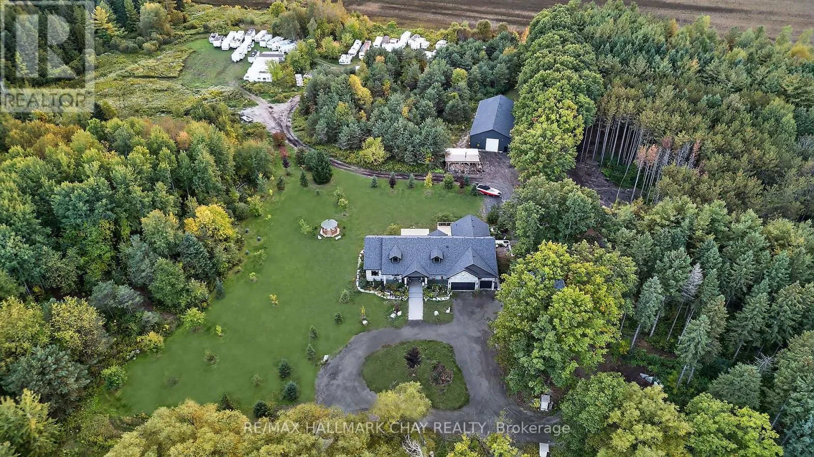 County Road 27 / Line 13 One Of A Kind, Remarkable Home & Property Nestled On 53.8 Acres Of Private Land, Currently Generating Over $6,000 Per Month In Additional Revenue With Room To Increase. Full Workshop With 3,400 SqFt of Space, Separate Heating & Cooling System. 2x Separate Driveways Each With Gated Access, Leads To Main Home & Back Workshops + Land. 2x Detached Garages With 528 SqFt, Separate Heating, Plus Bonus 2nd Level 2,600 SqFt Apartment With Full Kitchen & Separate Laundry. Additional Basement Apartment With 2 Bedrooms, Full Kitchen, Separate Laundry & Entrance. Plus Rough-In Available For Upper Level Additional Apartment Currently Family & Dining Room! Total Potential for 4 Separate Living Spaces, Perfect For Multi-Generational Families Looking To Live Together Or To Generate Additional Income. Filled With Pride Of Ownership Main Home Features Over 5,800+ SqFt of Total Living Space. Grand Entrance Leads To Open Concept Main Area With Vaulted Ceilings, Ceramic Tile Floors. Chef's Kitchen With Huge Centre Island, Stainless Steel High-End Appliances, Pot Filler, Quartz Counters, & Lots Of Storage Space. Combined Living & Dining Rooms With Walk-Out To Deck, & Beautiful Fireplace Accent. 3 Spacious Bedrooms Each With Closet Space & Hardwood Floors Throughout. Primary Bedroom Features 4 Piece Ensuite, Walk-In Closet, & Second Closet! Lower Level Rec Room With Walk-Out To Backyard Patio, & Covered Hot Tub! Tons Of Green Space To Enjoy Evening Fires Or Ride ATV's Around The Forest! Full Back-Up Generac Generator To Home. 400AMP Panel With 200AMP For The Shop, & 200AMP For The House. Each Garage With Separate 100AMP Panel. Roof (2019). New Deck (2021). Spray Foam Insulation & Central Vac In Both Home & Shop. All Windows & Doors (2019). Enjoy Rural Living At It's Finest Surrounded By Forest, Mature Fruit Trees Including Plum, Apple, & Pear Trees, Plus Vegetable Gardens, & A Chicken Coop! Nestled In Rural Bradford Close To Highway 400, Groceries, Shopping, Rec Centres, Schools, & More! (id:27476)
