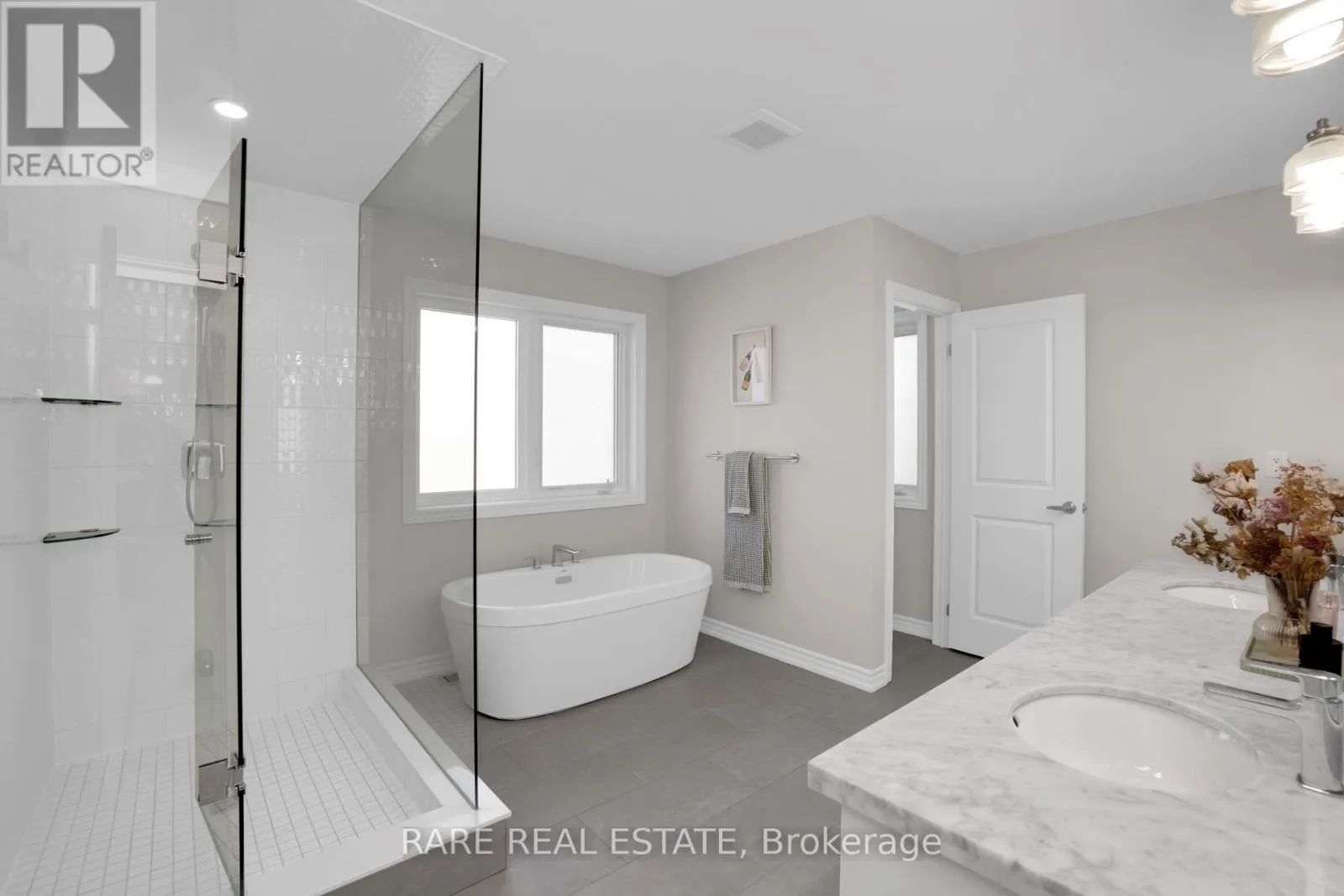 Cross Streets: Professor Day & Line 8. ** Directions: West of Professor Day & South of Line 8. Tucked away on a family-friendly, quiet crescent, this beautifully designed 2.5-storey residence offers the perfect balance of luxury, comfort, and functionality. Boasting over 4,000 sq/ft of meticulously finished living space, this home features 4 spacious bedrooms, 4.5 bathrooms, and an expansive third-storey loft ideal for growing families or those who love to entertain. This home is a rare find in a sought-after neighbourhood.Situated on a premium, irregular lot, the home makes an unforgettable first impression with its elegant curb appeal, professionally landscaped exterior, and a spacious two-car garage complete with a convenient storage loft.Step inside to discover an open-concept layout filled with natural light, soaring ceilings, and upgraded finishes throughout. White Oak hardwood flooring and 12x24 tile set the tone for timeless elegance. The chef-inspired kitchen is the heart of the home, featuring custom cabinetry, quartz countertops and backsplash, premium stainless steel appliances, an extended island perfect for entertaining, and a walk-through servery connecting seamlessly to the dining room.A dedicated den on the main floor offers the perfect space for a private home office, library, or children's playroom.Upstairs, you'll find four generously sized bedrooms, including a stunning primary suite with a custom walk-in closet and a spa-like ensuite bath. The standout feature of the home is the rare third-floor loft a versatile, sunlit retreat with nearly 600 sq/ft of space and a private balcony. Whether used as a home office, studio, or relaxing lounge, its a unique addition that adds both functionality and charm.The fully finished basement expands your living options even further, complete with a full bathroom and endless possibilities from a home theatre or gym to an in-law or guest suite. This home offers a true sense of community and calm, yet still close to all amenities, this home is the perfect hidden escape from the city. (id:27476)