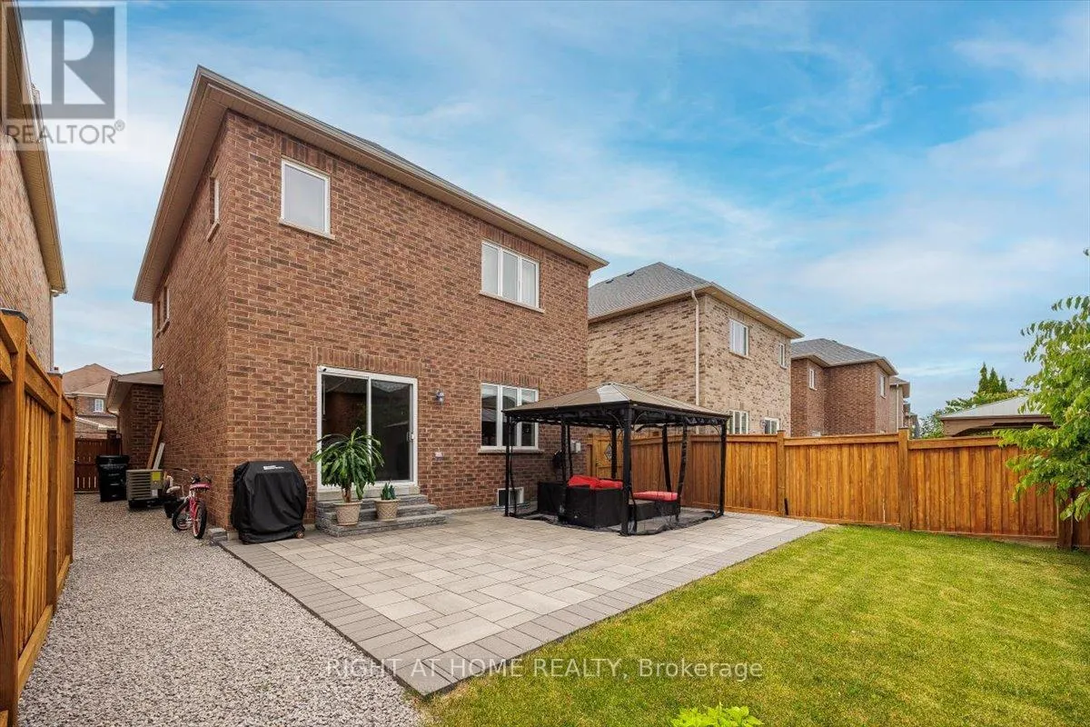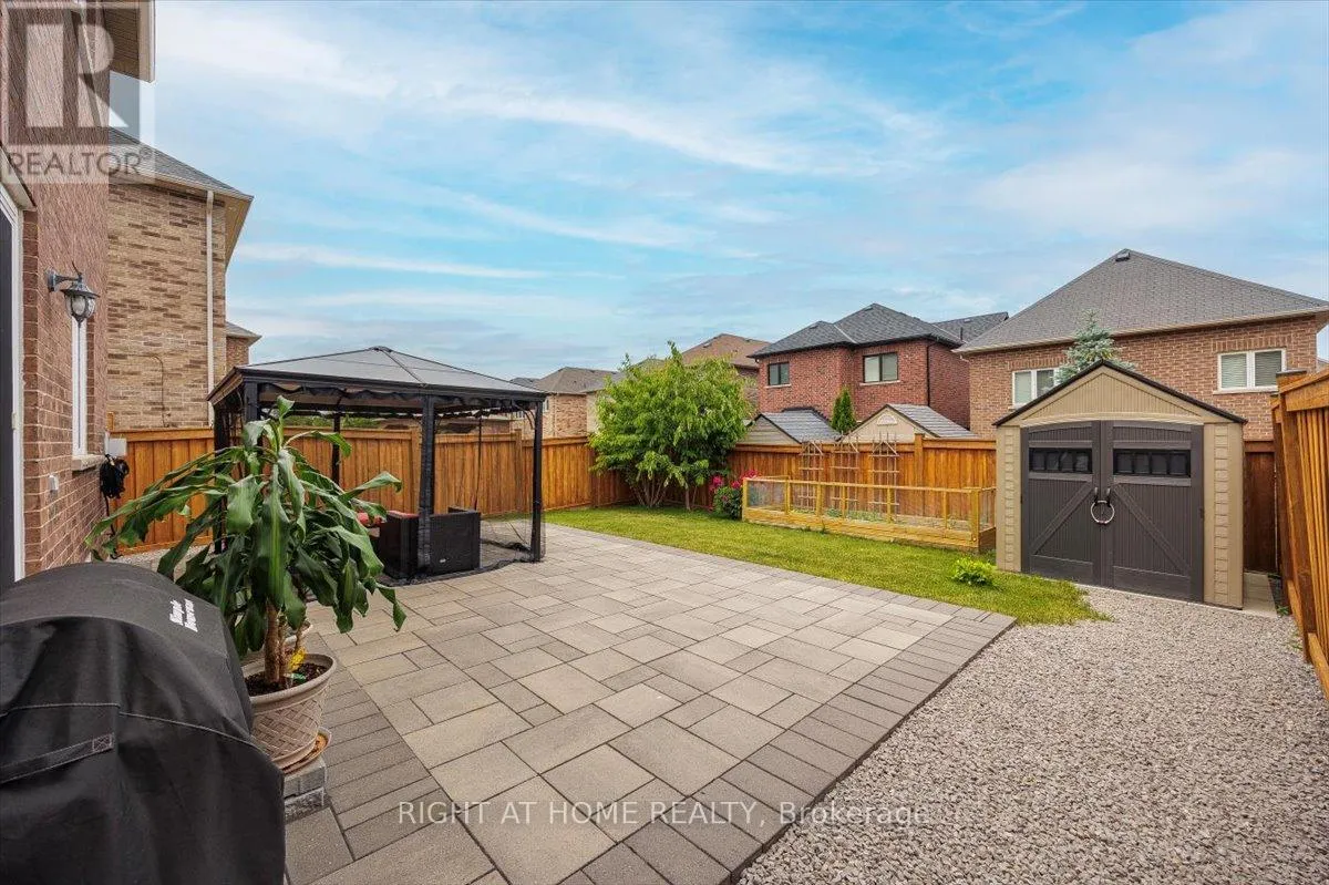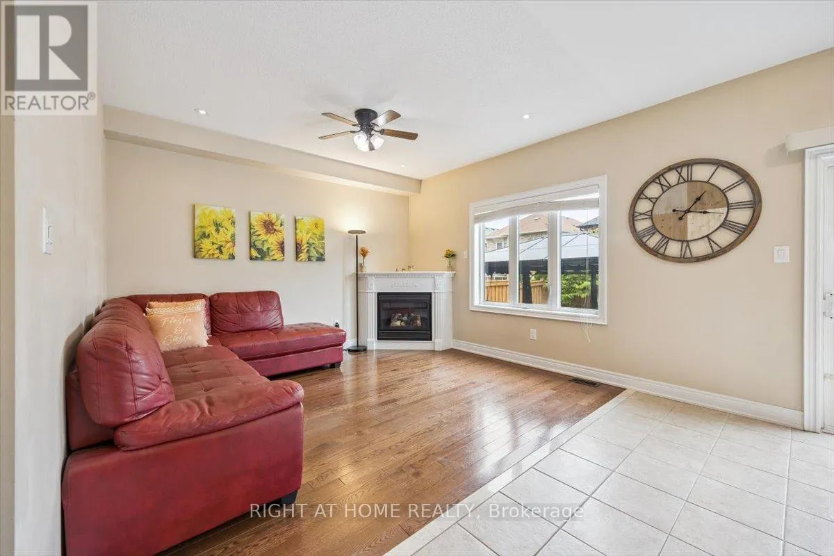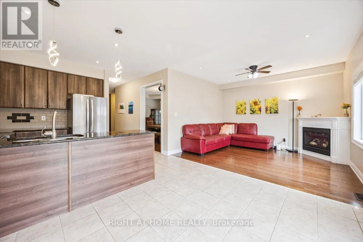 8th Line & Barrie St This beautifully upgraded home welcomes you with a double door entry leading into a spacious foyer featuring a large closet and a decorative niche. The main level boasts 9-foot ceilings and elegant hardwood flooring throughout, complemented by a stained oak staircase that blends seamlessly with the flooring. The open-concept layout includes a stylish kitchen with extended upgraded cabinetry, granite countertops, and stainless steel appliances, flowing effortlessly into a warm and inviting family room with a corner gas fireplace and a walk-out to the expansive backyard. Perfect for entertaining, the backyard is fully fenced and finished with interlocking stone, two side gates, and a unique custom storage area, ideal for family gatherings and BBQs. The living and dining areas are enhanced by coffered ceilings and recessed lighting, adding a touch of sophistication. A convenient main floor laundry room, professionally painted interiors, upgraded baseboards and door trims, and custom closets in three of the bedrooms further elevate the home's appeal. The driveway offers ample parking with no sidewalk interruption, and the finished basement provides additional living space and abundant storage. Every detail in this home has been thoughtfully upgraded to offer comfort, style, and functionality for modern family living. (id:27476)