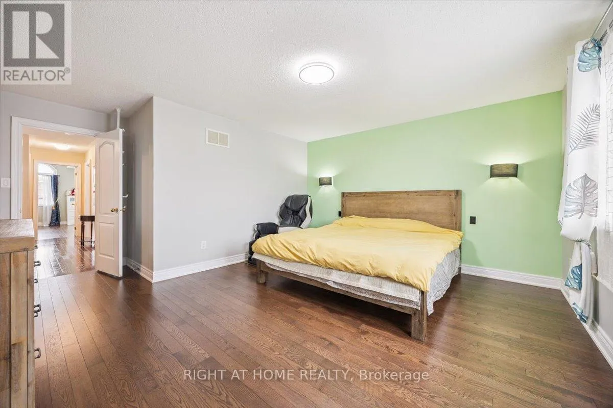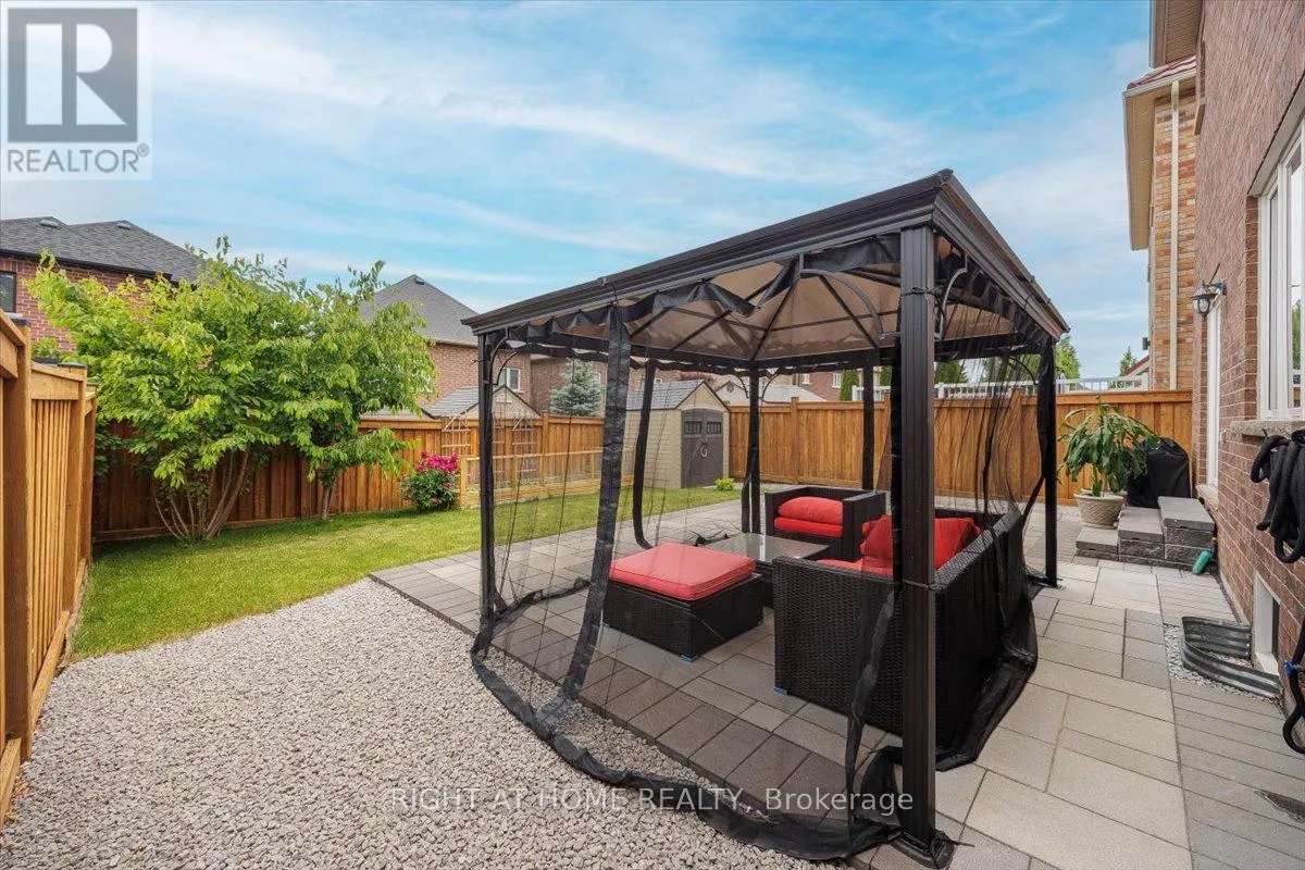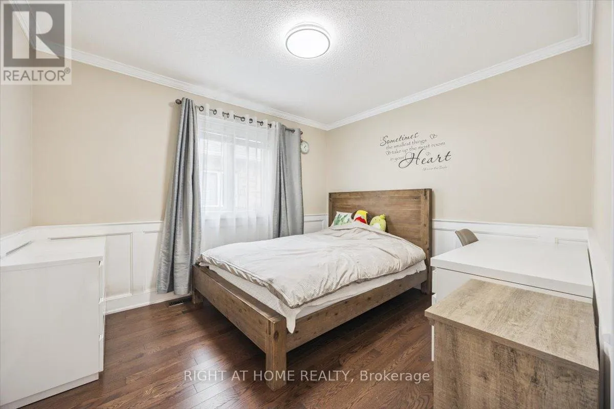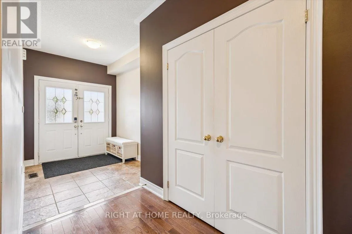 8th Line & Barrie St This beautifully upgraded home welcomes you with a double door entry leading into a spacious foyer featuring a large closet and a decorative niche. The main level boasts 9-foot ceilings and elegant hardwood flooring throughout, complemented by a stained oak staircase that blends seamlessly with the flooring. The open-concept layout includes a stylish kitchen with extended upgraded cabinetry, granite countertops, and stainless steel appliances, flowing effortlessly into a warm and inviting family room with a corner gas fireplace and a walk-out to the expansive backyard. Perfect for entertaining, the backyard is fully fenced and finished with interlocking stone, two side gates, and a unique custom storage area, ideal for family gatherings and BBQs. The living and dining areas are enhanced by coffered ceilings and recessed lighting, adding a touch of sophistication. A convenient main floor laundry room, professionally painted interiors, upgraded baseboards and door trims, and custom closets in three of the bedrooms further elevate the home's appeal. The driveway offers ample parking with no sidewalk interruption, and the finished basement provides additional living space and abundant storage. Every detail in this home has been thoughtfully upgraded to offer comfort, style, and functionality for modern family living. (id:27476)