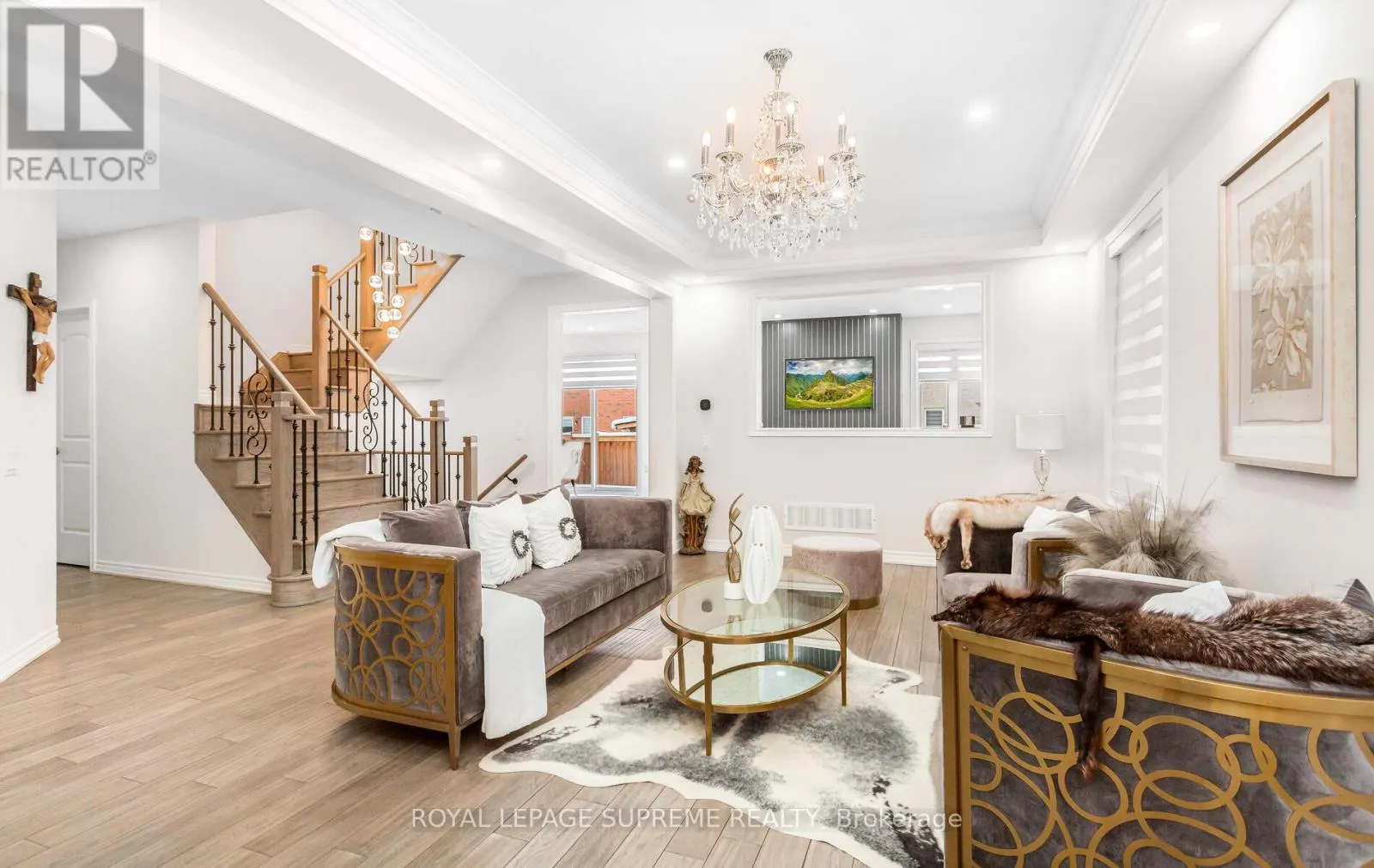 Selby Cres & 8th Line From the moment you step through the striking, statement front door, it is immediately evident that this home has undergone an extensive, design-driven transformation with no detail overlooked. 95 Selby Crescent reflects a level of finish and craftsmanship that speaks to a substantial commitment to quality, evident in the new hardwood floors, smooth ceilings, and the sophisticated blend of custom chandeliers and pot lights throughout. A dramatic, custom-designed fireplace feature wall anchors the main living space, while upgraded staircase railings and spindles add architectural depth and refinement. The exterior is equally polished with an interlocked driveway, enhanced front porch, and exterior pot lighting creating exceptional curb appeal. The garage is finished to an impressive standard with epoxy flooring and custom cabinetry. Ideally located in one of the neighbourhood's most desirable pockets, close to top schools, parks, transit, and everyday conveniences, this home delivers a rare turnkey offering where elevated design, craftsmanship, and location come together seamlessly. (id:27476)