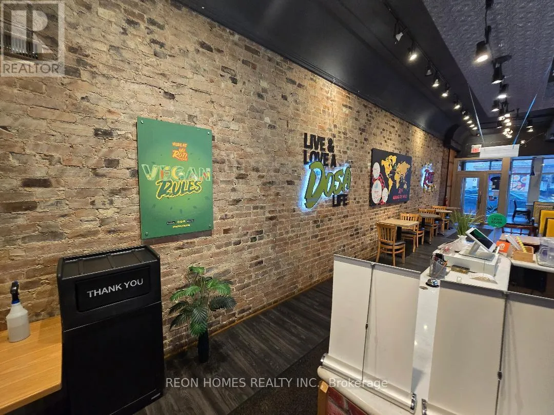 Cross Streets: Holland St & Barrie St. ** Directions: -. This is a great opportunity to take over a fully equipped restaurant in a prime down town Brantford location. The space is well laid out and nicely designed, with quality chattels and fixtures already in place. The kitchen is spacious and offers plenty of room to work, making it suitable for both dine-in and takeout, with the option to add catering if needed. The layout can easily be adapted to different types of cuisine, and there is ample rear parking for convenience. 1,600 sq. ft., 12 ft hood, 50 seats, walk-in cooler and freezer, and a full basement ideal for storage. Rent $4,068(TMI, HST & Water Included). 2 Years Left On Lease + 5 Year Renewal Option. (id:27476)