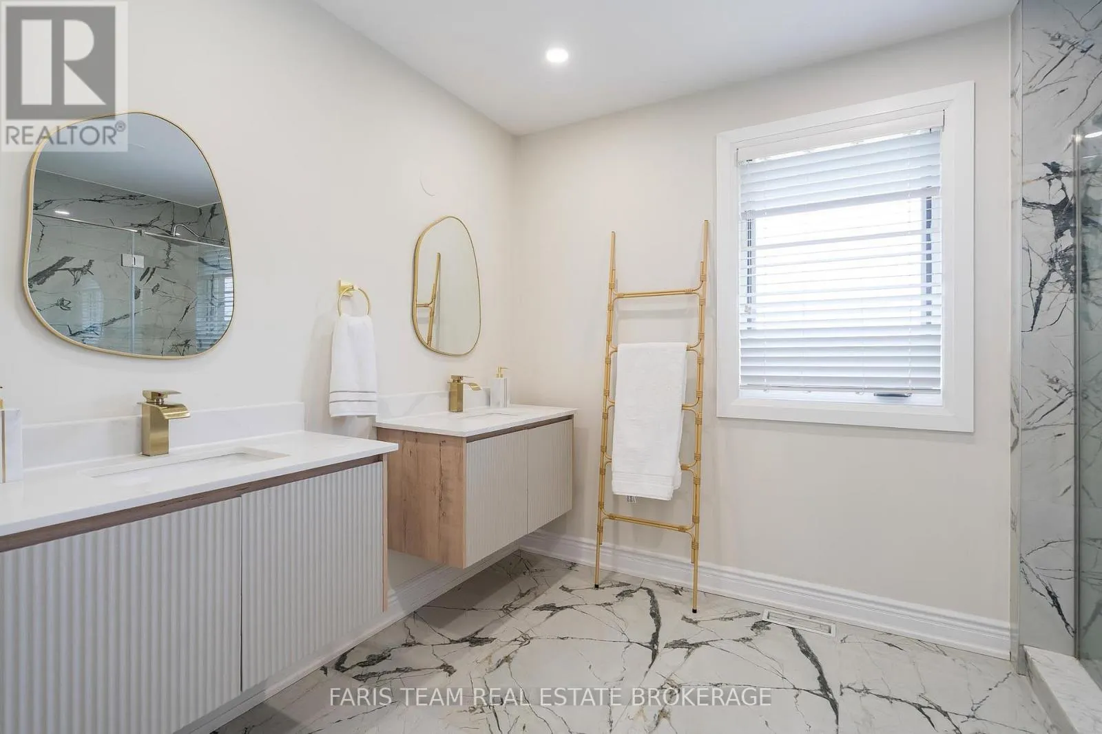 Simcoe Rd/Golfview Blvd Top 5 Reasons You Will Love This Home: 1) Set on an impressive 0.75-acre lot in the prestigious Golfview Estates, this exceptional home offers the rare combination of space, privacy, and upscale living in one of the area's most sought-after neighbourhoods 2) Thoughtfully renovated from top-to-bottom, every detail has been modernized to the highest standards, including a new roof, furnace, electrical, plumbing, drywall, a UV light, and flooring, offering true peace of mind for years to come 3) Boasting approximately 3,600 square feet of beautifully finished living space, including a high-ceiling walkout lower level and each above-grade bedroom featuring a walk-in closet and its own ensuite, ensuring privacy and luxury for everyone 4) Premium finishes throughout include rich hardwood flooring, heated bathroom floors in the basement, a smart toilet, skylight, EV charger, smooth ceilings, and rough-ins for built-in speakers and security 5) At the heart of the home is a chef-inspired kitchen with stainless-steel appliances, a large breakfast bar, and a seamless walkout to a covered patio, perfect for year-round gatherings with friends and family. 3,568 fin.sq.ft. *Please note some images have been virtually staged to show the potential of the home. (id:27476)