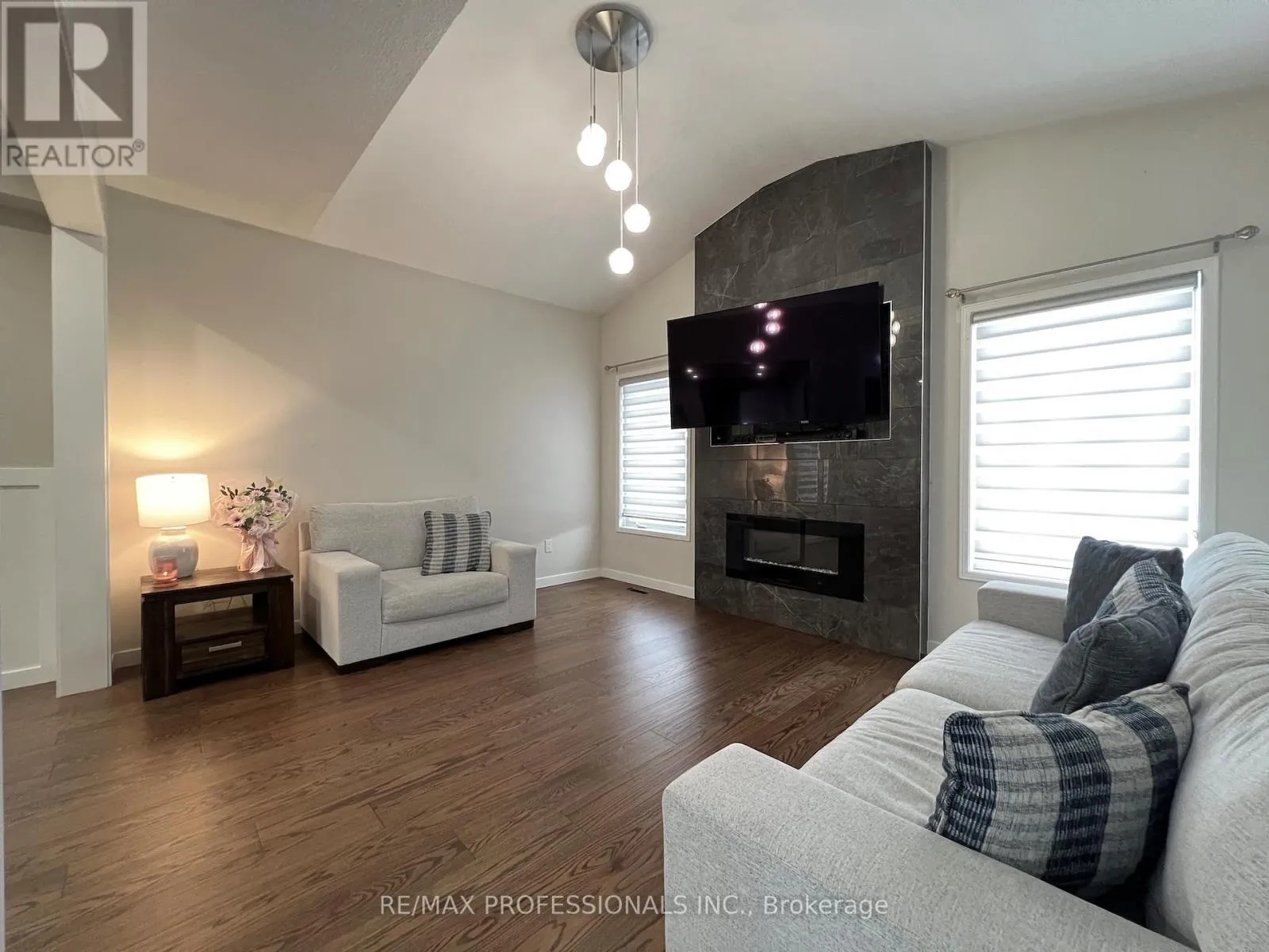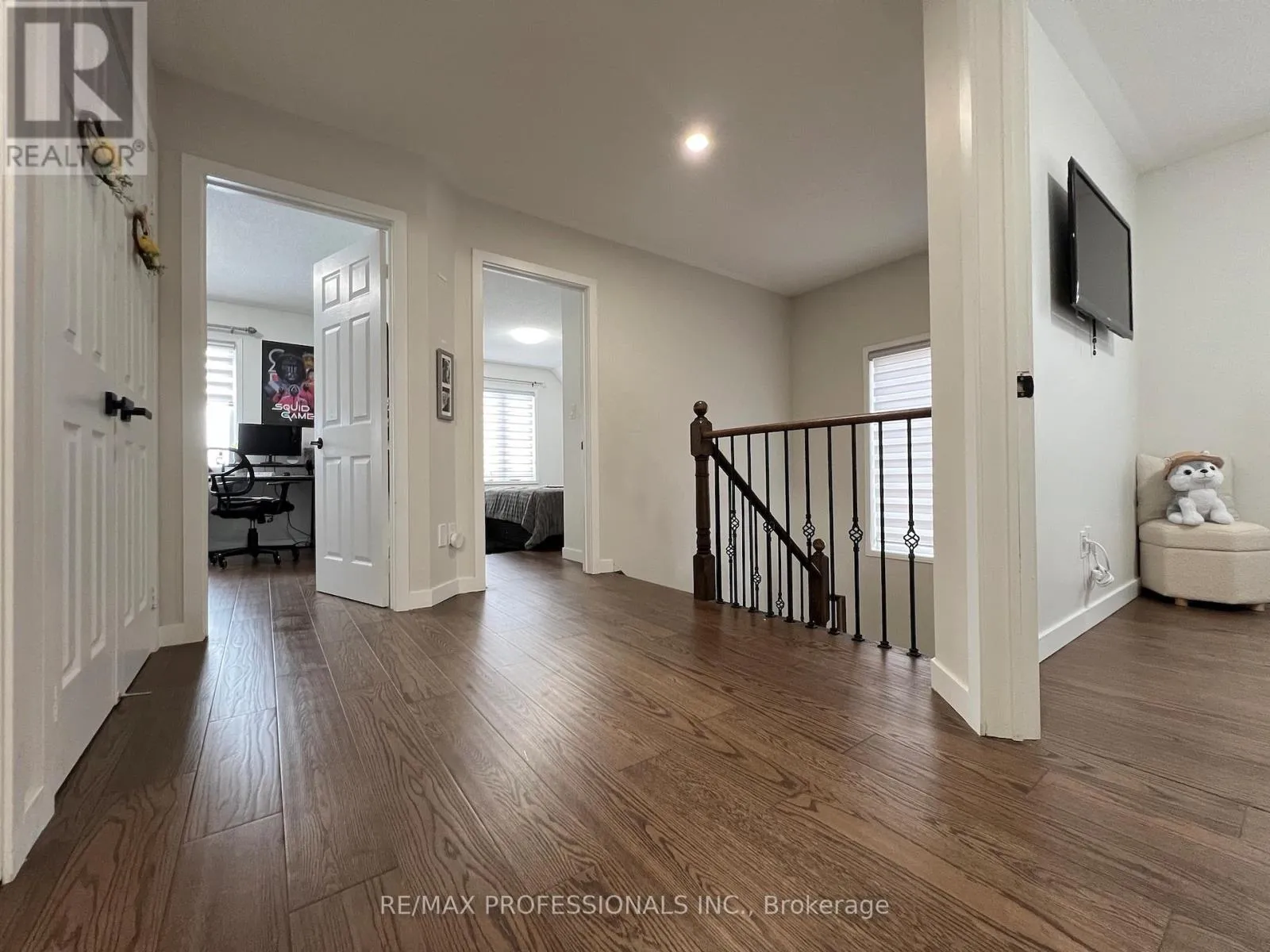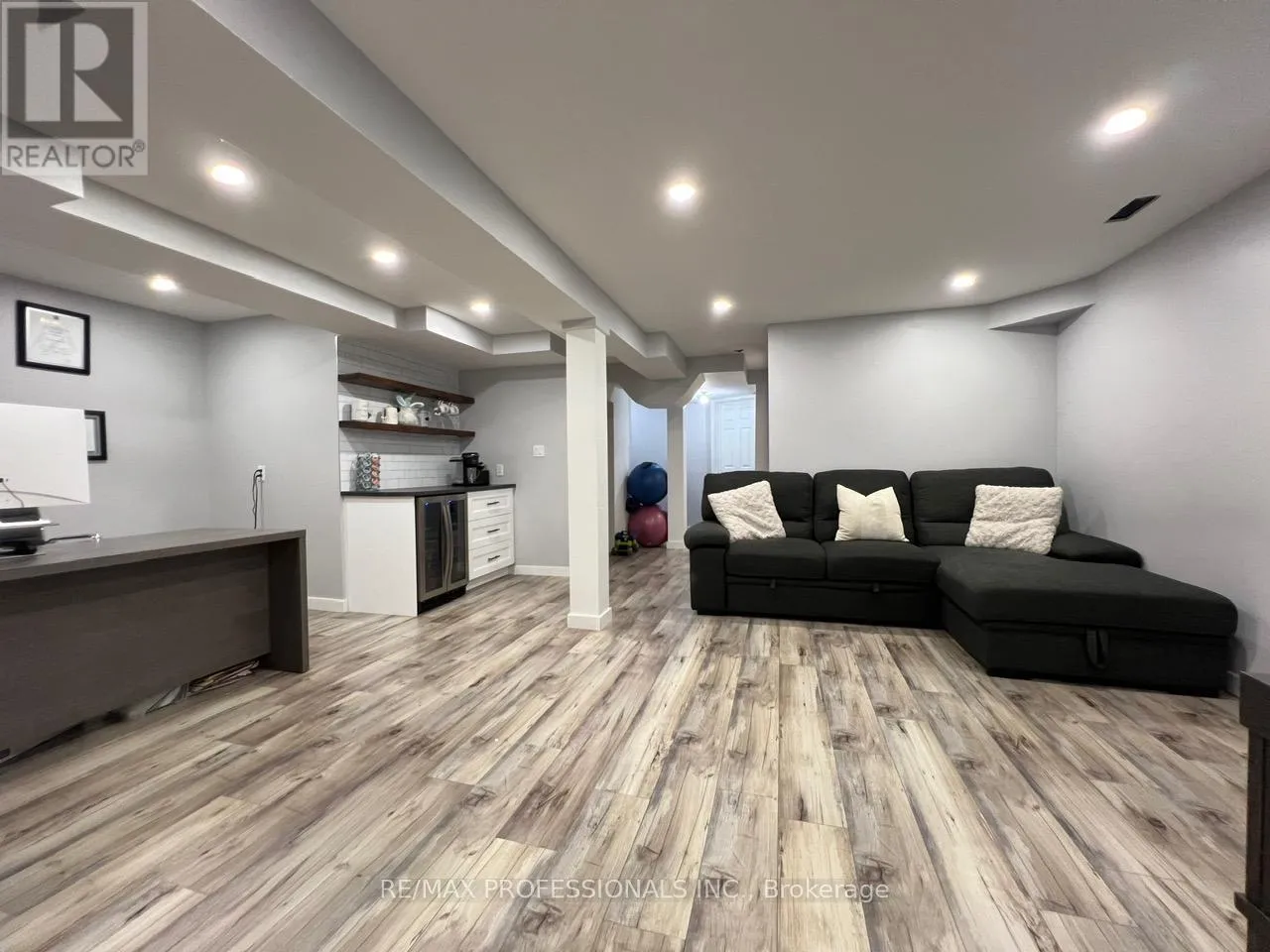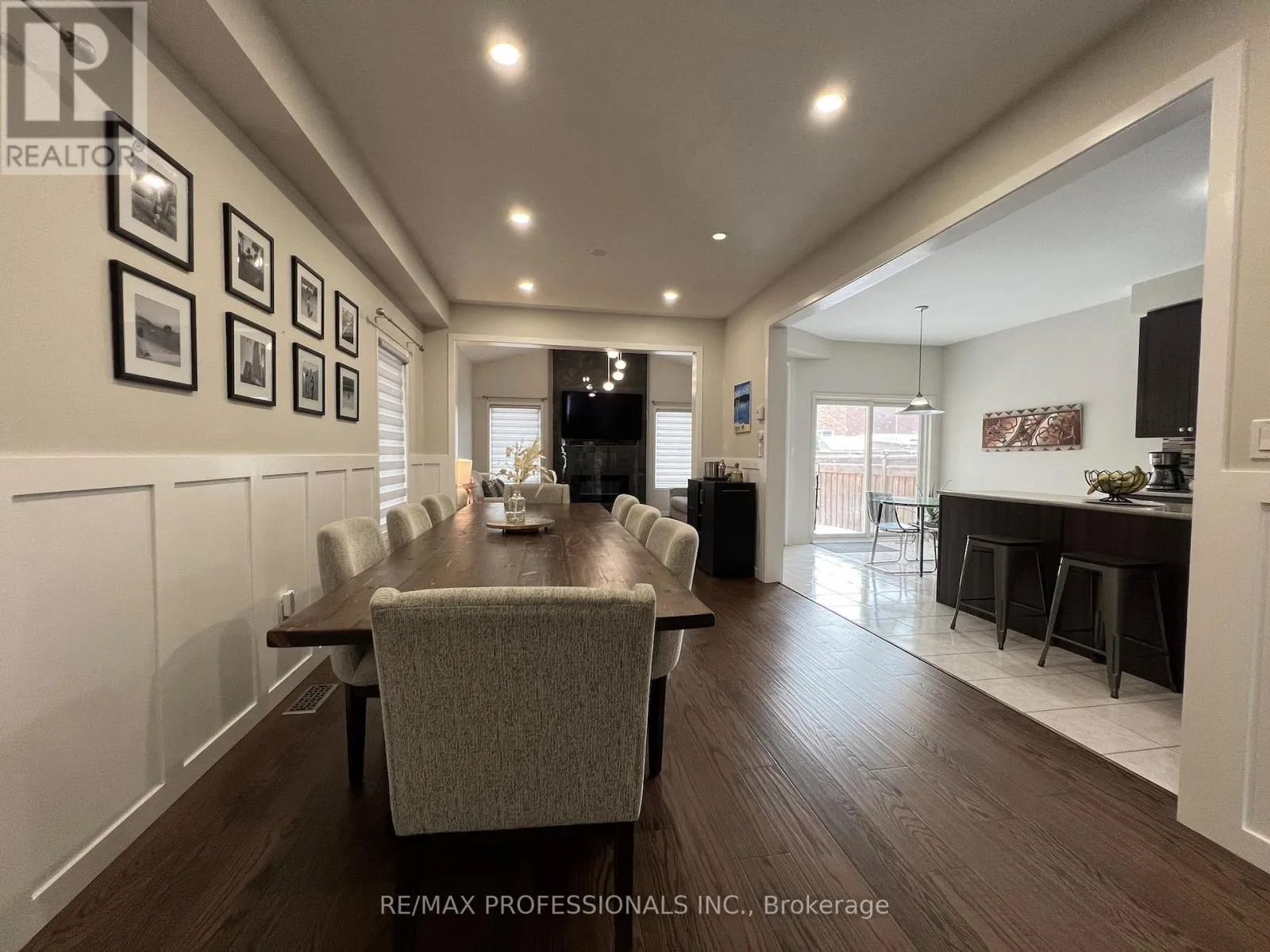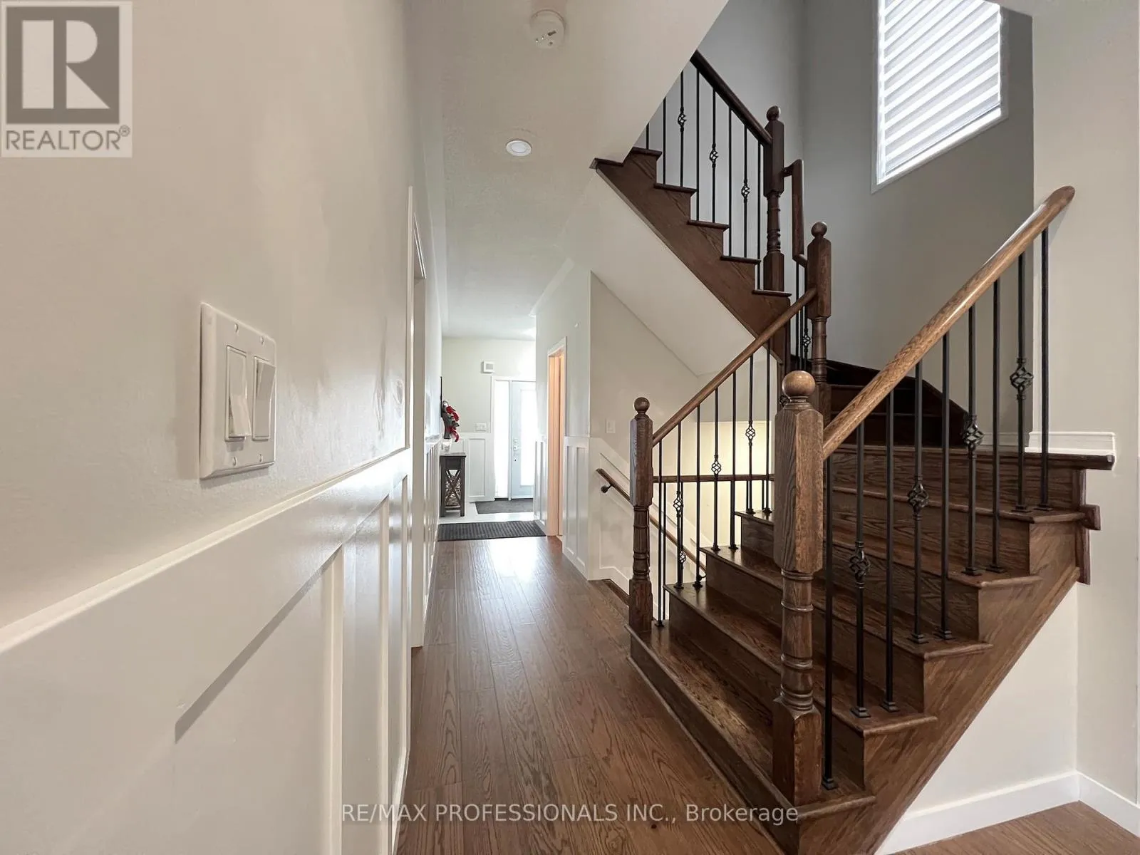400 | Line 7 Welcome To this modern Spacious Home Located In A Family Friendly Community in Bradford. 4 bedrooms on 2nd floor and 2 bedrooms in basement. Many high quality features including large foyer with 2 piece washroom, Engineered wood floors throughout, Open concept living/dining/kitchen/breakfast areas, eat in kitchen, Stainless Steel Appliances , backsplash, centre island, breakfast area, walk out to yard, 9 Ft Ceilings On Main Floor, family room at rear of the house by kitchen has electric fireplace, largePrinciple Rooms, with custom closet shelving, prime bedroom has a 4 piece ensuite with separate shower, basement has a bar, workout room, rec room, office, 3 piece washroom. Access to garage from house, backyard has garden shed. (id:27476)