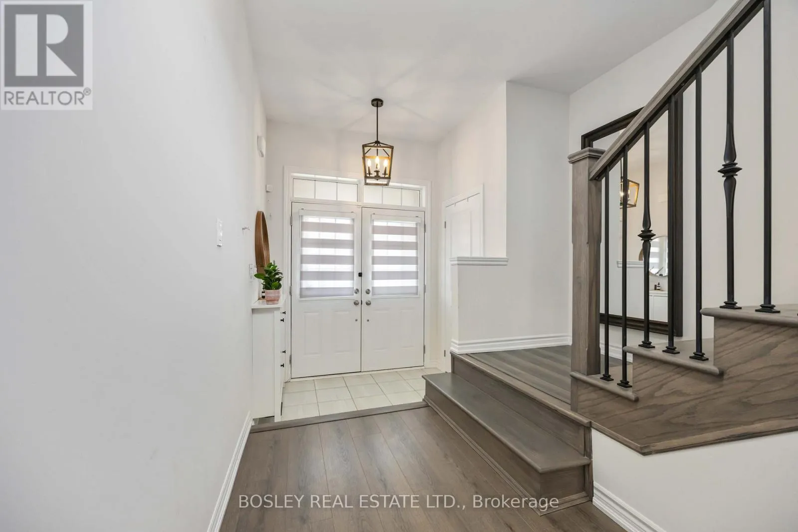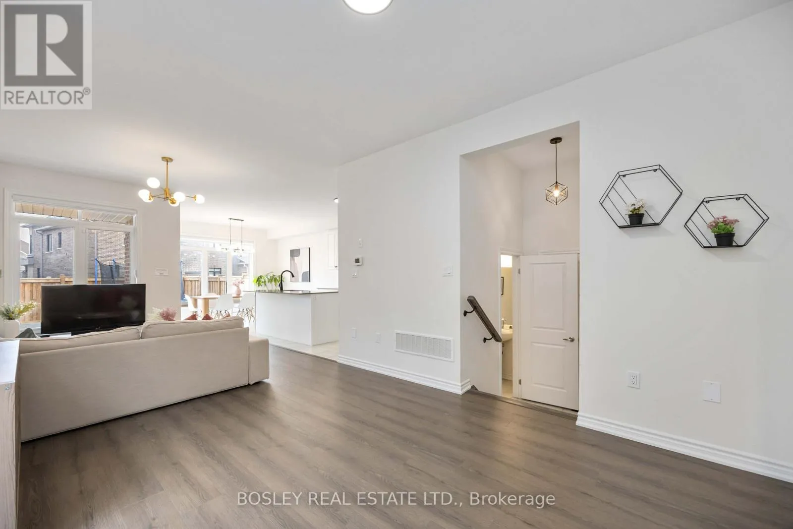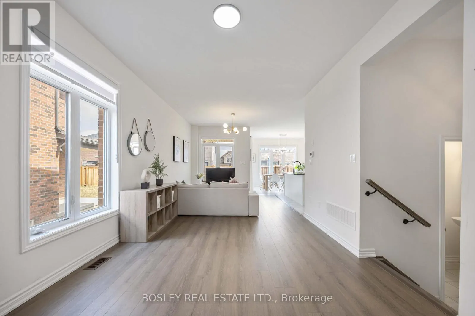 Simcoe Rd & Line 6th Beautiful built semi-detached home situated on a premium pie-shaped lot in a family-friendly neighborhood. Double door entry welcomes you into a bright open-concept living and dining area with 9-ft ceilings on the main floor and upgraded laminate flooring throughout the main level and upper hallway. The modern eat-in kitchen features a center island, upgraded granite countertops, stainless steel appliances, and luxury cabinetry, overlooking a spacious breakfast area. The second floor offers 3 generous bedrooms and 3 bathrooms, including a large primary bedroom with an oversized ensuite and frameless glass shower. Perfect for young families and couples starting a new chapter, located in a safe, kid-friendly community within walking distance to schools and playgrounds, and just minutes to shopping, restaurants, community centre, and Highway 400. The unfinished basement provides endless potential-create your dream recreation room, home gym, kids' play area, or design the space to suit your lifestyle. Almost new, stylish, and move-in ready - a fantastic opportunity to grow your family in a wonderful neighborhood. ****200 amp ***** New main floor Laminate installed 2025 ****Modern Light Fixtures **** 2nd Floor Laundry! ***** Newly Fenced BackYard ****New Modern Light Fixtures**** ****Less than 5 years old**** (id:27476)