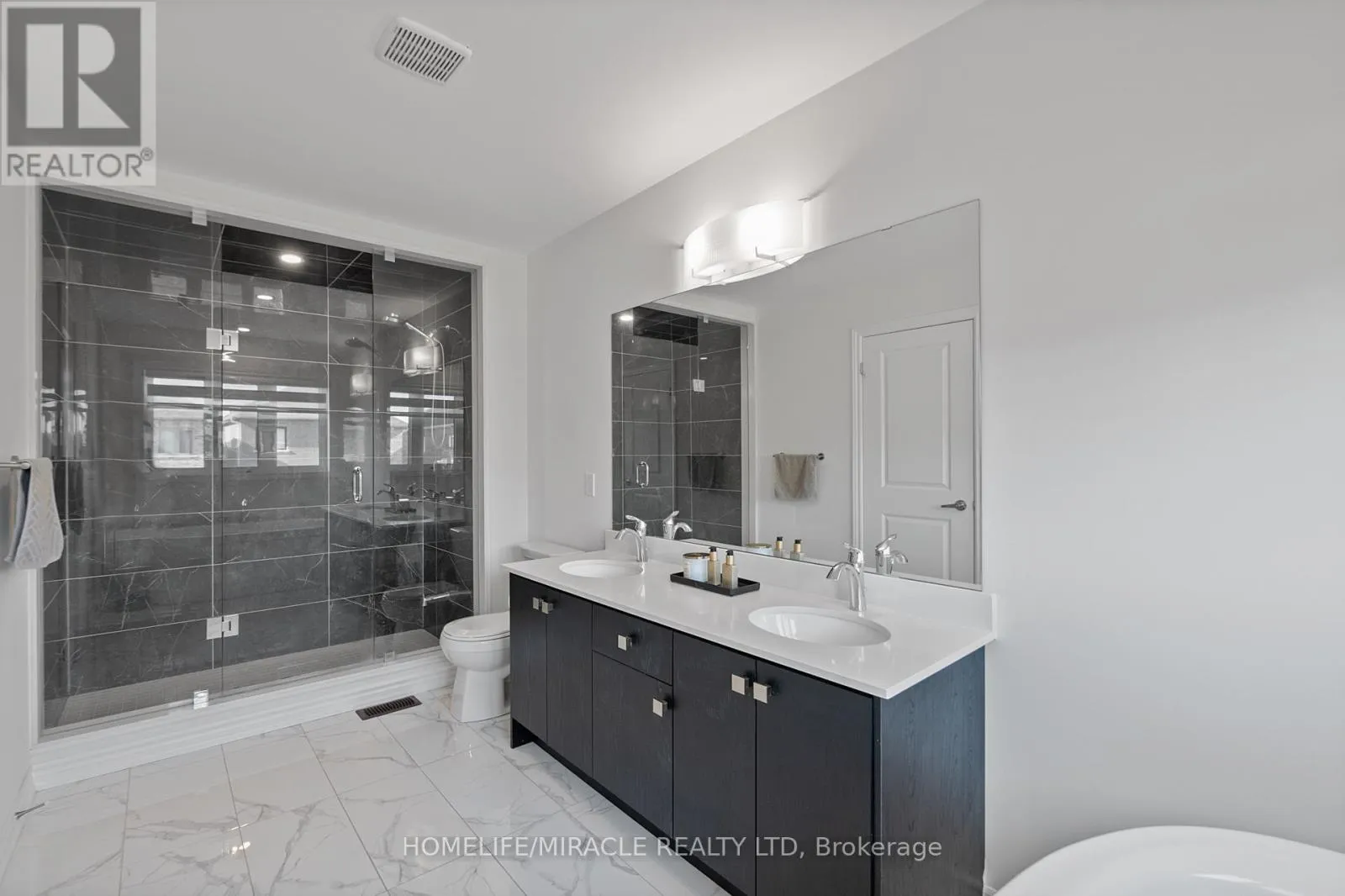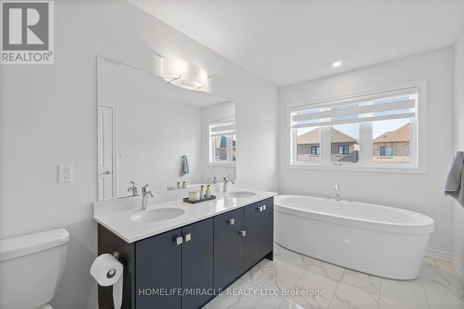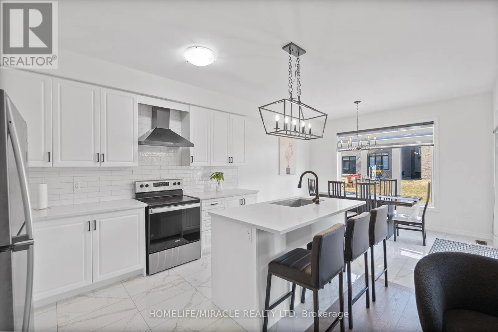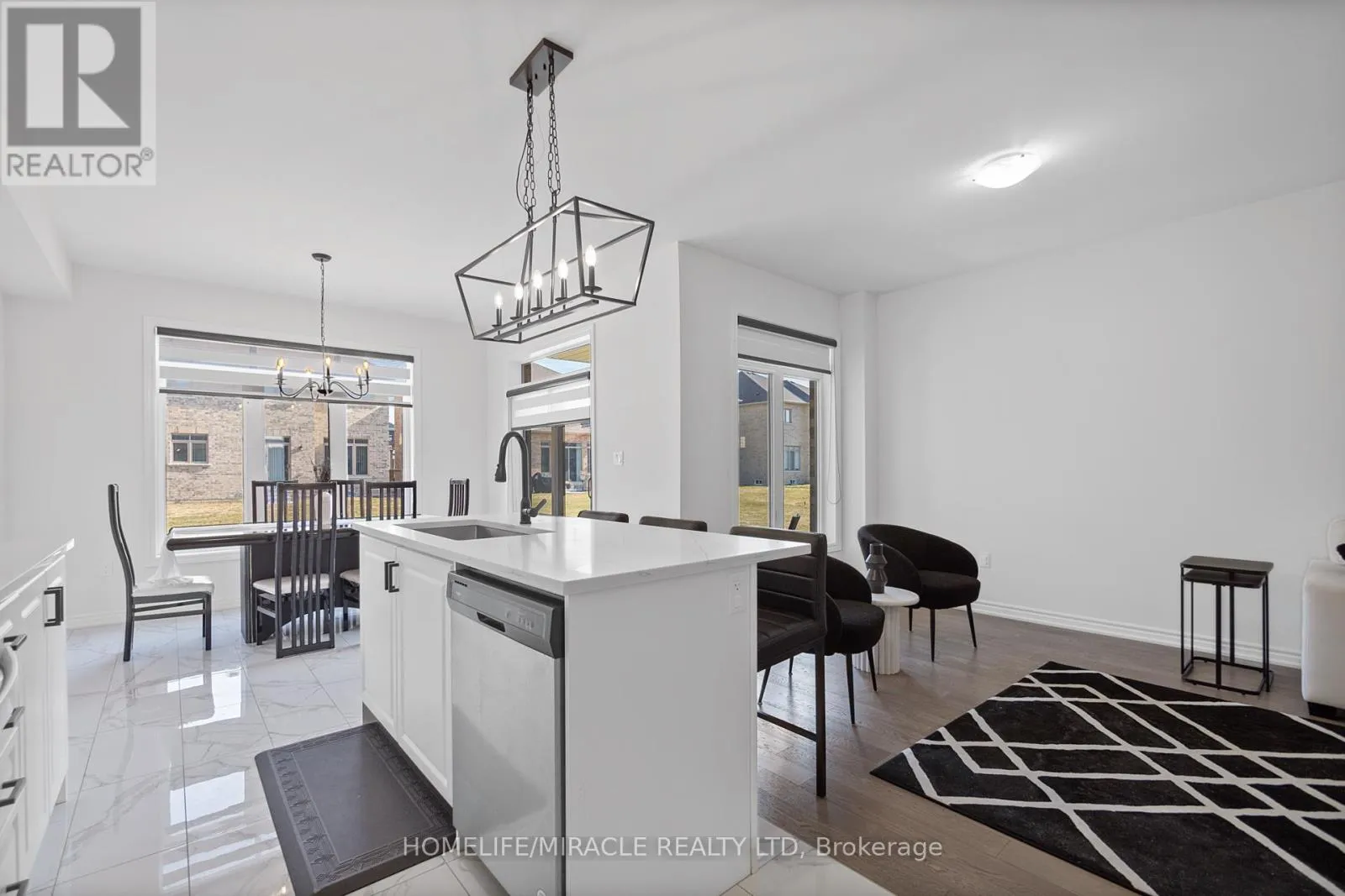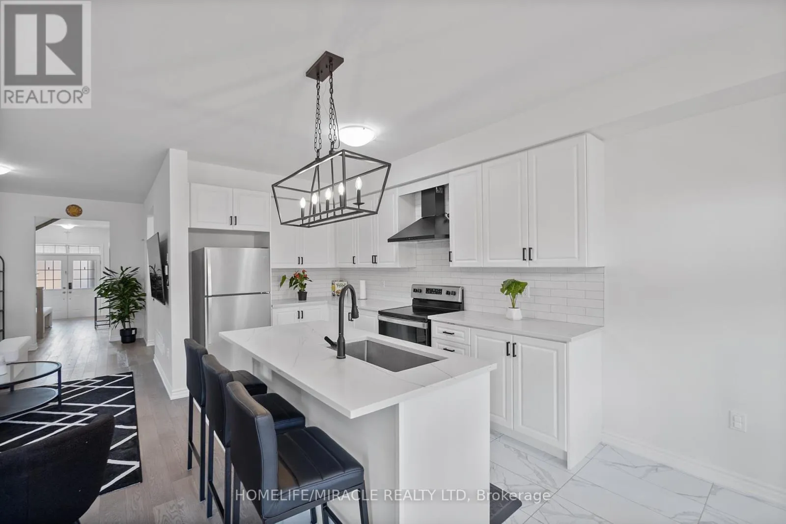 Simcoe Rd/ West lake Cres Welcome to this beautifully crafted semi-detached home nestled in a warm, family-friendly neighborhood. Offering nearly 1,800 square feet of thoughtfully designed living space with hardwood flooring throughout, this home features 3 spacious bedrooms and 3 stylish bathrooms. The exterior boasts an upgraded driveway with no sidewalk, allowing parking for 4 cars, and includes a newly installed EV charger. A grand double-door entry leads into a bright, open-concept living and dining area with smooth 9-foot ceilings on the main floor. The modern, oversized kitchen is perfect for entertaining, featuring a flush breakfast bar, sleek stainless steel appliances, a new quartz countertop, and a stylish tile backsplash. The expansive breakfast area opens onto a lovely patio and a generously sized backyard equipped with a gas line for BBQs. Upstairs, the luxurious primary bedroom offers a large walk-in closet and an upgraded 5-piece ensuite with his-and-hers sinks, a standalone tub, and a glass-enclosed shower. Two additional bedrooms share a beautifully finished bathroom with quartz countertops. For added convenience, the second floor includes a laundry room with built-in cabinetry, a laundry sink, and a quartz countertop. Ideally located close to schools, grocery stores, public transit, a community center, Bradford GO Station, and Highway 400, this home offers the perfect blend of comfort, style, and convenience. (id:27476)