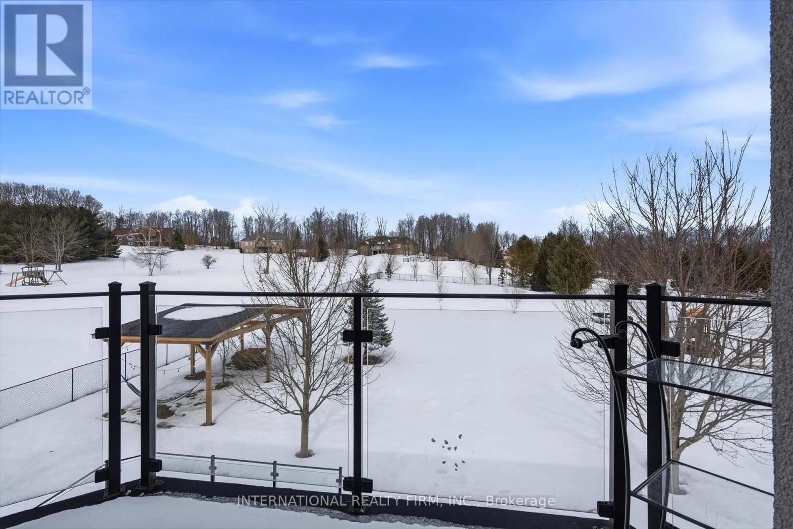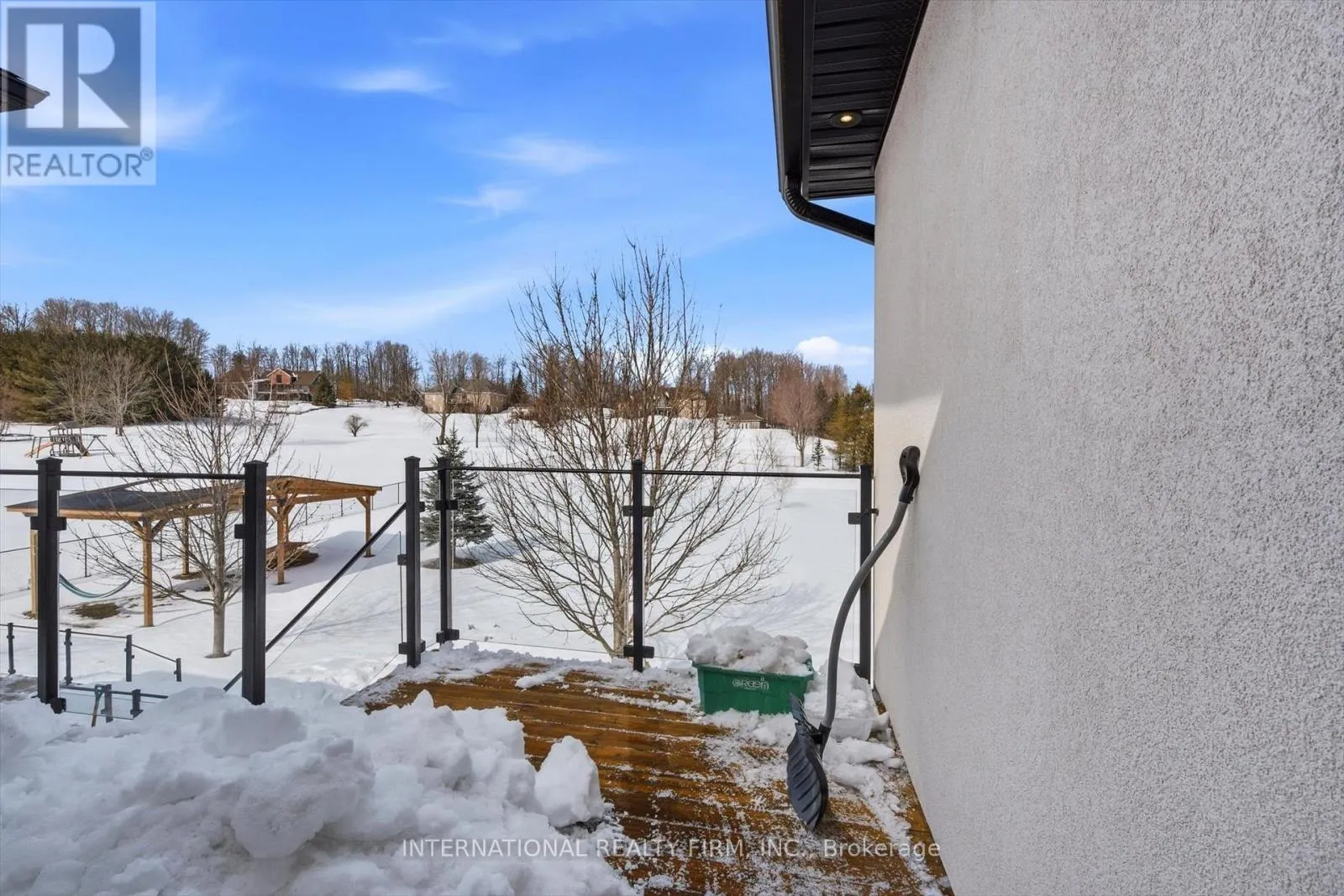 Cross Streets: 8th Line and County Road 27. ** Directions: South of 8th Line and West of County Road 27. Magnificent executive estate set on approximately 1.5 acres of beautifully landscaped grounds. This exceptional two-storey residence blends classic architectural charm with sophisticated modern updates, offering a rare opportunity for luxury living. The home welcomes you with bright, sun-filled interiors, impressive 9-foot ceilings, and rich hardwood flooring (2025) throughout. Elegant details such as crown moulding, multiple fireplaces, and custom wrought-iron railings enhance the home's timeless appeal. Perfectly designed for both entertaining and everyday living, the chef's kitchen (2025) serves as the heart of the home, featuring premium built-in stainless steel appliances, a central workstation, and a convenient boiling water tap. The space flows effortlessly to an expansive multi-tiered deck-an ideal setting for outdoor dining, gatherings, or peaceful relaxation. The primary bedroom offers a luxurious retreat, complete with a newly renovated (2025) spa-inspired five-piece ensuite and a spacious walk-in closet. Adding remarkable flexibility, the property includes a fully self-contained approximately 1,550 sq. ft. two-bedroom suite featuring its own kitchen, dining and living areas, a family room with fireplace, a five-piece bathroom with in-floor heating, and a two-way access elevator-perfect for an independent in-law suite, multigenerational living, or extended guest stays. An elevator also provides convenient access between the main levels of the home, enhancing both comfort and accessibility. Outside, the fenced backyard offers a large private green space, creating a peaceful and secluded setting within this prestigious estate property. A truly outstanding opportunity for refined luxury living. (id:27476)