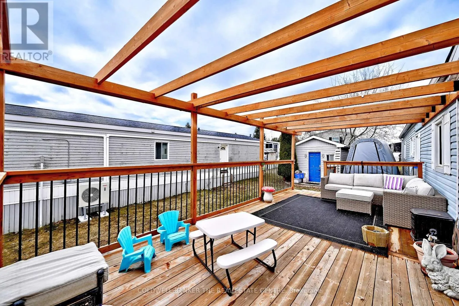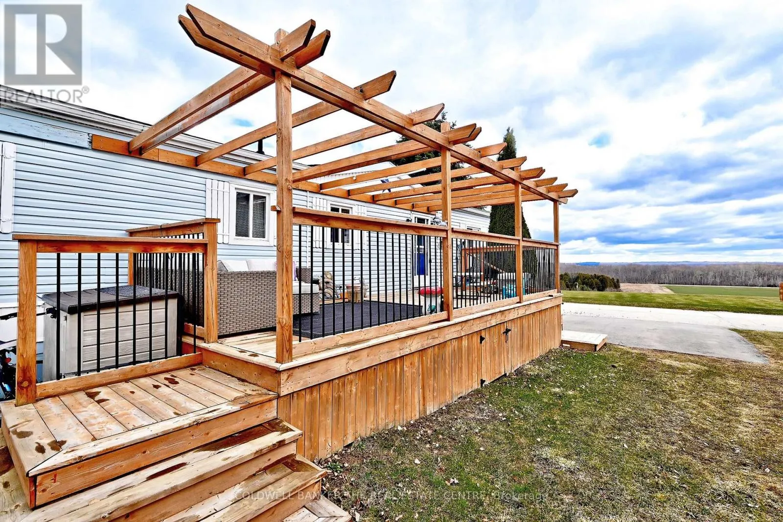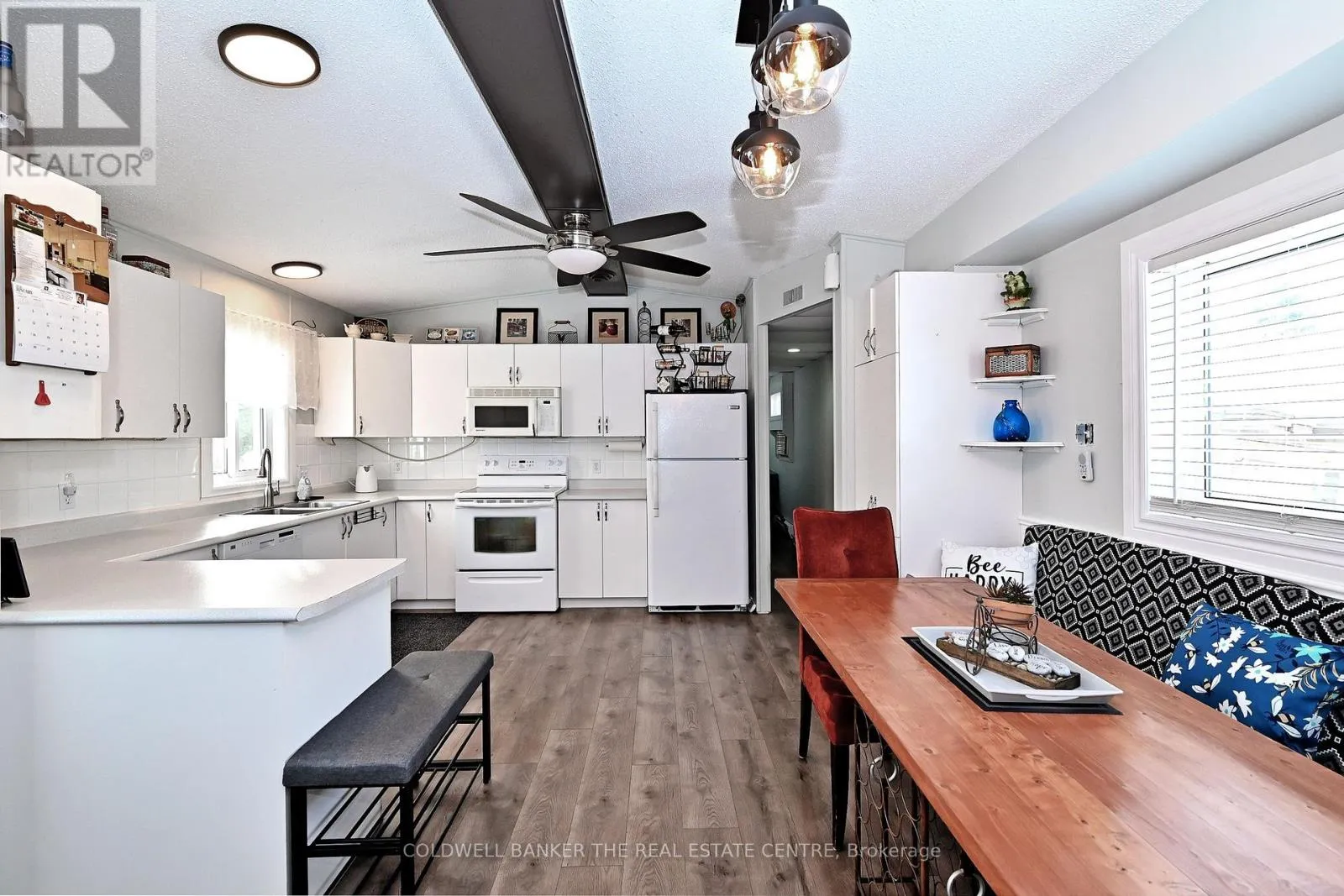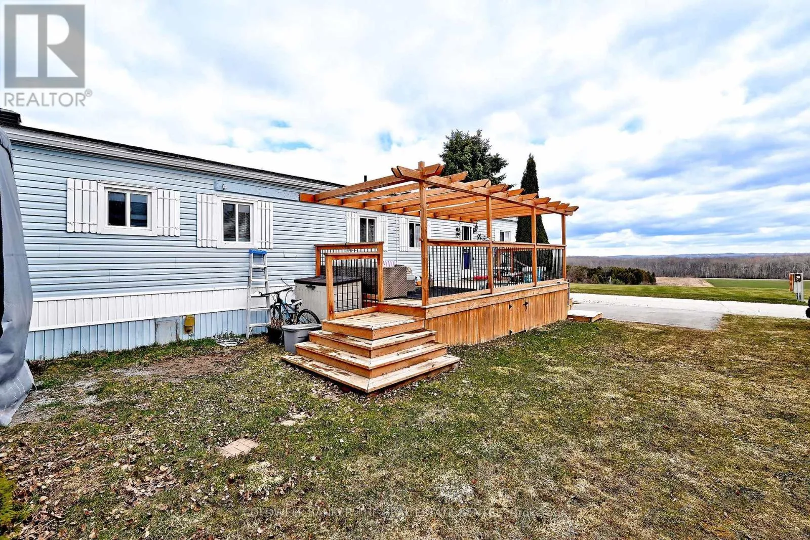 Cross Streets: 11th Concession and Sunrise Cir. ** Directions: hwy 11 to 11th Concession to Sunrise Cir. Attention First Time Buyers, Renters, and those looking to Downsize! This modular home is a wonderful opportunity for home ownership in a country setting ! Charming 2 bedroom modular home with spacious layout! Inviting living room features a chalet style beam ceiling and cozy wood burning fireplace. Bright eat in kitchen with plenty of counter space! The stylish banquette seating offers both charm and functionality to the kitchen! You will certainly appreciate that each bedroom has its own bathroom. The main bathroom is recently renovated with sought after modern touches. Many recent upgrades allow you comfortable living and peace of mind. Upgrades include: Hot Water tank - owned (2026), Shingles (2024), Deck,(2021),new flooring (2021),family bathroom(2021),paved driveway (2021), windows (2019). Located just mins from Bradford this land lease community has NO AGE RESTRICTIONS. Monthly fees of $575.00 include property taxes and water. Home owner responsible for Hydro, internet and phone. Plenty of room for 4 cars in the private driveway, and guest parking is available! Enjoy living comfortably in a serene setting! (id:27476)