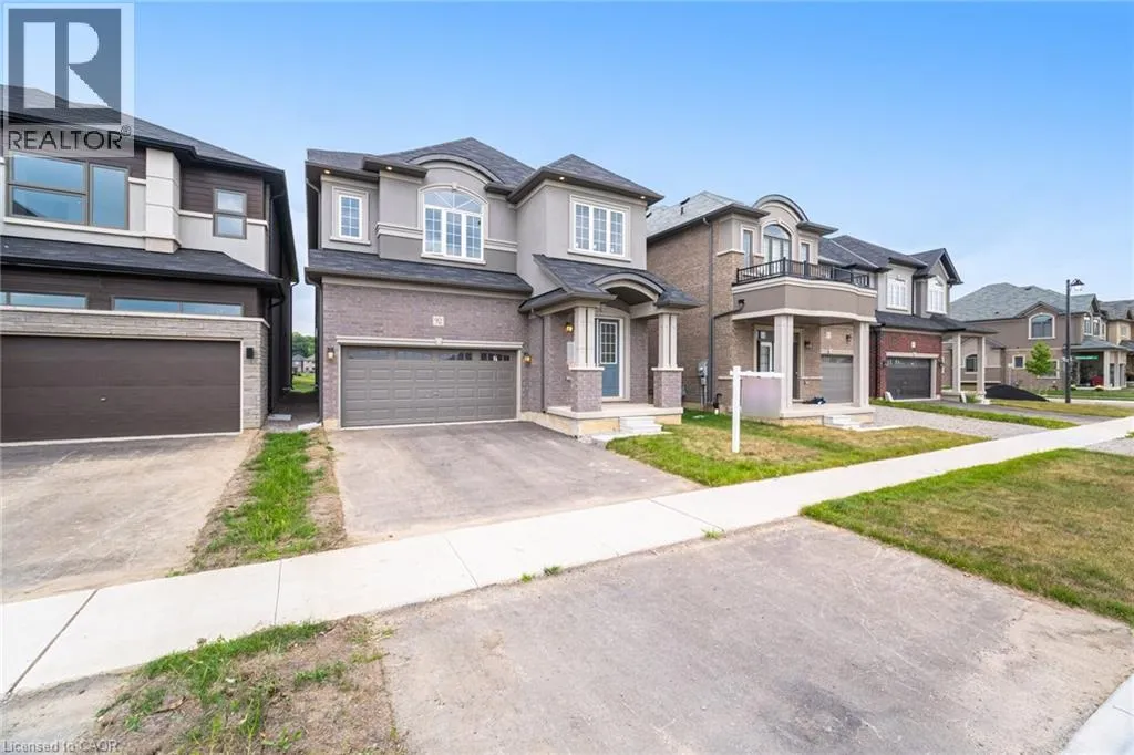 Stauffer & Denis Ave Welcome to this beautiful detached home featuring 4 spacious bedrooms, 3.5 bathrooms, and a double-car garage, ideally situated in the sought-after Nature's Grand community by LIV Communities in Brantford. Positioned on a premium lot with captivating views of the Grand River and lush surrounding greenery, this residence offers the perfect blend of natural beauty and modern comfort. The main floor showcases soaring 10-foot ceilings, upgraded windows, and large patio doors that flood the space with natural light, creating an open, airy atmosphere throughout. Designed with both style and functionality in mind, this home provides a serene retreat for quiet moments while offering plenty of room for family living. Each generously sized bedroom serves as a personal haven, ensuring comfort and privacy for all. The open-concept layout seamlessly connects the kitchen, dining, and living areas, making it ideal for both entertaining and everyday life. Perfectly located near the river, parks, ponds, and walking trails, the home also enjoys easy access to Hwy 403, conservation areas, and scenic pathways leading to the prestigious Brantford Golf & Country Club. Dont miss it. (id:27476)