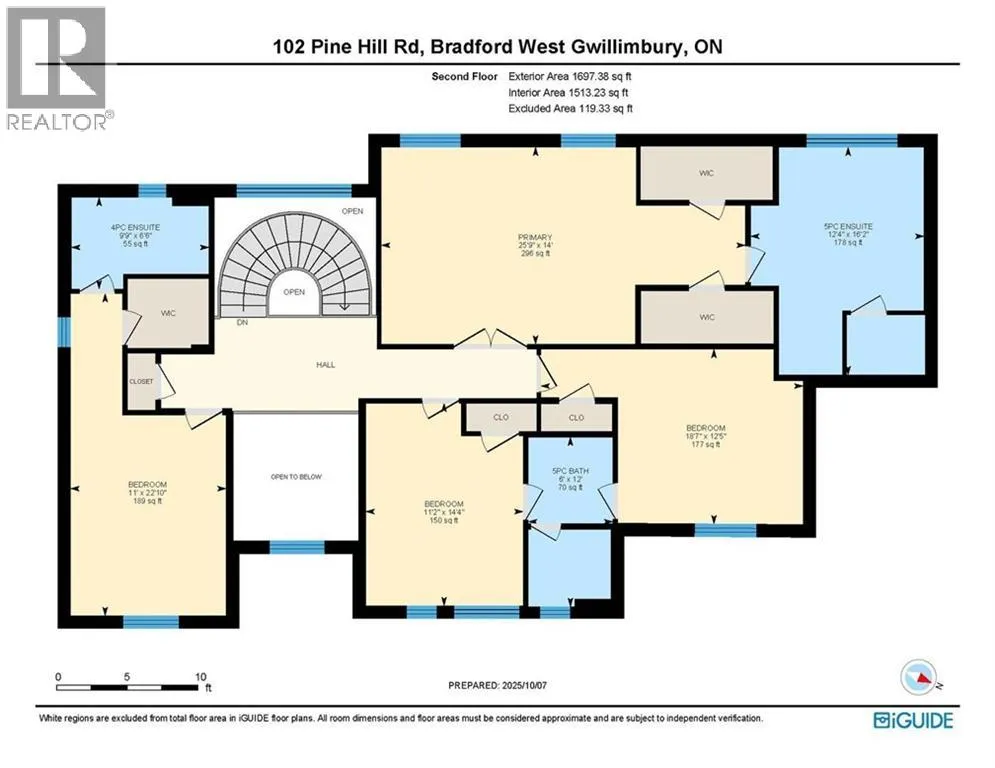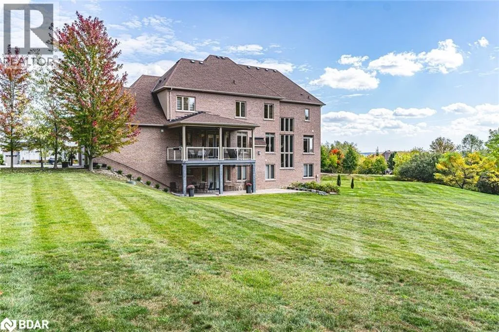 5th Line/10th Sideroad/Nottingham Forest Rd/Pine Hill Rd ESTATE HOME SHOWCASING OVER 5,100 SQ FT, IN-LAW POTENTIAL, LUXURIOUS FINISHES, TRIPLE GARAGE, & 2.33-ACRE LOT! Set on a prestigious 2.33-acre estate in The Shires Estates, Bradfordâs most distinguished country estate community inspired by the timeless charm of the English countryside, this stately all-brick home offers over 5,100 finished square feet of refined living. The impressive exterior showcases a circular driveway, a covered front porch with double doors, soffit lighting, and a triple garage with inside entry. A 20-foot cathedral ceiling, floor-to-ceiling windows, and a grand spiral staircase create a striking first impression, while 10-ft ceilings on the main level and 9-ft ceilings on the upper and lower levels enhance the homeâs scale. The custom kitchen features granite countertops, a large island, custom cabinetry topped with crown moulding, tile backsplash, stainless steel appliances, and a walkout to the deck. The main level also offers hardwood floors, a formal dining room, a living room with a gas fireplace and built-in cabinetry, two dens, and a laundry room. The generous primary bedroom showcases dual walk-in closets and a 5-piece ensuite with a soaker tub, glass-walled shower, dual vanity, and water closet, while three additional bedrooms feature private or shared ensuite access. The walkout basement provides excellent in-law capability with a kitchen boasting quartz countertops, an island, stainless steel appliances, a large rec room, two bedrooms, two full bathrooms, laundry, and a cantina. Backing onto a ravine with towering trees offering privacy, complete with a covered composite deck with glass railings, a lower-level patio, and an irrigation system. Additional highlights include a drilled well, water softener, filters, UV, reverse osmosis, HRV, high-efficiency furnace, central air conditioning, central vac, and a 200-amp electrical panel. A #HomeToStay of distinction where craftsmanship, scale, and setting exceed expectations. (id:27476)