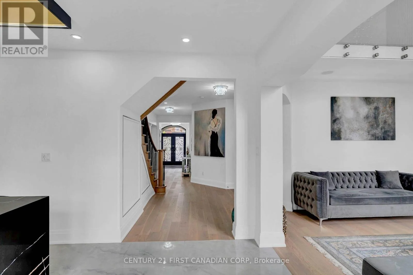 Cross Streets: Airport Road and Sandalwood. ** Directions: Major Intersection: Bovaird Dr E & Fernforest Dr. Absolutely Stunning, Fully Renovated Showstopper! This immaculate 4-bedroom executive home offers an impressive approx. 4,800 sq ft of total finished living space-with over 3200 sq ft above grade and a beautifully finished separate entrance basement (~1600 sq ft). Fully transformed into a sleek modern masterpiece, this home features two spacious living rooms, premium finishes, and upscale design throughout. Step inside to a custom-designed kitchen with quartz countertops, new cabinetry, and stainless steel appliances. Enjoy open-concept living and dining, elegant new flooring, smooth ceilings, designer lighting, and a newly added feature fireplace that creates a warm and stylish focal point. With two distinct living rooms, there's room for both relaxed family time and elegant entertaining. A private main floor office provides the perfect work-from-home setup, and the eat-in kitchen offers plenty of space for gatherings. Upstairs, the enormous primary retreat features a spa-like ensuite and walk-in closet. Every bathroom has been completely renovated with modern tile work, floating vanities, and updated fixtures. The finished basement with separate entrance includes 2 additional bedrooms, a full bathroom, a spacious rec area, and a wet bar-ideal for in-law use, guests, or extra income potential. EV charger-ready garage wiring, and perfectly located in a vibrant, family-friendly neighbourhood close to schools, parks, shopping, hospital, and transit. Turnkey luxury-just move in and fall in love. Basement is tenanted at$1,800/month, offering immediate rental income. (id:27476)