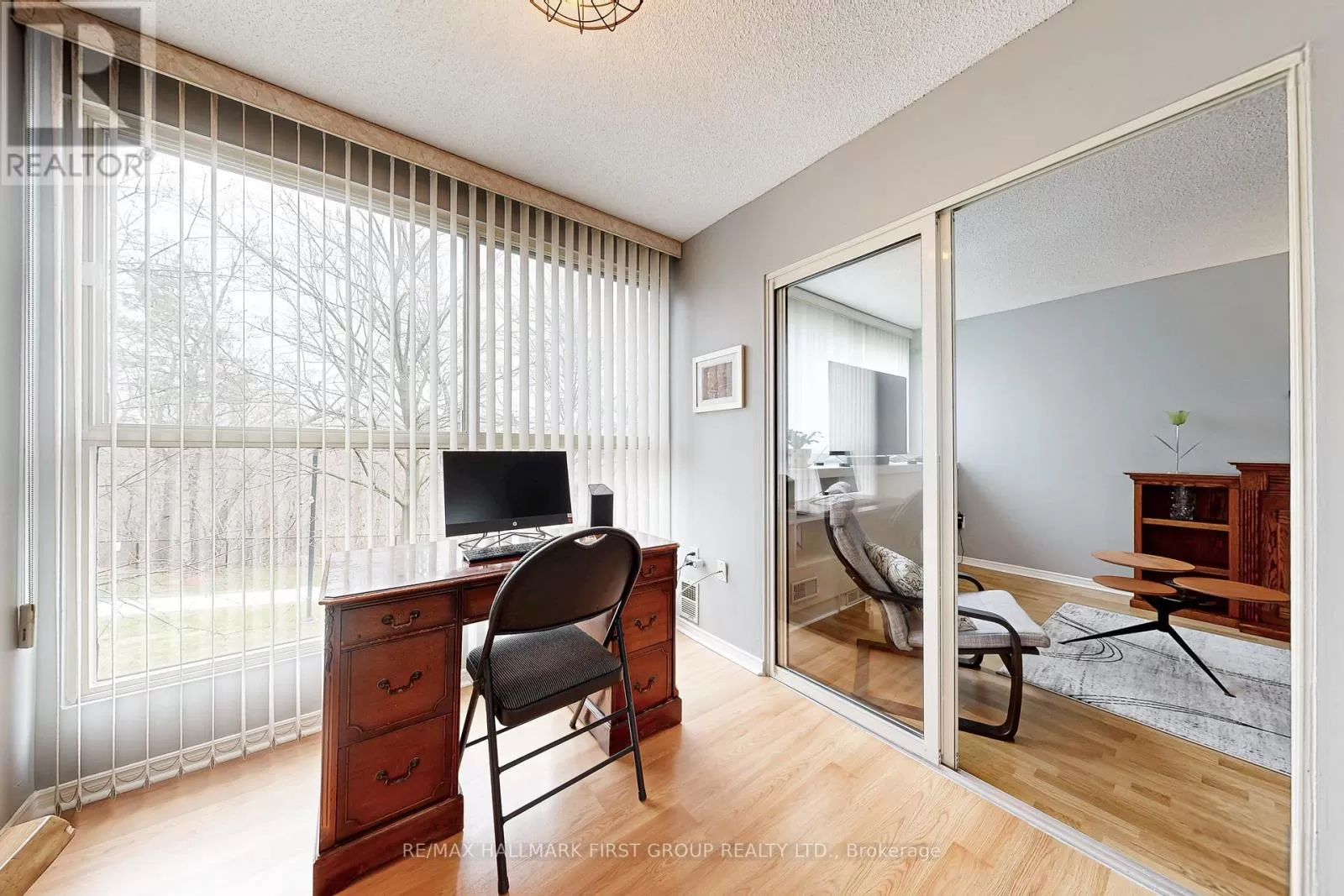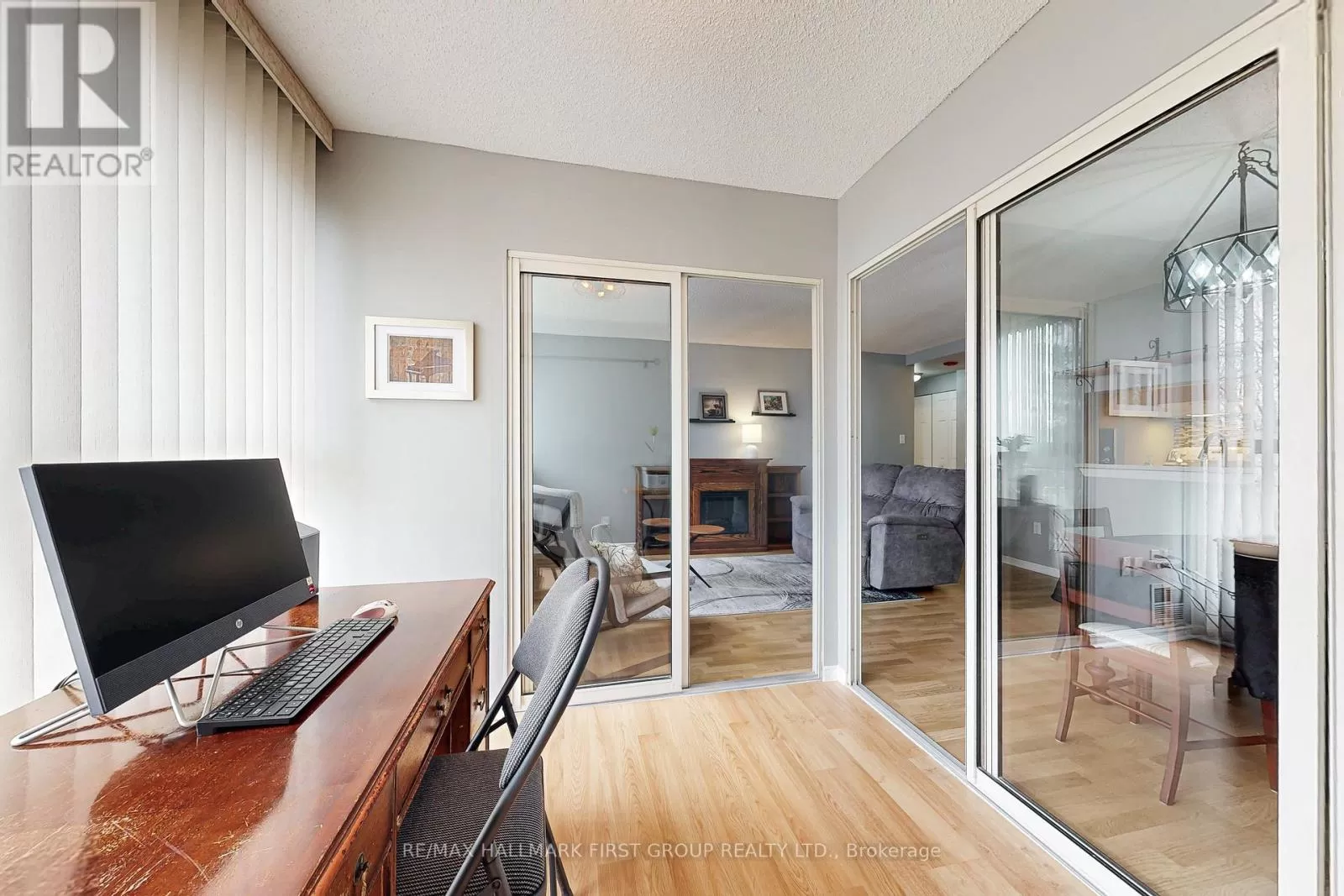 McLaughlin/Steeles Client RemarksWelcome to Camelot on the Park a well-maintained building offering the perfect blend of comfort, convenience, and community. Ideally located at 8351 McLaughlin Rd S, you're close to everything you need for daily living, with easy access to parks, shopping, and public transit. This 1-bed, 1-bath condo on the 2nd floor is thoughtfully designed with a layout that feels spacious and welcoming. The living and dining areas flow seamlessly, creating a warm, open feel thats ideal for hosting whether its a quiet night in or a casual get-together with friends. Enjoy stylish laminate floors, in-suite laundry, and plenty of storage, including a walk-in closet in the generously sized bedroom and a private locker. The enclosed den offers a flexible bonus space, perfect for a home office, reading nook, or extra storage. North-facing windows bring in great natural light throughout. With secure underground parking, you'll never have to brush snow off your car again. And when you get home, enjoy building amenities like an indoor pool, gym, and welcoming common areas for socializing or entertaining within the community. Maintenance fees cover heat, hydro, water, building insurance, parking, and all common elements offering true worry-free living. Move in, drop your bags, and start enjoying everything this well-loved unit and community have to offer. (id:27476)