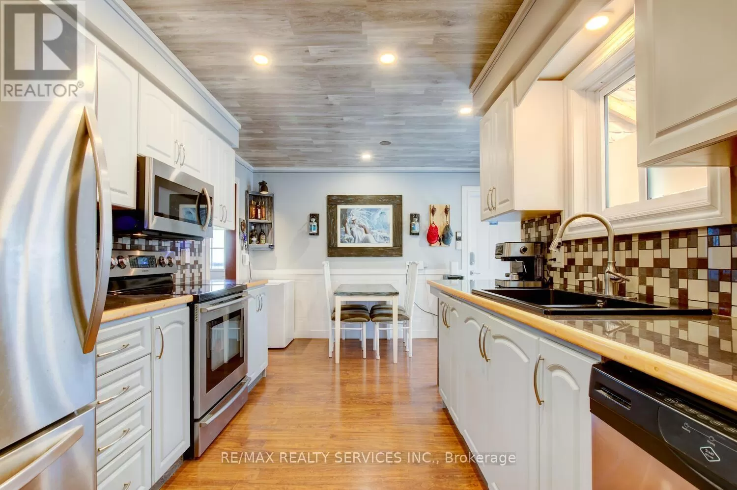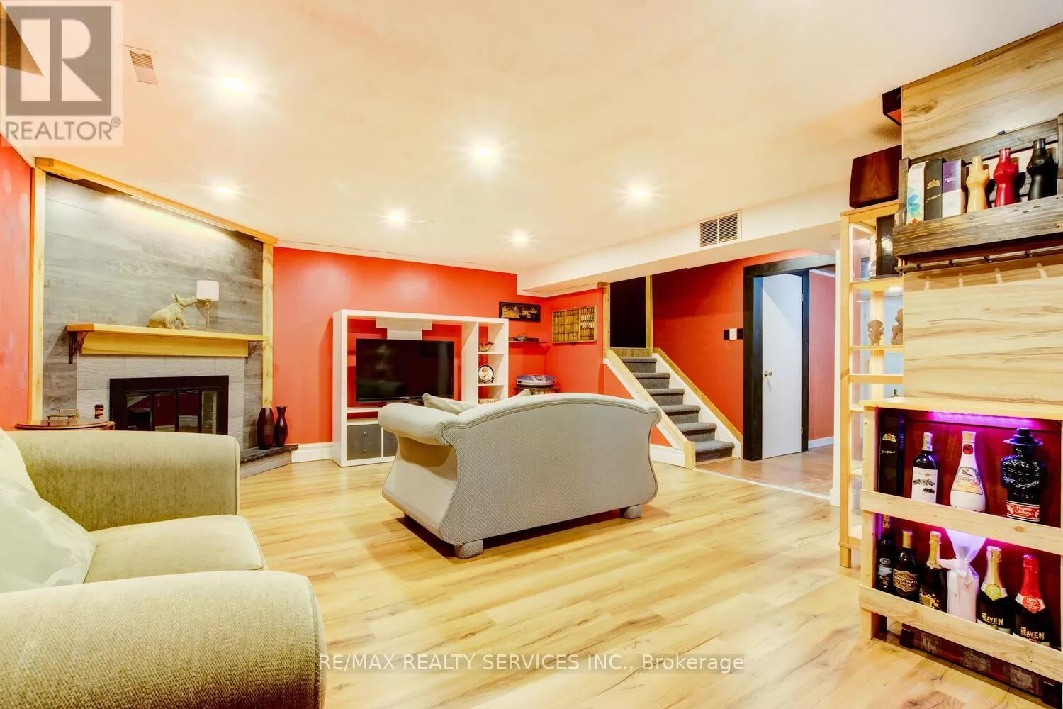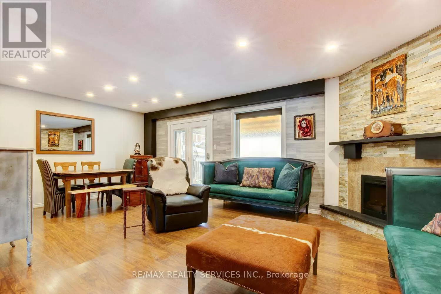 Kennedy / Sandalwood Gorgeous 3 bedroom, 3 bath, semi detached home on a premium 30' X 100' lot in desirable Heart Lake East ! Extensive renovations including a gourmet kitchen with built - in breakfast bar, stainless steel appliances, pot lights, stone backsplash and pantry. Large master bedroom with oversized walk - in closet, spacious great room with pot lights, stone fireplace with electric insert and walk - out. Nicely finished open concept rec room with 3 - pc bath, pot lights and sub floor. High quality laminate throughout, renovated main bath, new central air ( 2023 ), upgraded vinyl windows ( 2018 ), reshingled roof ( 2014 ), extra insulation ( 2016 ), upgraded doors and hardware. Private fenced yard with covered deck, garden shed, double width driveway, cozy front patio and is walking distance to schools, parks, shopping and quick access to HWY # 410 ! Excellent curb appeal, shows well and is priced to sell ! (id:27476)