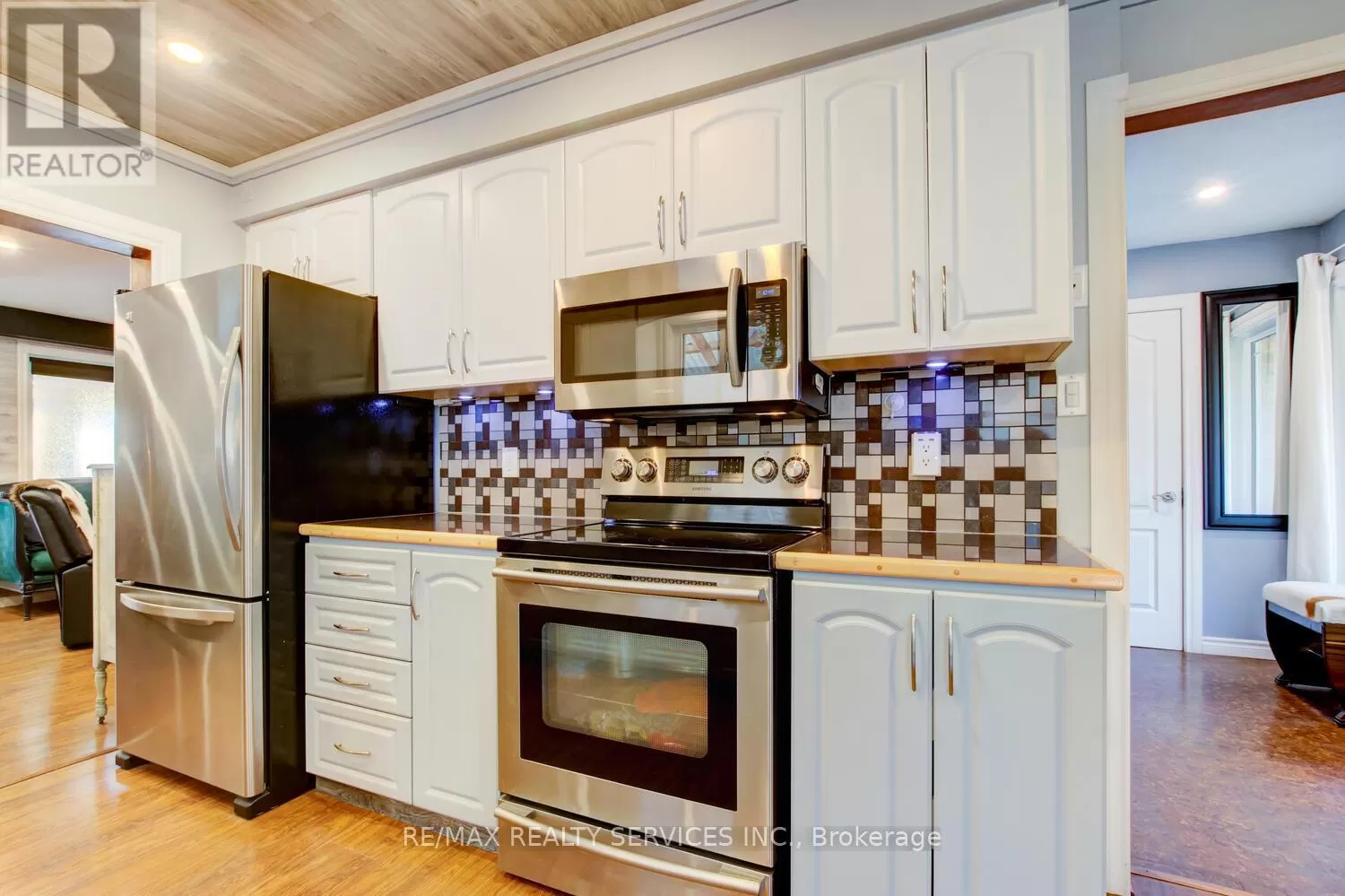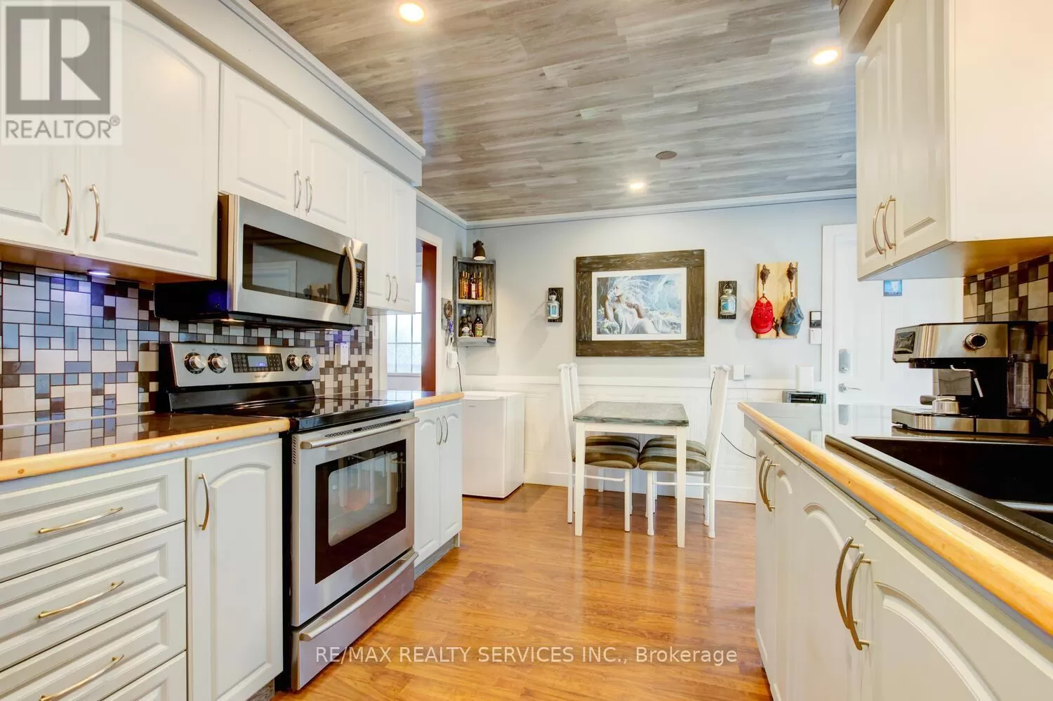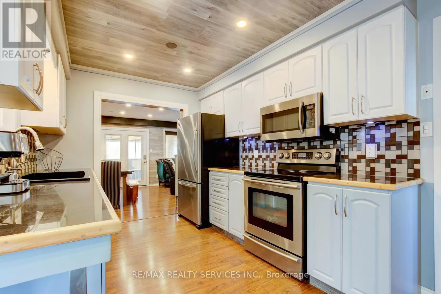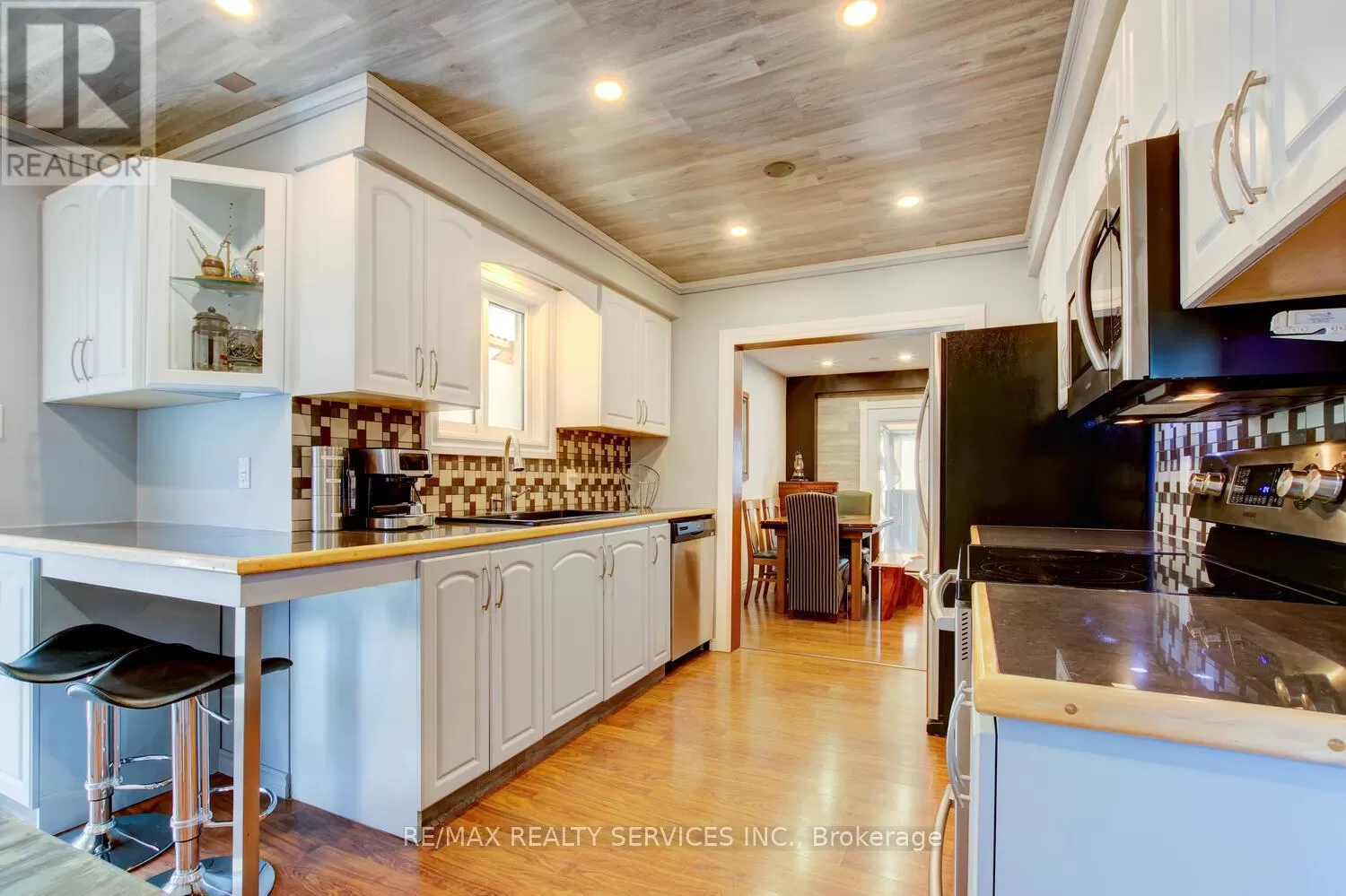 Kennedy / Sandalwood Gorgeous 3 bedroom, 3 bath, semi detached home on a premium 30' X 100' lot in desirable Heart Lake East ! Extensive renovations including a gourmet kitchen with built - in breakfast bar, stainless steel appliances, pot lights, stone backsplash and pantry. Large master bedroom with oversized walk - in closet, spacious great room with pot lights, stone fireplace with electric insert and walk - out. Nicely finished open concept rec room with 3 - pc bath, pot lights and sub floor. High quality laminate throughout, renovated main bath, new central air ( 2023 ), upgraded vinyl windows ( 2018 ), reshingled roof ( 2014 ), extra insulation ( 2016 ), upgraded doors and hardware. Private fenced yard with covered deck, garden shed, double width driveway, cozy front patio and is walking distance to schools, parks, shopping and quick access to HWY # 410 ! Excellent curb appeal, shows well and is priced to sell ! (id:27476)