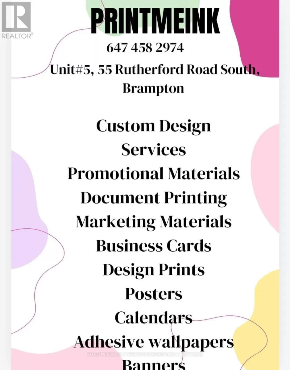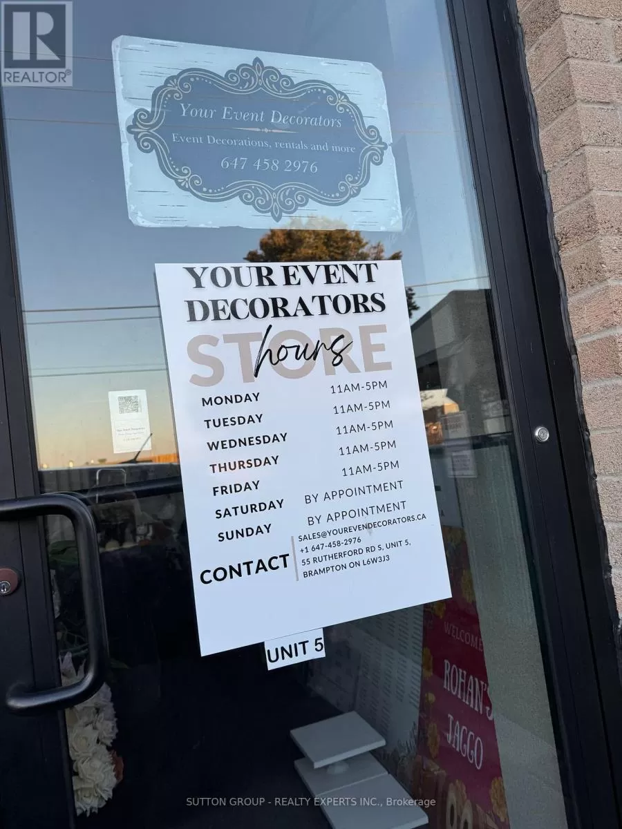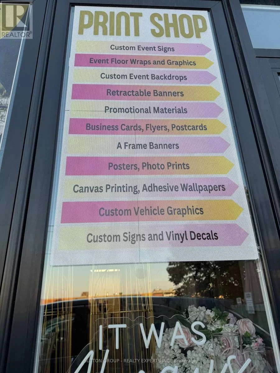 Cross Streets: Rutherford/Orenda. ** Directions: Queen St & Rutherford. Fantastic Business Opportunity! Offering the sale of a well-established wedding and event décor business, successfully operating for 8 years in a prime high-traffic, high-visibility location. Includes approximately $125,000 worth of inventory, fully included in the sale price. Also features a printing business, successfully running for 1 year, equipped with modern machinery. Enjoy a low monthly lease of $2,056.60 including TMI, with the current term valid until March 2026 and renewal options available. A turnkey, dual-business setup ideal for entrepreneurs ready to grow in the events and printing industry! (id:27476)