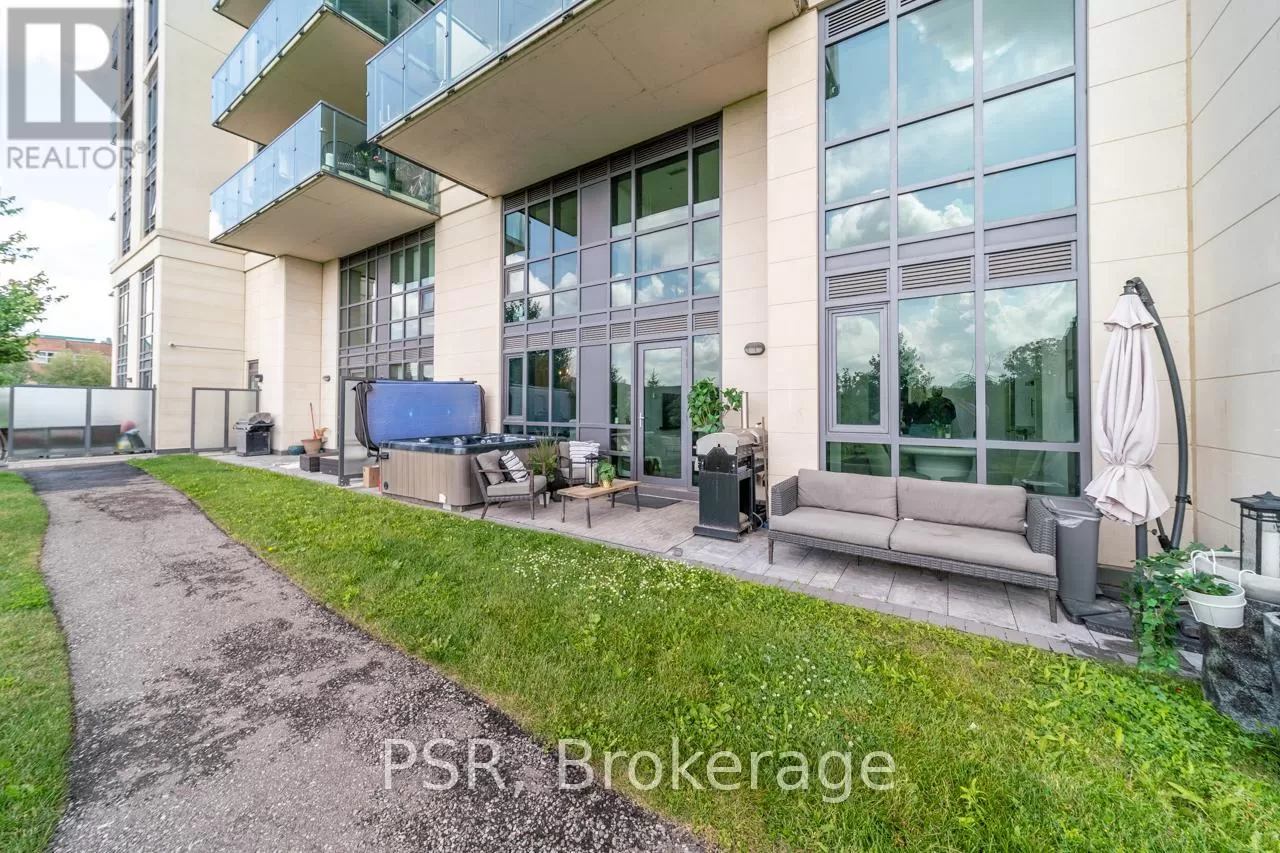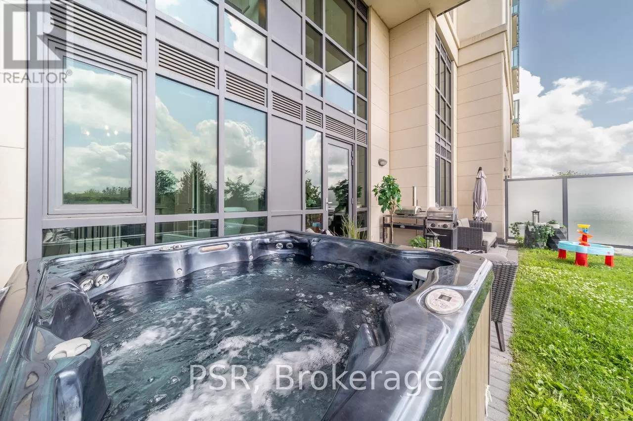 Goreway Drive & Queen St Exceptional & Rare Offering - This 1,050 sq. ft. loft in the heart of Brampton features 2 spacious bedrooms, the most functional and sought-after layout in the building, and is the only unit with a private hot tub hookup on the terrace. The open-concept design showcases a gourmet kitchen with high-end stainless steel appliances, sleek cabinetry, and generous counter space. Includes two conveniently located parking spaces and a large storage locker. Situated on the main floor with permanent, unobstructed park views, this residence offers lasting privacy and long-term value, along with a low-maintenance lifestyle in a prime, high-growth location with new development, excellent transit access, and vibrant urban amenities. (id:27476)