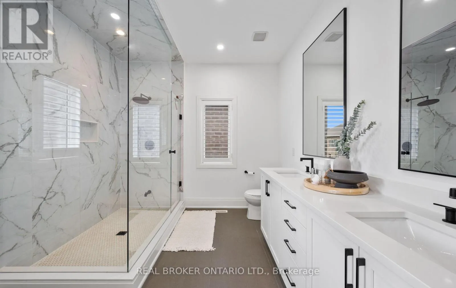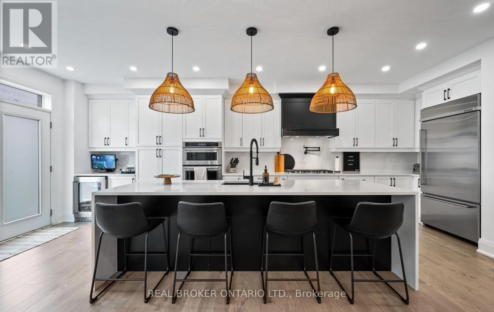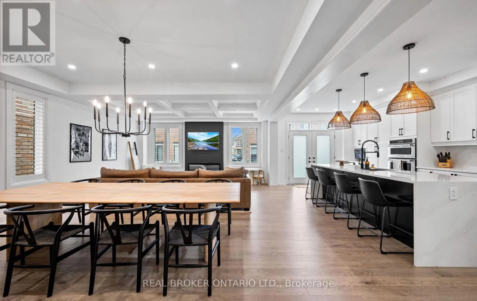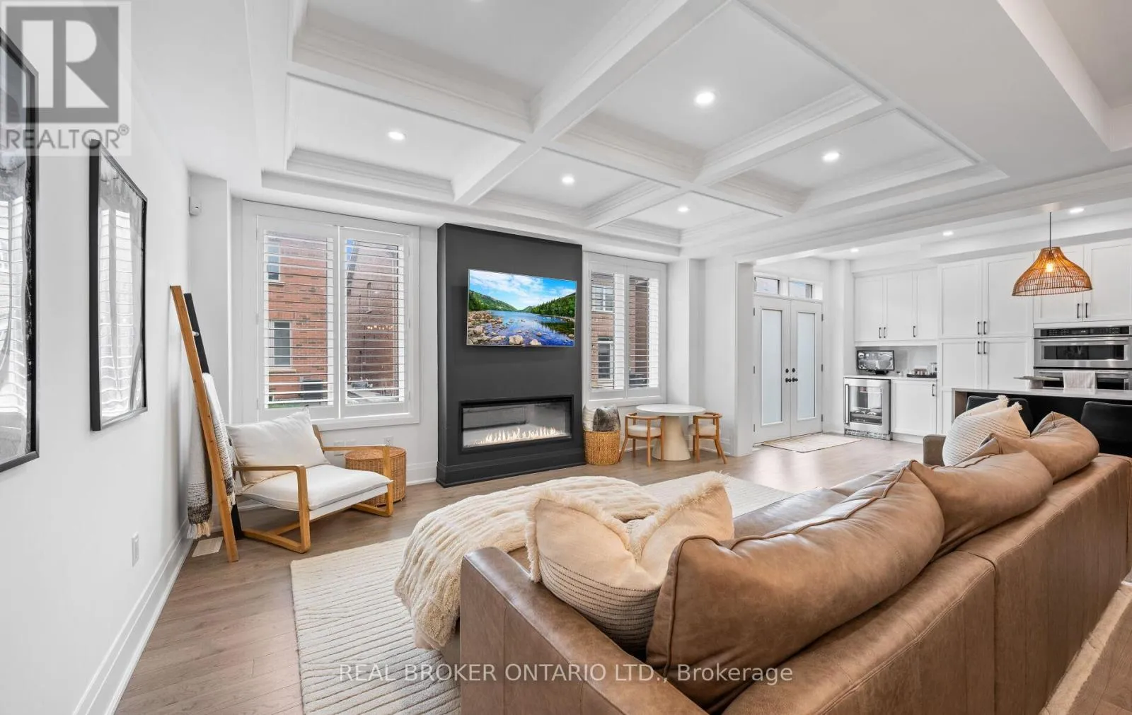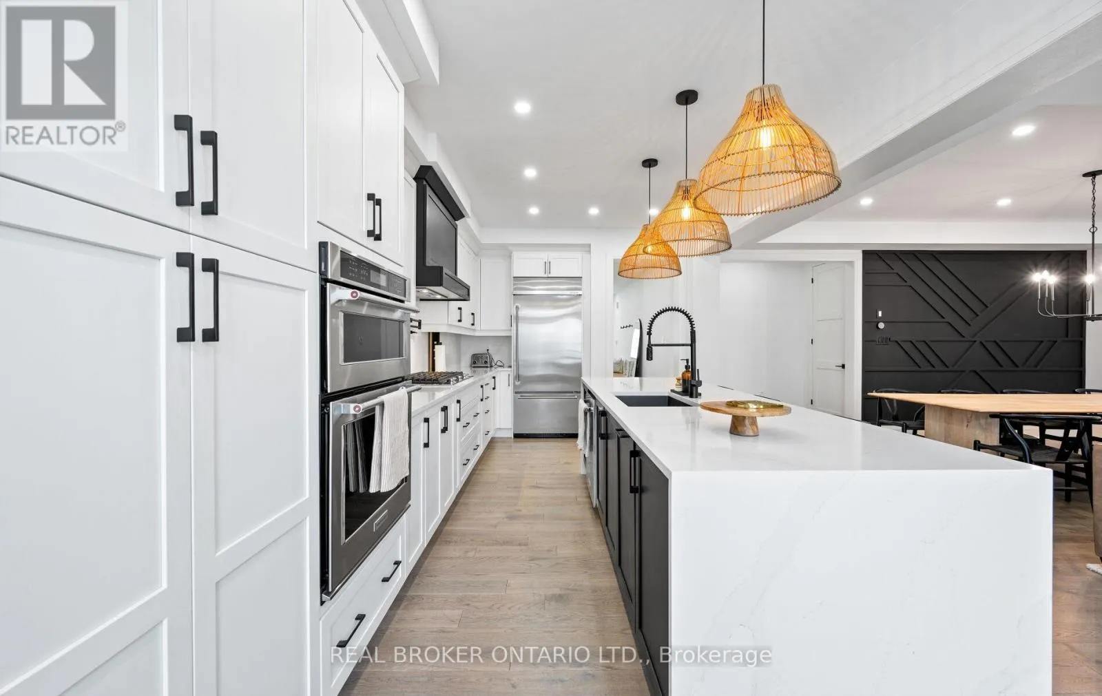 Cross Streets: Veterans/Mayfield. ** Directions: Northwest. Welcome to this beautifully upgraded 4-bedroom, 4-bathroom home offering 2656 sq ft of refined living space in Northwest Brampton. From the moment you walk through the double door entry, you're greeted with style and function. The open-concept main floor features 9-ft ceilings, 2x2 porcelain tiles, rich hardwood floors, and a waffle ceiling with pot lights. A bold black accent wall surrounds the cozy gas fireplace, adding depth and contrast to the space. The custom kitchen is the heart of the home, boasting extended cabinetry to the ceiling, a built-in wall oven, gas cooktop, custom hood with pot filler, and a stunning waterfall quartz island perfect for family living and entertaining. French doors lead to the backyard for seamless indoor-outdoor flow .Upstairs, you'll find continued luxury with 9-ft ceilings, 12x24 upgraded tiles, and hardwood floors throughout no carpet. The primary suite offers a coffered ceiling, his & hers walk-in closets, and pendant lighting. The en-suite features an oversized custom shower and upgraded finishes. Three of the four bedrooms include built-in closets, plus a convenient upstairs laundry room. All bathrooms feature quartz countertops, undermount sinks, upgraded faucets, and taller vanities. Additional highlights include: 8-ft solid shaker-style doors Upgraded baseboards & casings, Mudroom with built-in cabinets, Rod iron staircase pickets, Black hardware & upgraded light fixtures throughout. Side door entrance & cold cellar, and Exterior security cameras. Perfectly located near schools, parks, and everyday essentials this move-in-ready home checks every box. (id:27476)