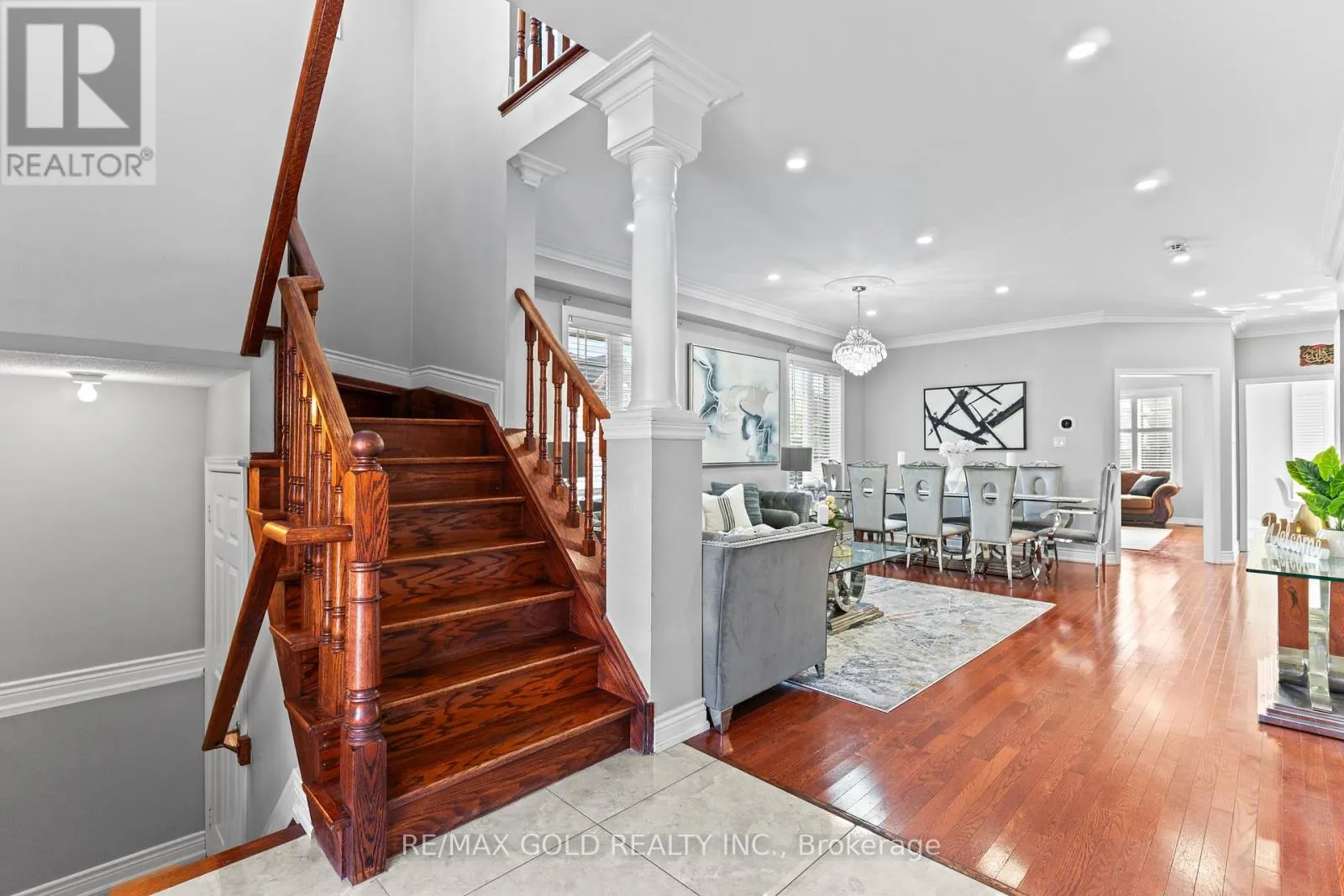 Cross Streets: Airport Rd & Stonecrest Dr. ** Directions: . Welcome to this beautifully upgraded and meticulously maintained corner lot home that truly has it all. From the moment you arrive, the stamped concrete driveway and patterned concrete accents around the property create a warm and inviting first impression. Step inside to find gleaming hardwood floors, elegant crown moulding, pot lights, and thoughtful upgrades throughout. The spacious living and dining room with soaring ceilings offers the perfect setting for entertaining, while the cozy main floor family room is ideal for everyday relaxation. The modern, upgraded kitchen with granite counters and stainless steel appliances provides both style and functionality, making it a space youll love to gather in. Upstairs, the elegant primary retreat and spa-inspired upgraded bathrooms add a touch of luxury, while the versatile loft provides extra space for a home office, playroom, or quiet reading area. With two convenient laundry rooms, daily living is made easy. Outside, the backyard features a deck and a garden shed, offering the perfect combination of storage and outdoor enjoyment. The separate entrance leads to a bright and fully finished basement complete with an eat-in summer kitchen, sitting area, two bedrooms, a four-piece bathroom, and its own laundry an excellent option for extended family, in-laws, or rental income potential. This move-in ready home has been carefully maintained and thoughtfully upgraded, offering comfort, elegance, and versatility at every turn. Truly a home you'll be proud to call your own! (id:27476)