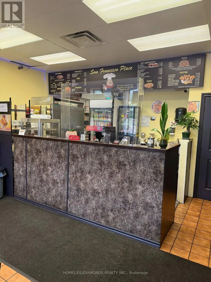 Centre/Queen St An excellent opportunity is available at 130 Queen St E, Brampton, a prime high-demand location with constant traffic and strong student presence. Currently operating as a Portuguese restaurant & Italian Pizza store, this space offers flexibility to continue with the existing concept or transform it into any type of restaurant such as Indian, shawarma, wings, fried chicken, South Indian, ice cream, or many other possibilities. The property benefits from very low rent and high profit margins, making it an attractive investment for both new and experienced operators. With excellent visibility, steady customer flow, and endless potential, this opportunity will not last long. (id:27476)