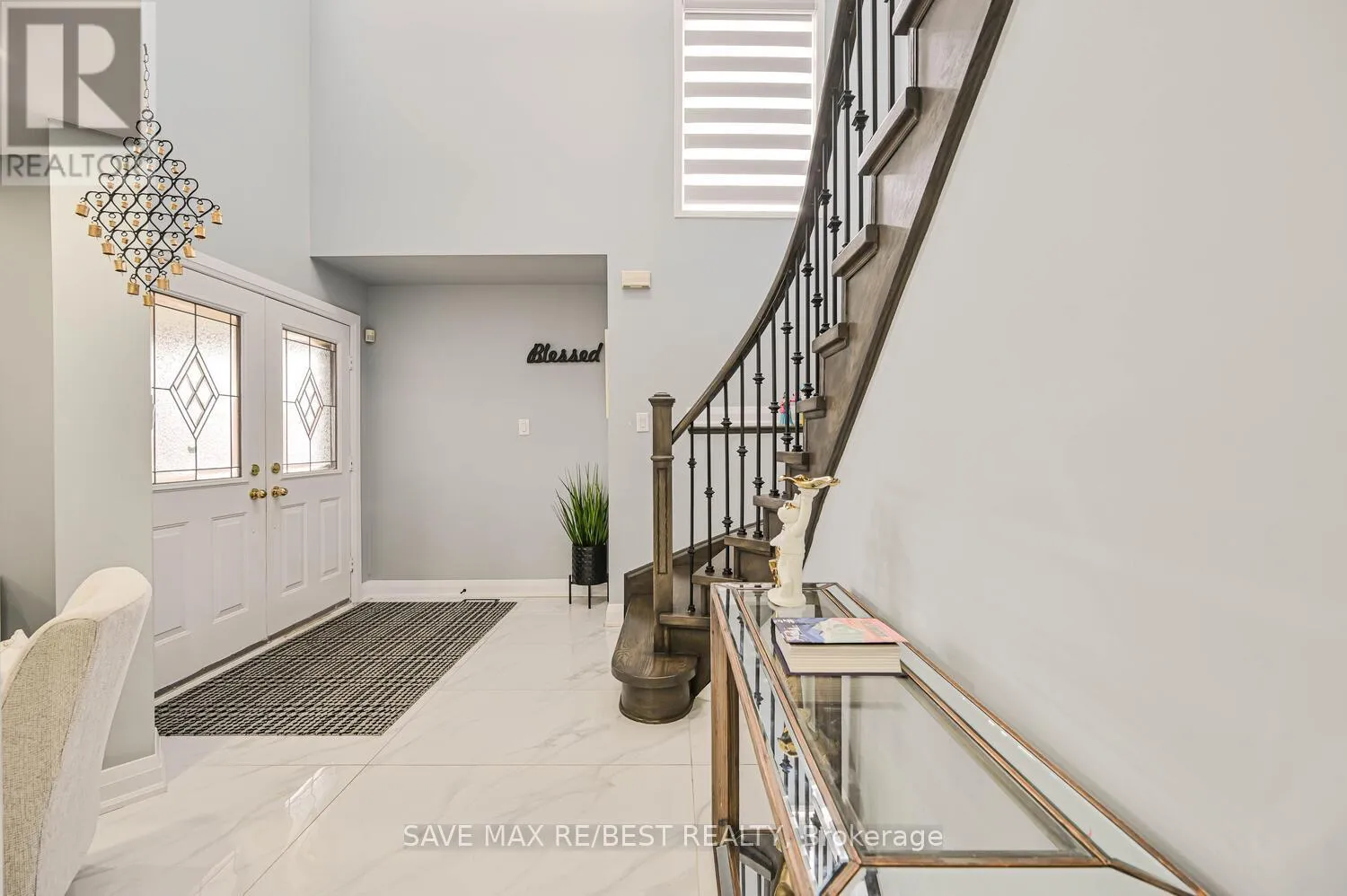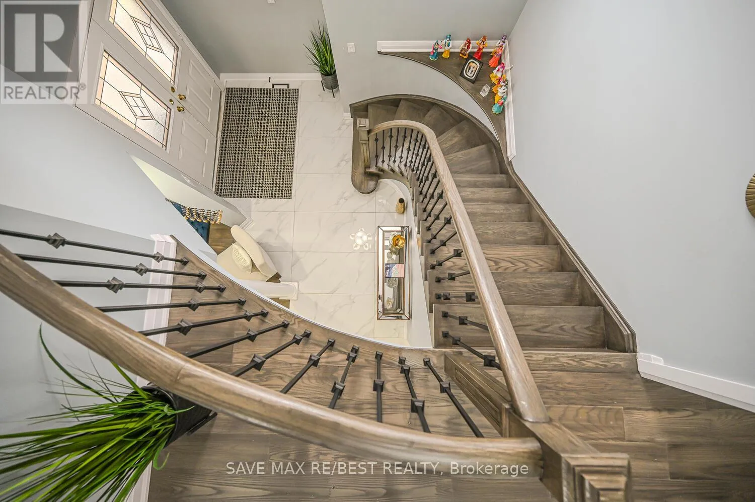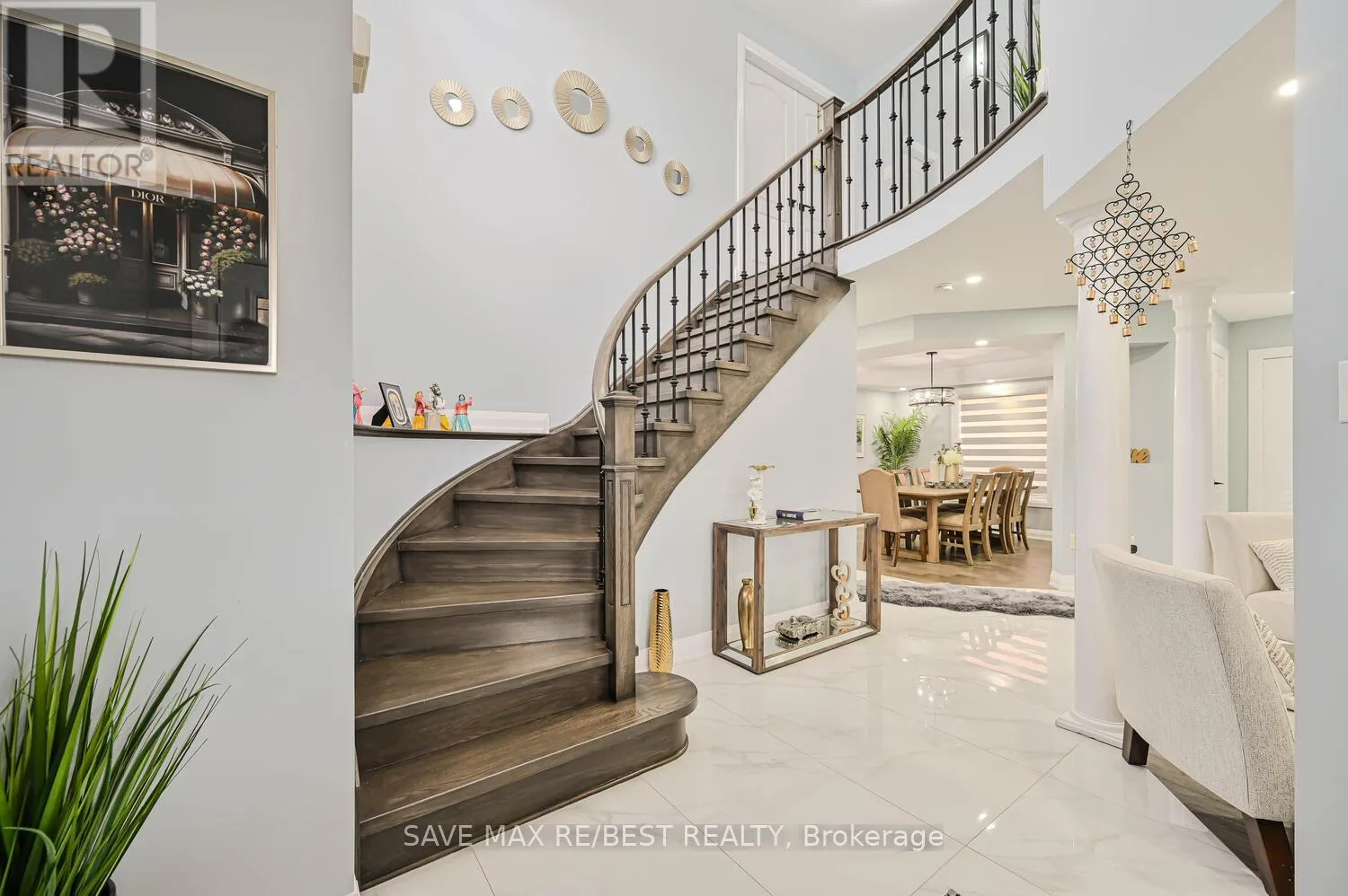 Mayfield Rd & Hurontario Welcome to this impressive 4+1 bedroom, 3.5 bathroom home, offering aprx 2,400 sq. ft. of beautifully upgraded living space on a rare, premium corner lota true gem in this segment of homes within the community. This stunning property features a charming wrap-around covered front porch, an elegant double-door entry, and a grand open-to-above foyer accentuated by a striking spiral staircase. With oversized windows throughout, the home is filled with natural sunlight, creating a bright and airy atmosphere in every room. The main level showcases 24x48" porcelain tiles in the hallway, foyer, powder room, laundry, and kitchen areas, and is complemented by modern upgraded HW flooring on both the main and upper floors. The elegant layout includes architectural columns, a formal living room, a sep dining room, and a spacious family room all enhanced by neutral fresh paint & plentiful pot lights inside and out. The chef-inspired kitchen overlooks the family room and boasts SS appliances, a large modern centre island, a built-in wine rack and pantry, and a W/O to a large private deck, perfect for entertaining. The upper level features a spacious primary suite with double-door entry, a W/I closet, and a luxurious 4-piece ensuite with a soaker tub and separate shower. Three additional well-sized bedrooms share a bright and functional main bath. The professionally finished basement includes a cozy recreation room with a gas fireplace, an open-concept office/play area, a 3-piece bathroom, hobby room, storage areas, and a cantina. A separate legal side entrance provides the potential to convert the basement into a second dwelling unit, while still maintaining exclusive space for personal use. A beautifully landscaped lot with a brick walkway, no sidewalk, a fully fenced backyard, an oversized entertainers deck, and a storage shed. Conveniently located close to all major amenities. This sun-filled home is loaded with high-end upgrades a rare find where the features just keep going! (id:27476)