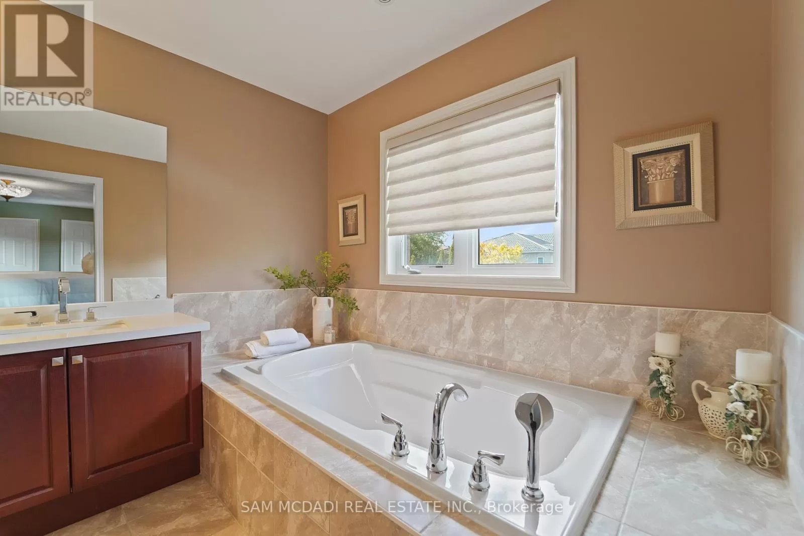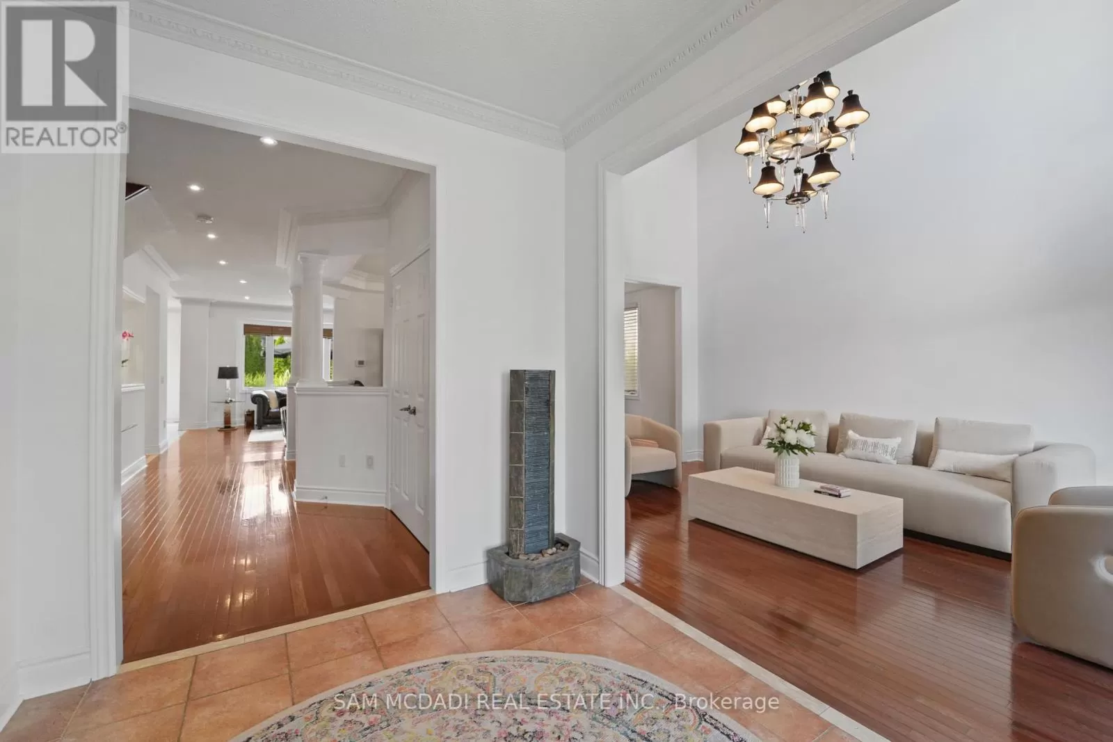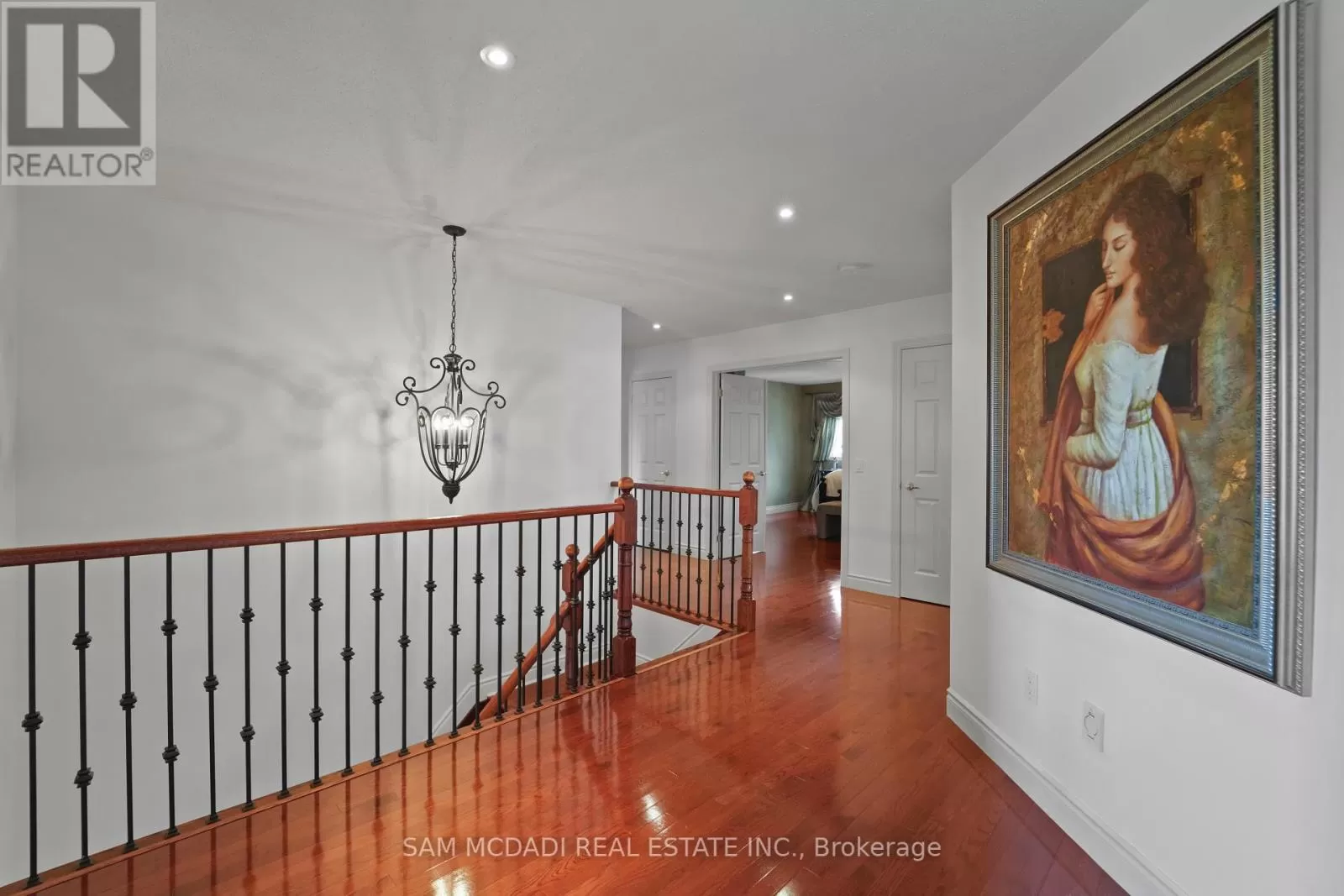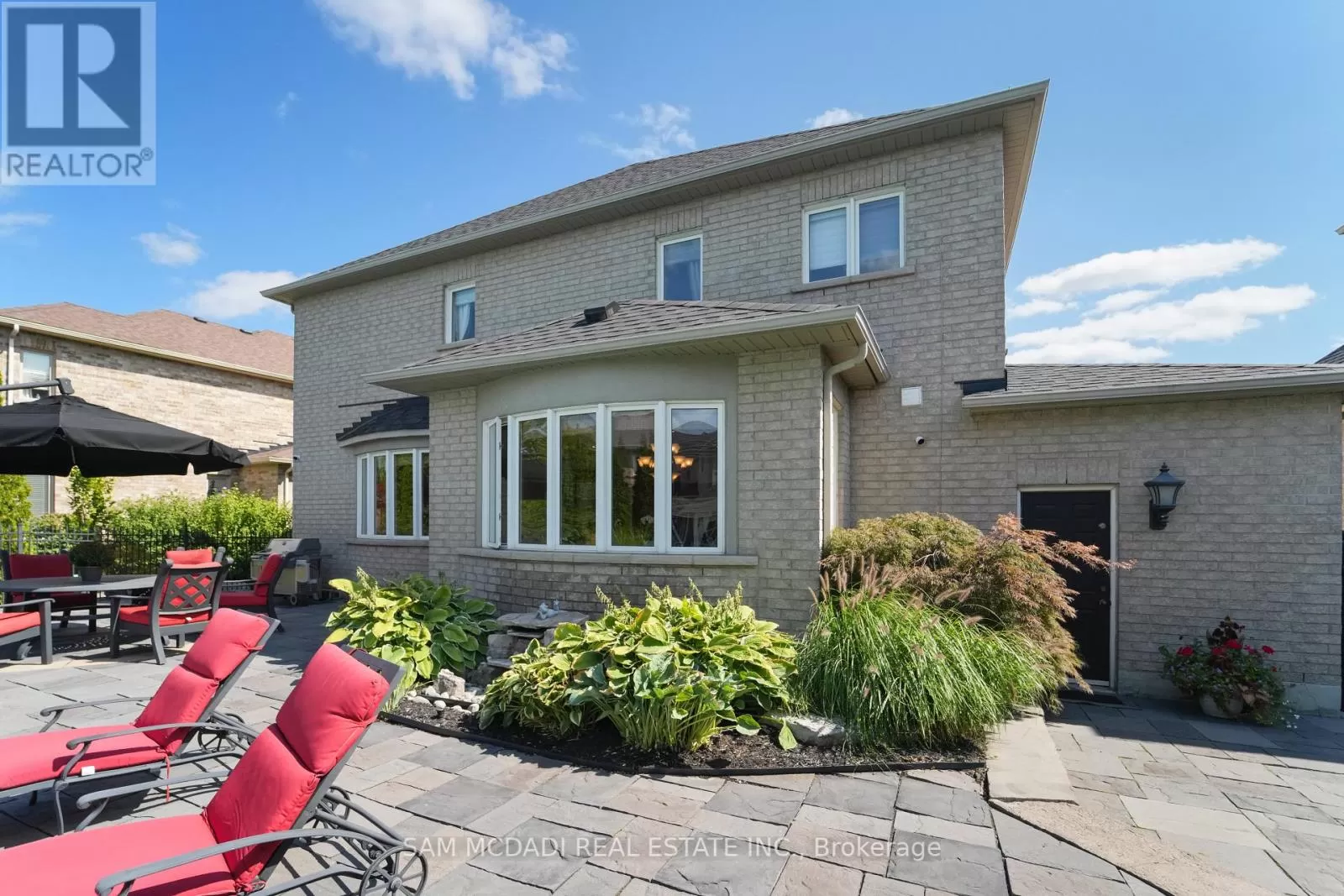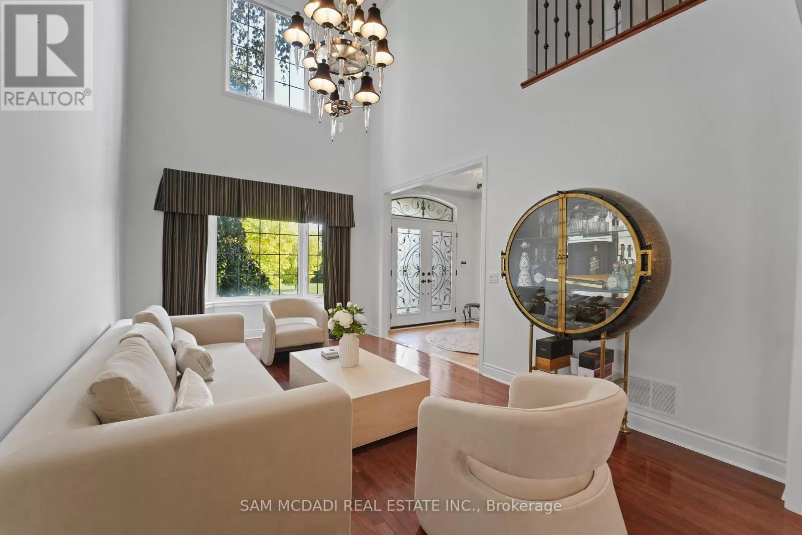 Countryside Dr & Goreway Dr Welcome to this meticulously maintained detached 2-storey home, perfectly situated on a private and exclusive street overlooking a beautiful parkette and green space. Offering 3,534 sq. ft. above grade with 4 bedrooms, 4 bathrooms, main floor office, this residence combines elegance, comfort, and functionality. The exterior is professionally landscaped with mature trees, two serene water features, inground irrigation system, and a stunning saltwater heated pool (3' - 8' depth) with three cascading waterfalls creating your own private backyard oasis. Inside, youll find spacious principal rooms and an open-concept kitchen with a center island, stone countertops, built-in desk, stainless steel appliances, and direct flow into the living area featuring a custom wall unit and cozy gas fireplace. Elegant dining room leading to 2 storey living room perfect for entertaining. Open oak staircase with wrought iron balusters. Hardwood flooring, crown molding, pot lights throughout and custom walk-in closets in all bedrooms elevate the homes style and practicality. The primary retreat boasts a walk-in closet and a luxurious 5-piece ensuite. New countertops in all bathrooms, upgraded hardwood on the second level and new front door/entry way. Security system with cameras. Parking is never an issue with a 3-car tandem garage and room for 5 more on the driveway8 total spaces. This rare offering blends luxury, privacy, and convenience, all in an exceptional setting. (id:27476)