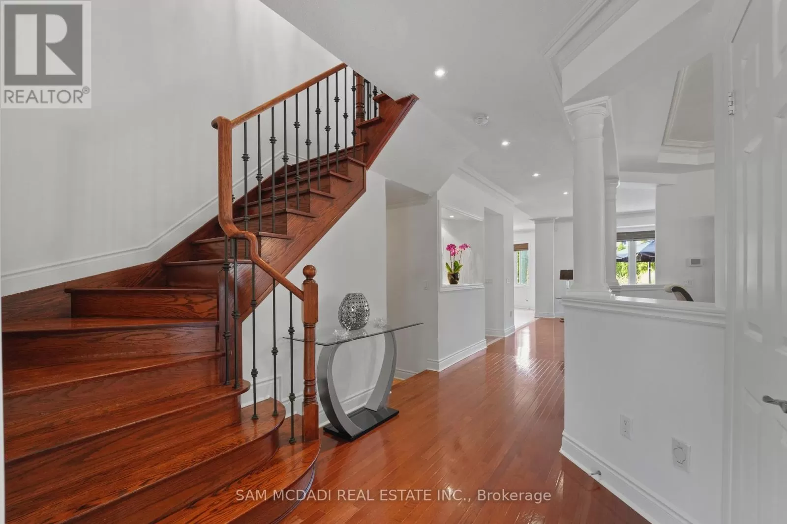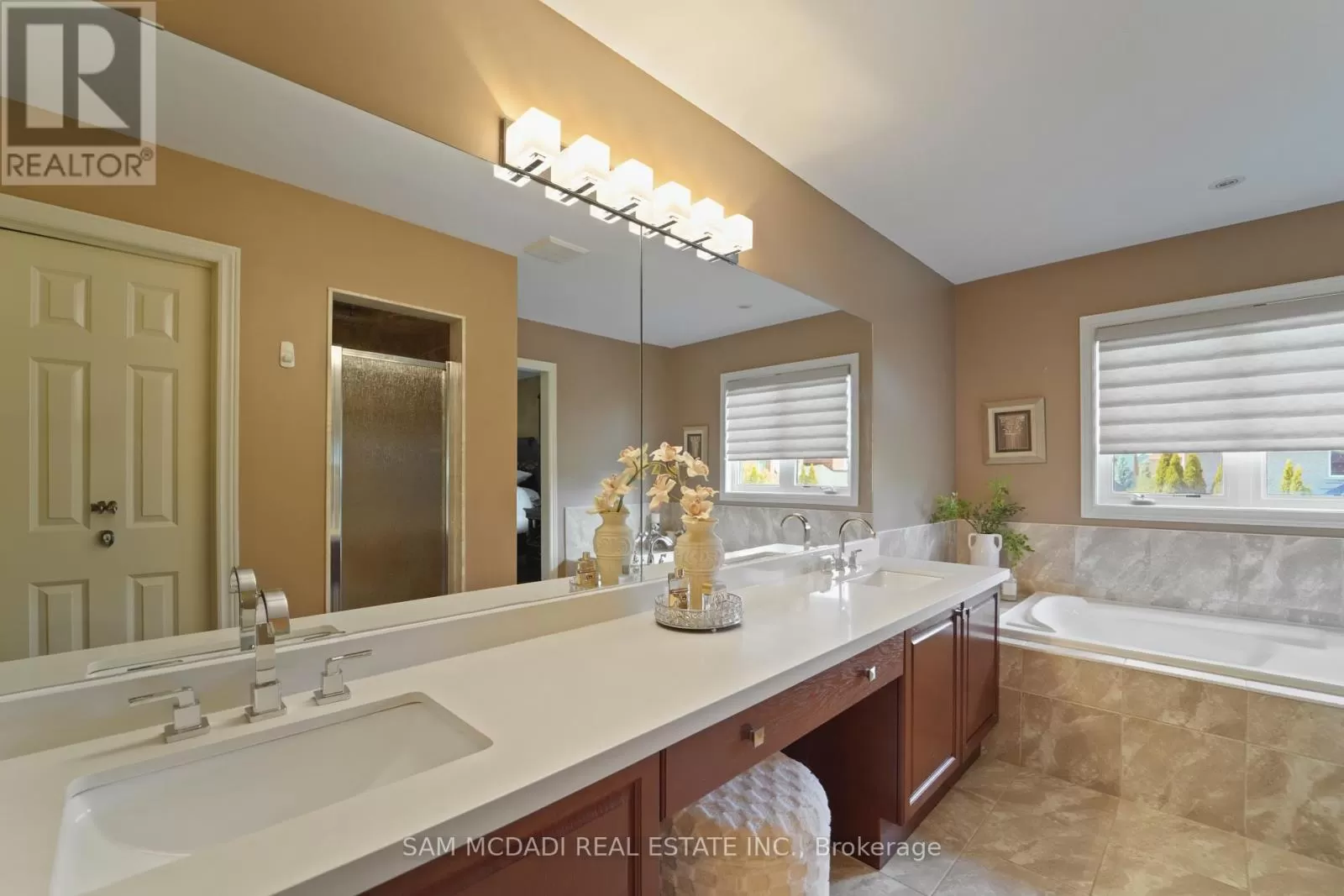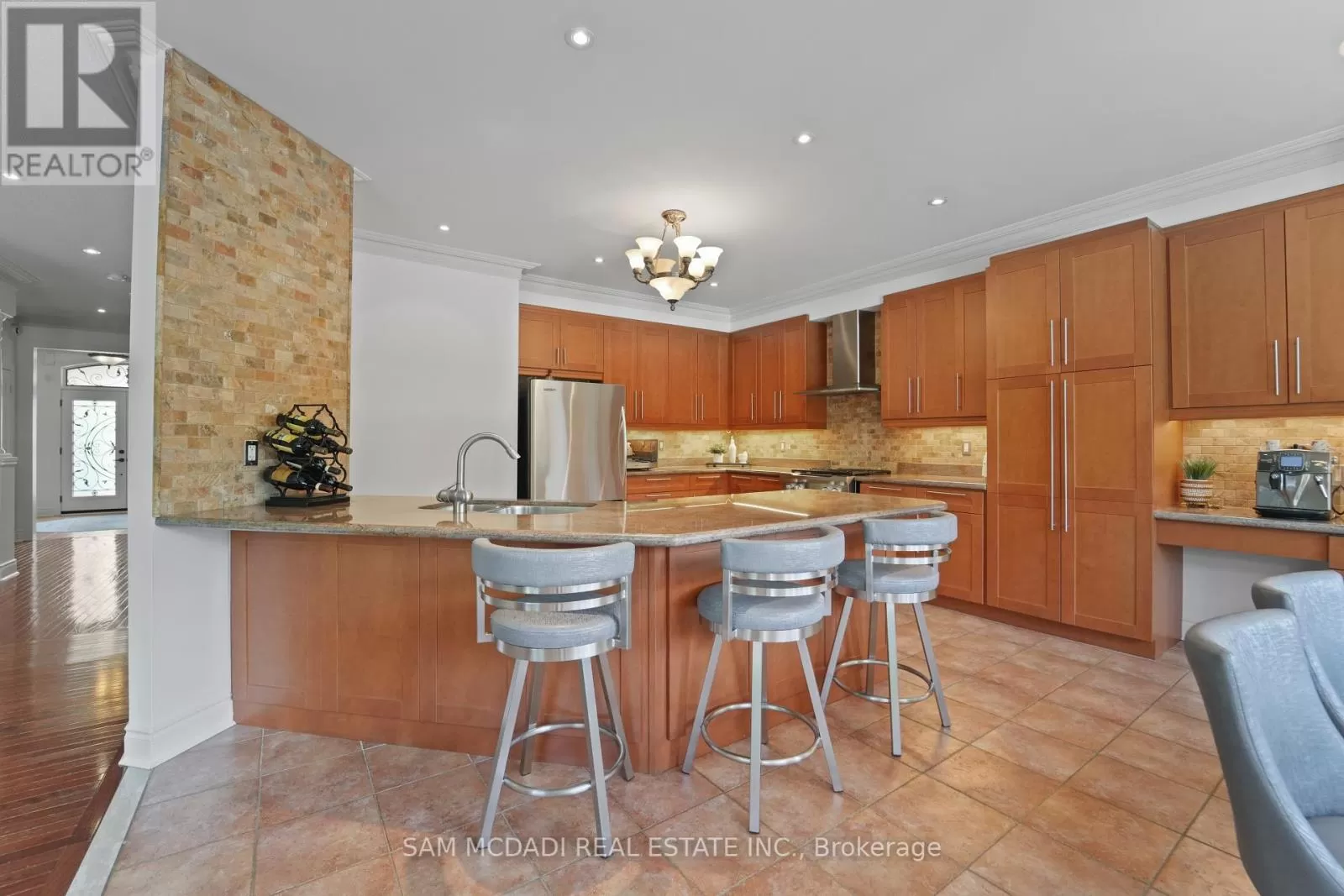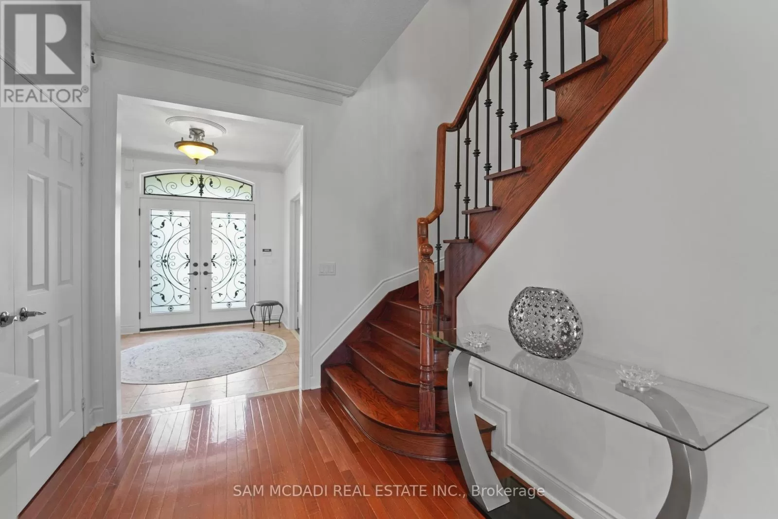 Countryside Dr & Goreway Dr Welcome to this meticulously maintained detached 2-storey home, perfectly situated on a private and exclusive street overlooking a beautiful parkette and green space. Offering 3,534 sq. ft. above grade with 4 bedrooms, 4 bathrooms, main floor office, this residence combines elegance, comfort, and functionality. The exterior is professionally landscaped with mature trees, two serene water features, inground irrigation system, and a stunning saltwater heated pool (3' - 8' depth) with three cascading waterfalls creating your own private backyard oasis. Inside, youll find spacious principal rooms and an open-concept kitchen with a center island, stone countertops, built-in desk, stainless steel appliances, and direct flow into the living area featuring a custom wall unit and cozy gas fireplace. Elegant dining room leading to 2 storey living room perfect for entertaining. Open oak staircase with wrought iron balusters. Hardwood flooring, crown molding, pot lights throughout and custom walk-in closets in all bedrooms elevate the homes style and practicality. The primary retreat boasts a walk-in closet and a luxurious 5-piece ensuite. New countertops in all bathrooms, upgraded hardwood on the second level and new front door/entry way. Security system with cameras. Parking is never an issue with a 3-car tandem garage and room for 5 more on the driveway8 total spaces. This rare offering blends luxury, privacy, and convenience, all in an exceptional setting. (id:27476)